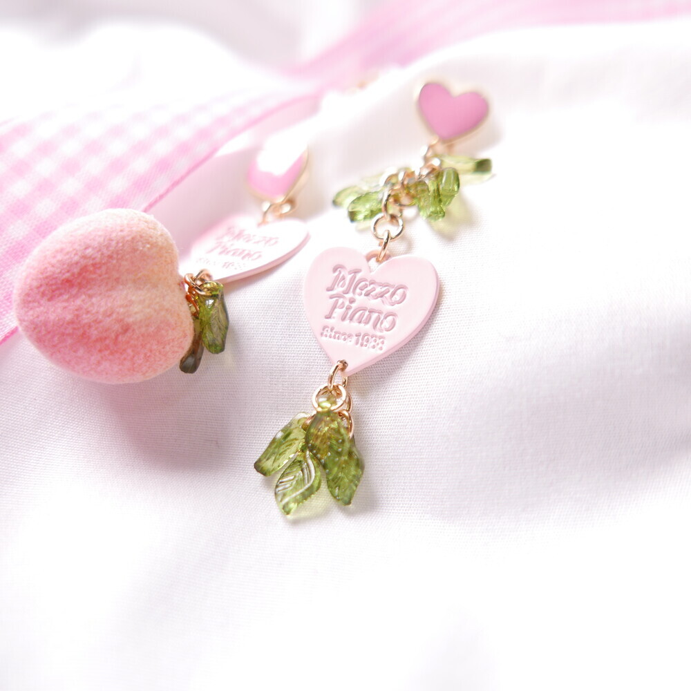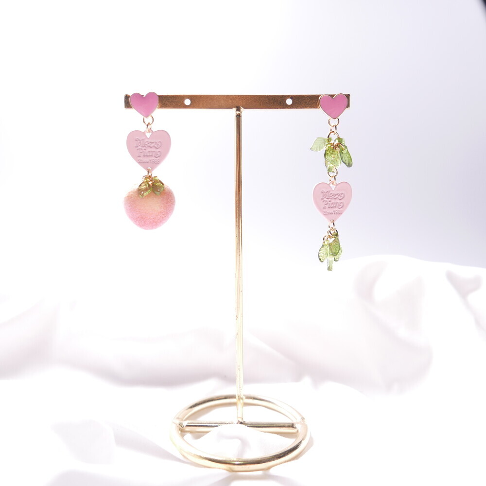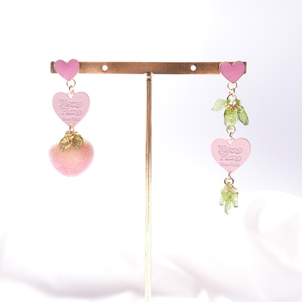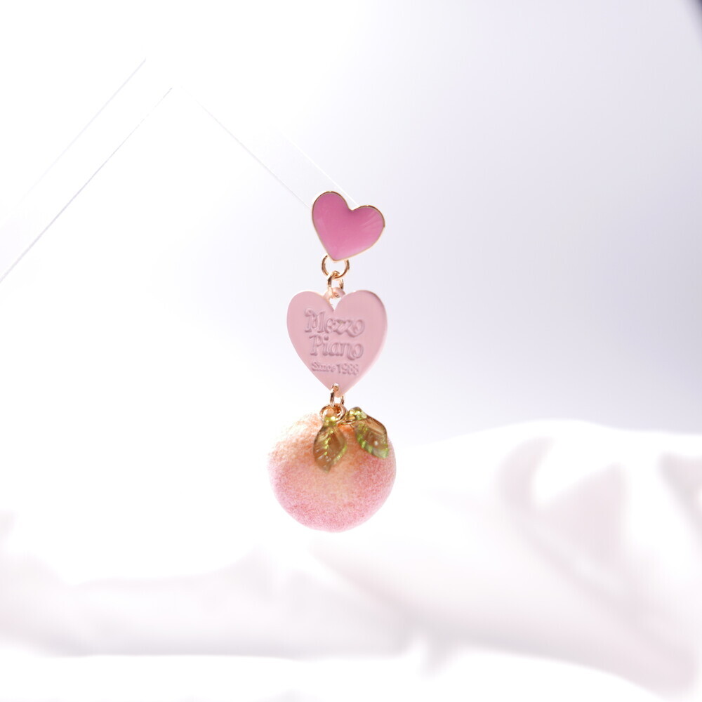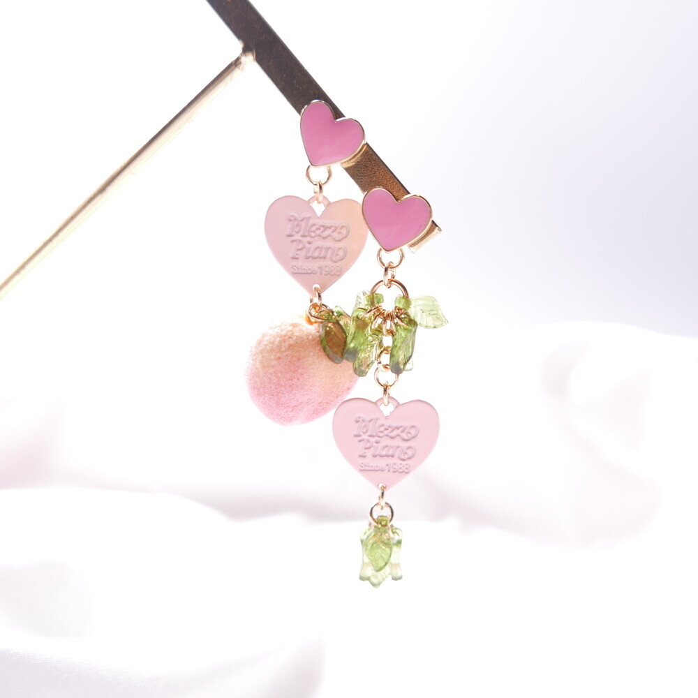 Feel the summer breeze with these Peachy Heart Earrings! Designed with a fluffy, real-peach-like texture and finished with playful heart charms and green leaf details.