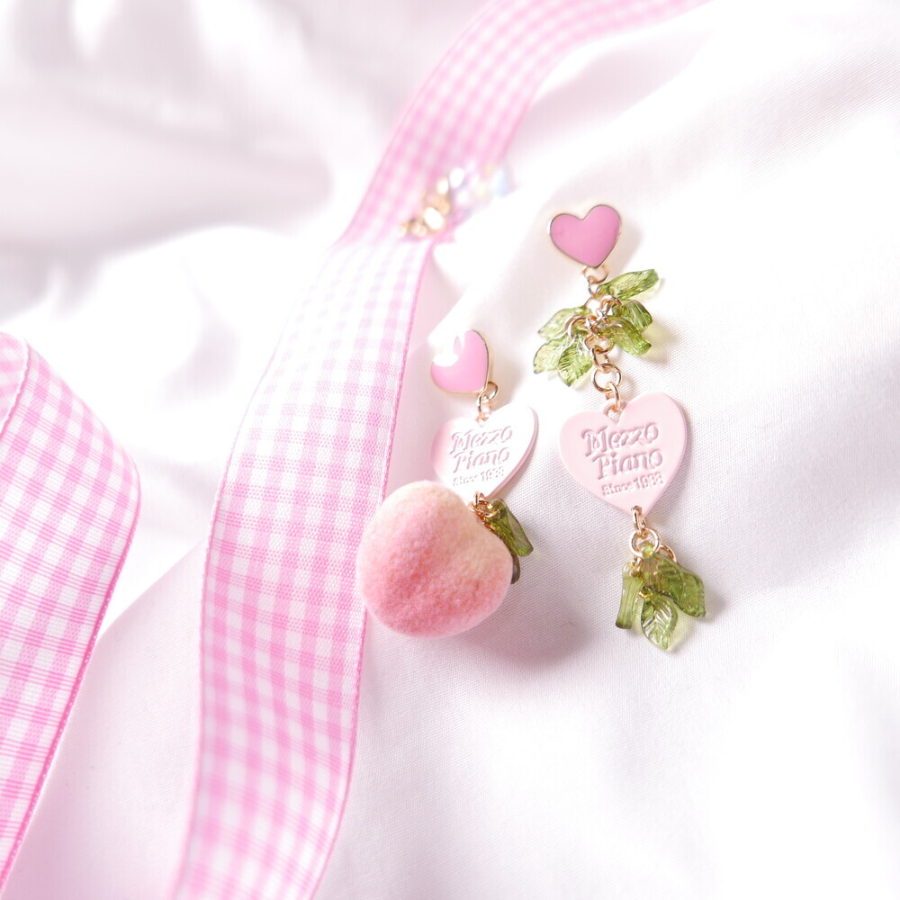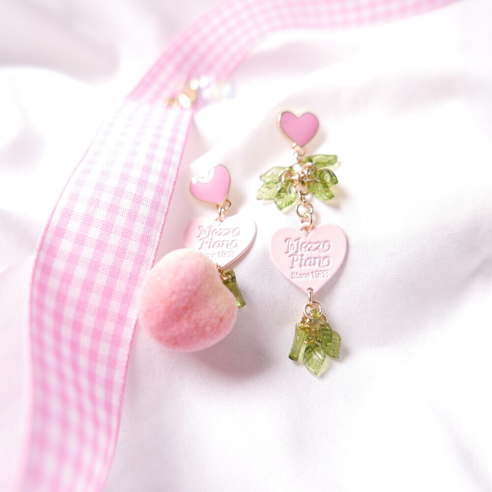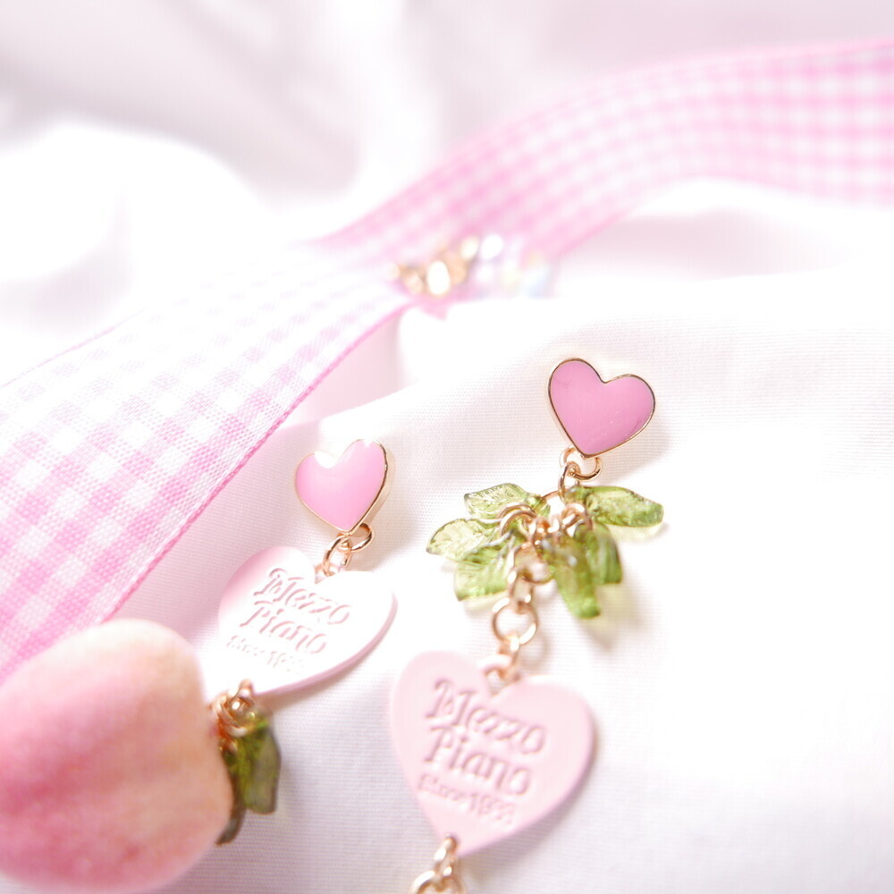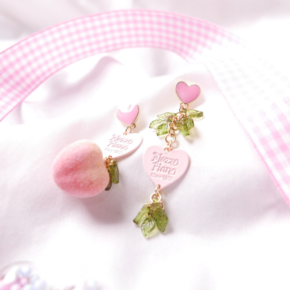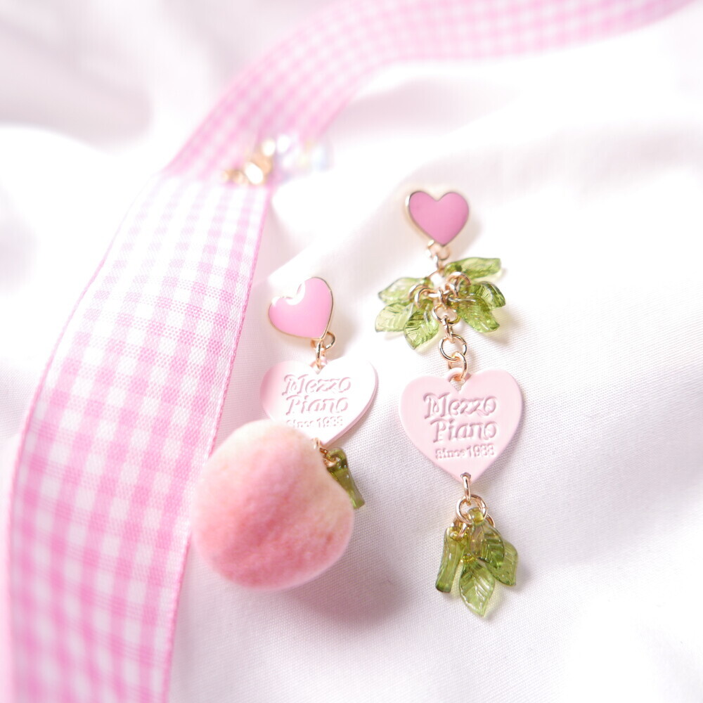 Feel the summer breeze with these Peachy Heart Earrings! Designed with a fluffy, real-peach-like texture and finished with playful heart charms and green leaf details.