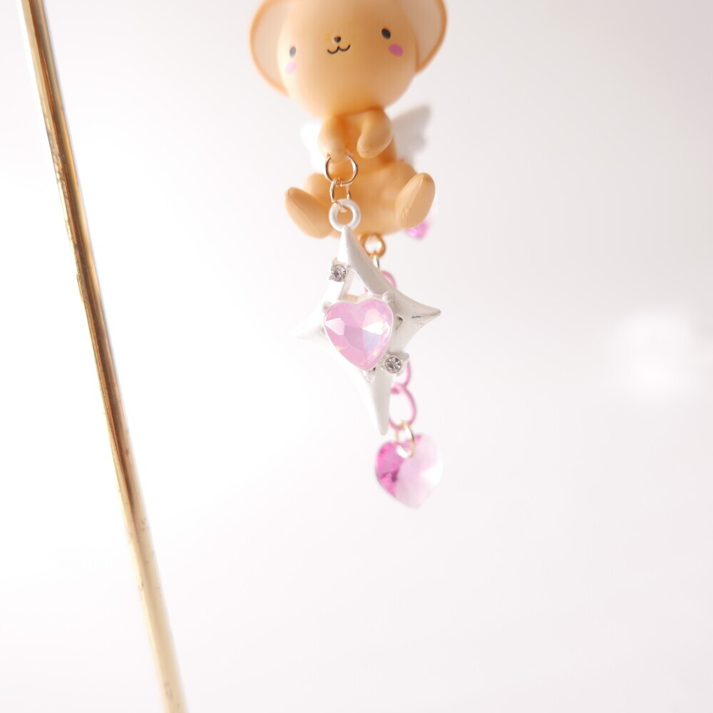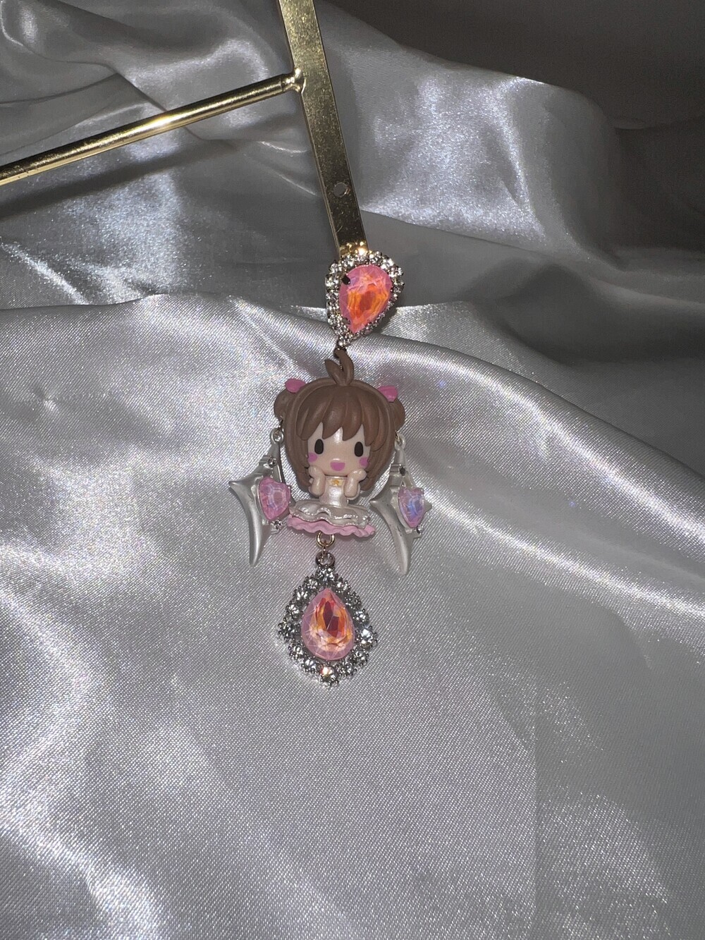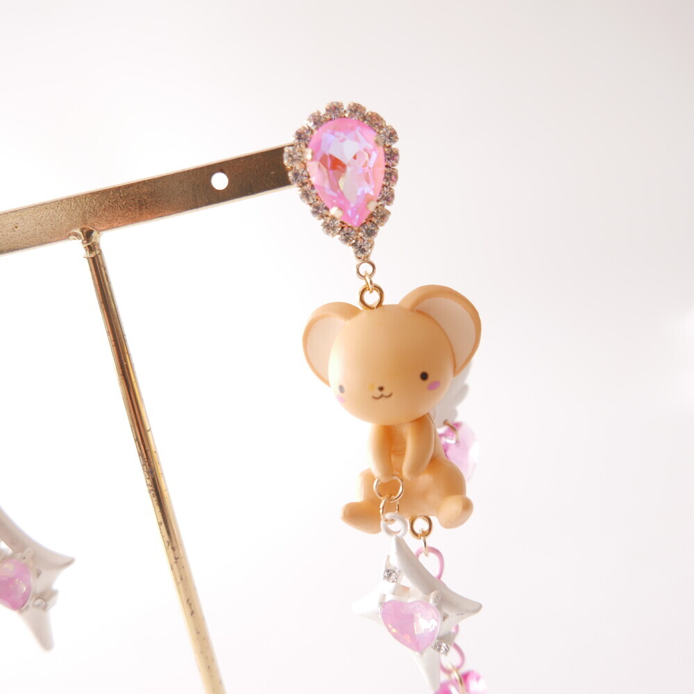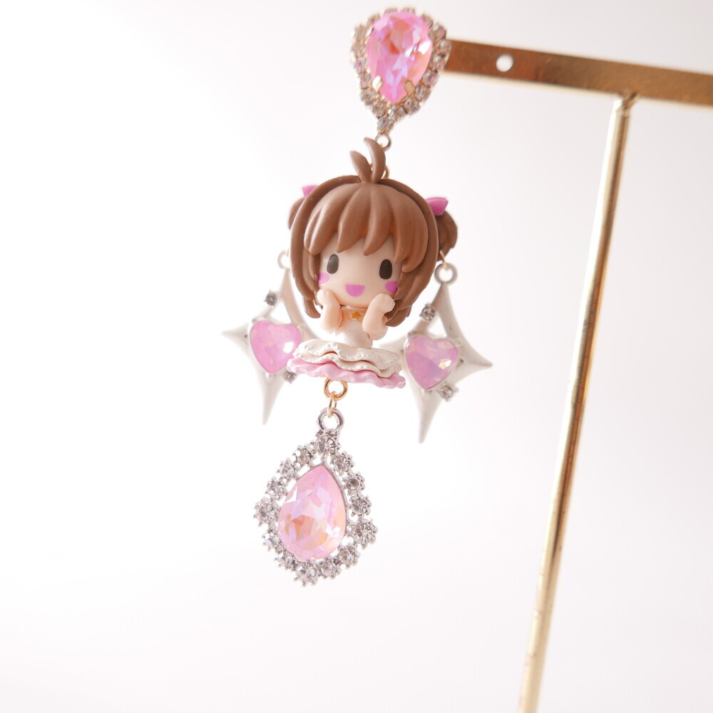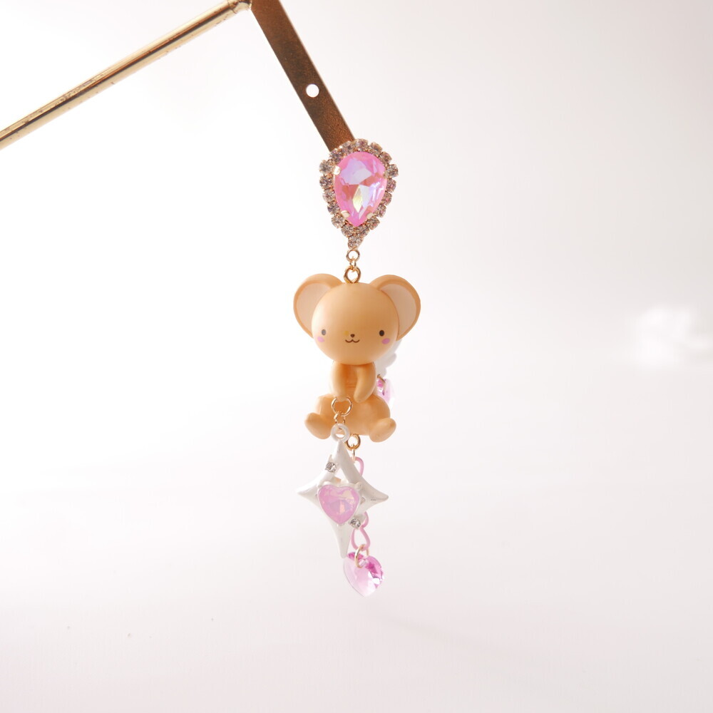 Featuring the beloved duo – Sakura and Kero – from the world of Cardcaptor Sakura, these asymmetric earrings are crafted with glossy crystals, charming character drops, and star-like accents. A dream piece for lovers of cute, nostalgic, and eye-catching accessories!