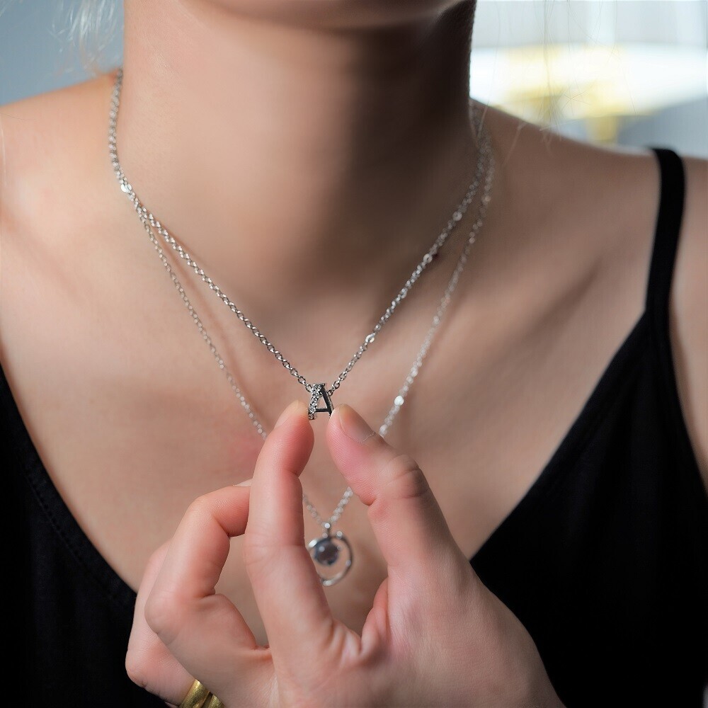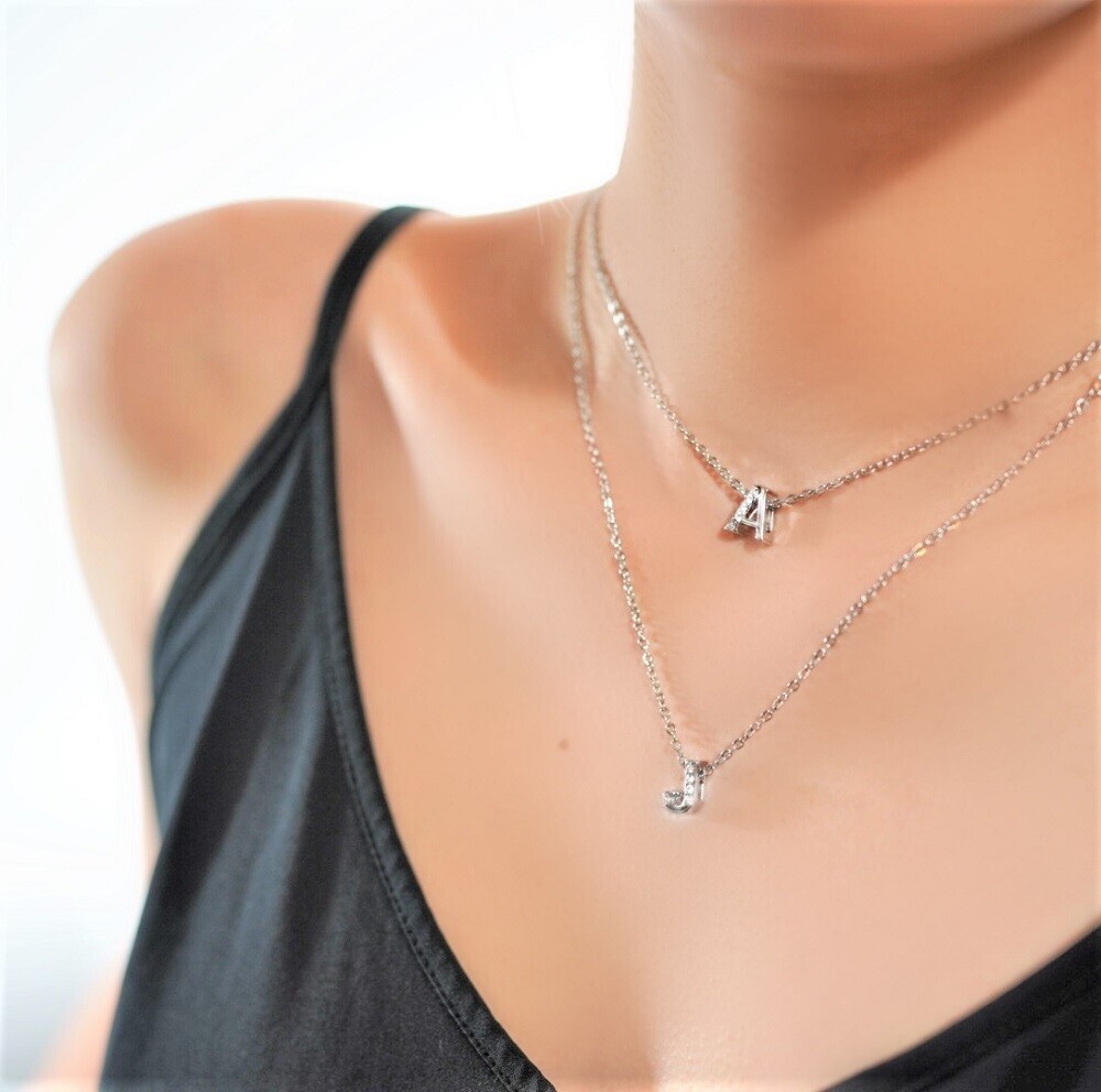 A chic and personal touch for your daily outfit this Initial Necklace features a three-dimensional, high-gloss pendant set with glittering cubic zirconia stones. Unlike flat cut pieces, this pendant has noticeable depth and polish, giving it a sophisticated edge. Wear your own letter, your partner’s, or a friend’s for a meaningful and trendy accessory. Designed for stacking with 2–3 pieces for an effortlessly layered look.