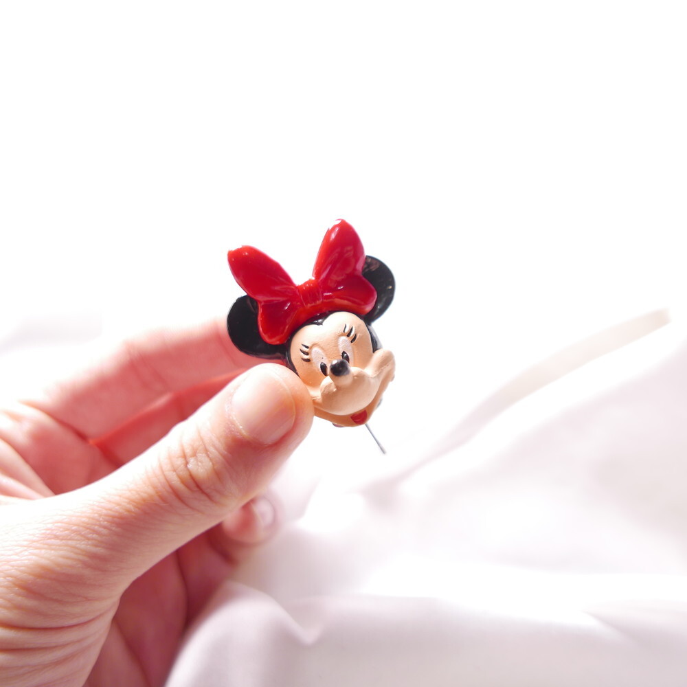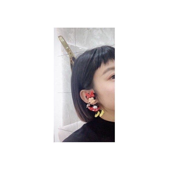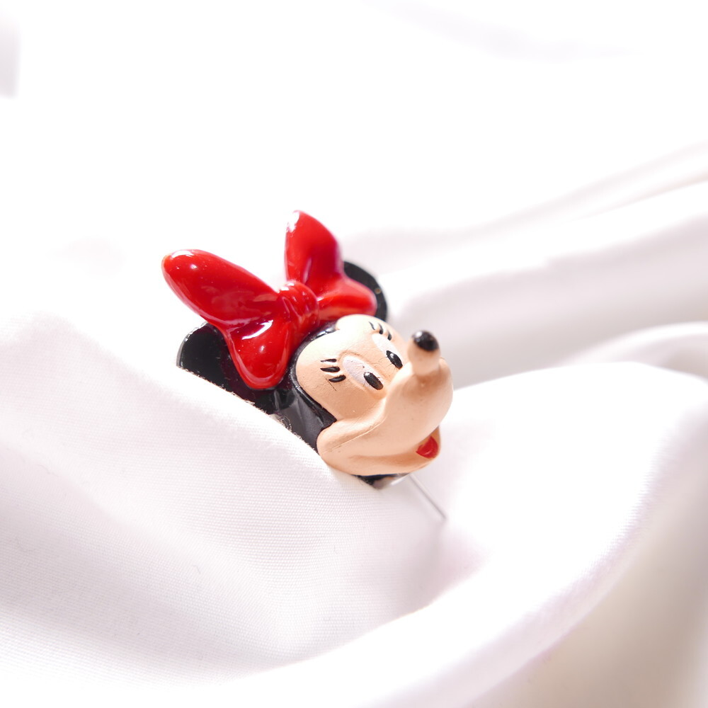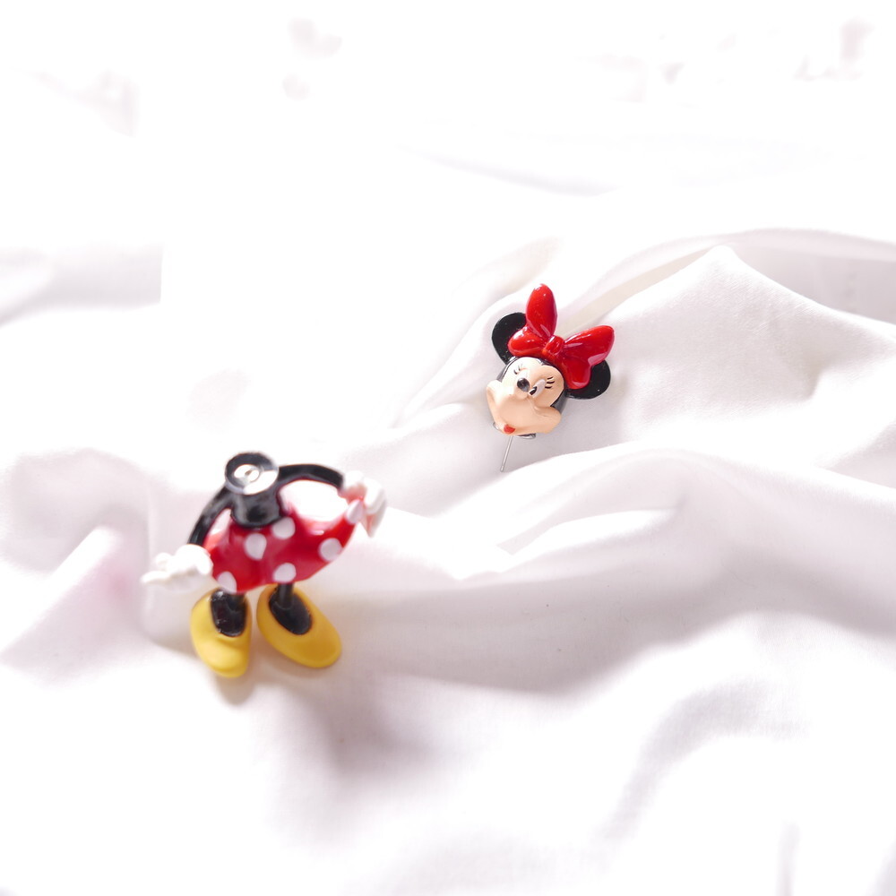 A bold and playful piece, the Giant Minnie Earring is a single statement earring featuring Minnie Mouse’s skirted body on one side and her sweet winking face on the other.