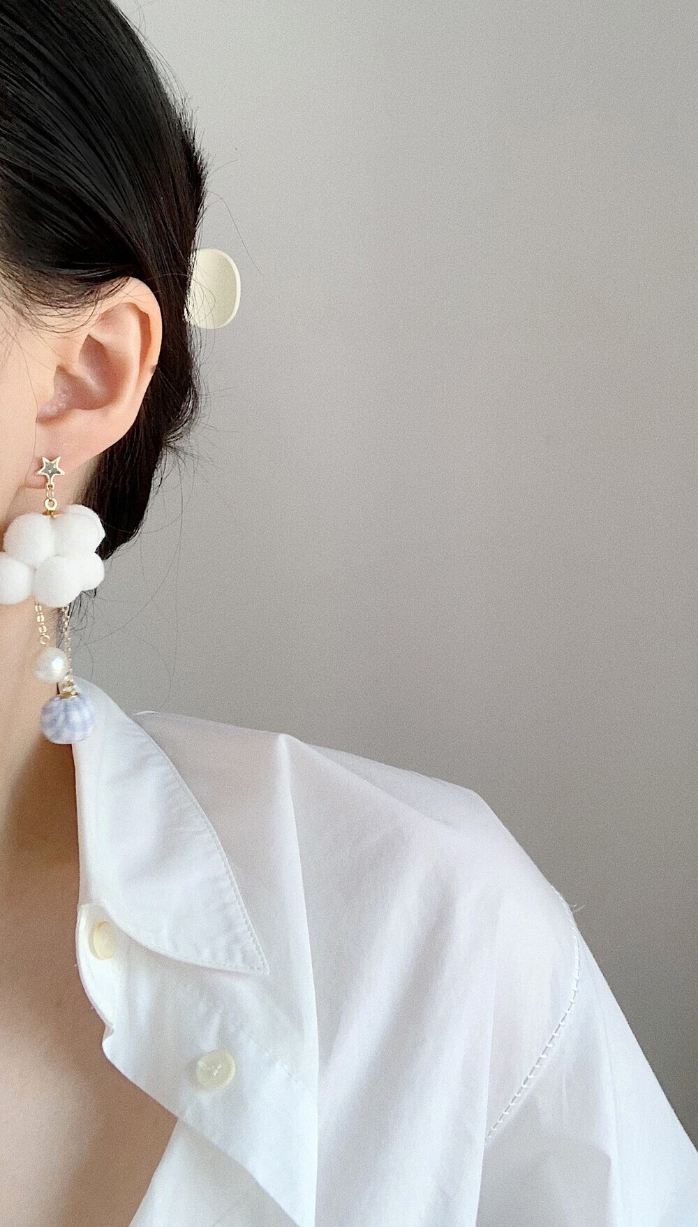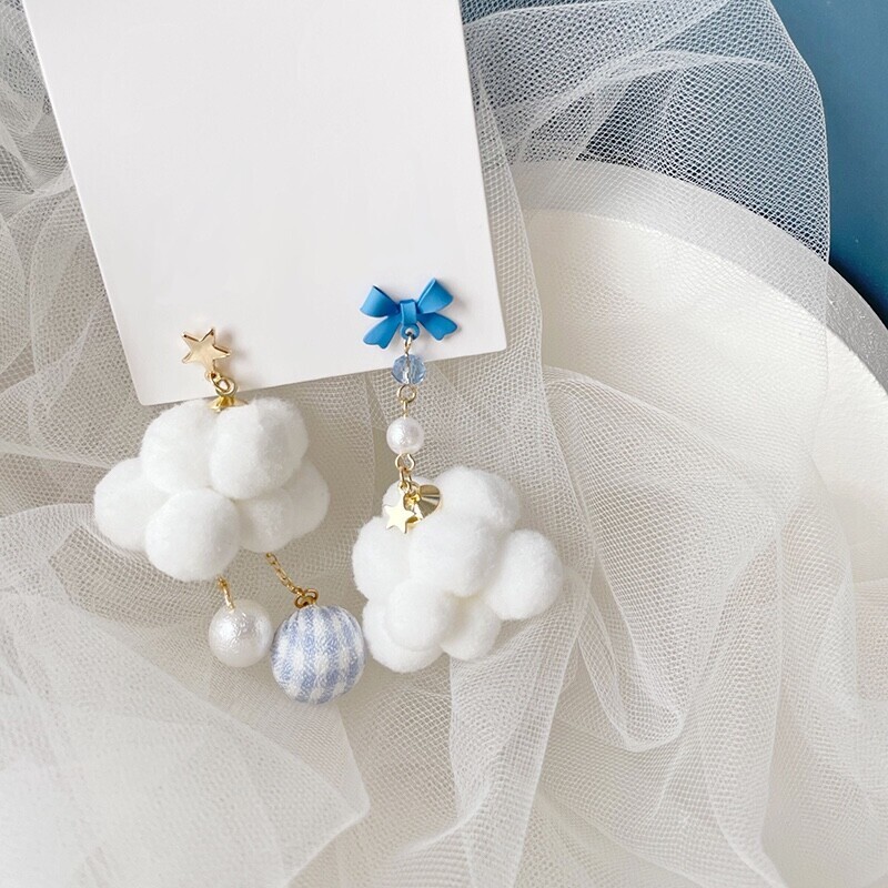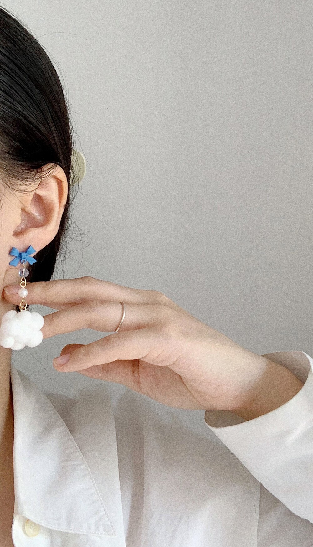 Float through your day with the Dreamy Cloud Earrings – a charming pair of asymmetrical drops featuring fluffy white clouds, a delicate star, pearl dangles, and a pop of blue ribbon. Crafted with silver 925 posts, this whimsical pair is perfect for dreamy, soft outfits.