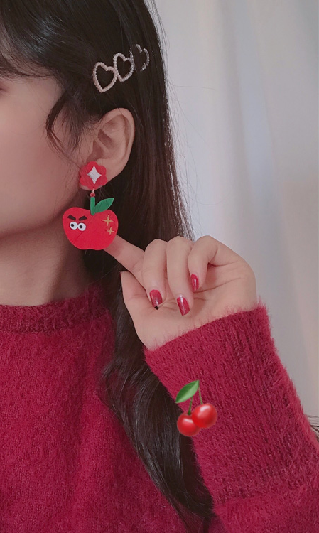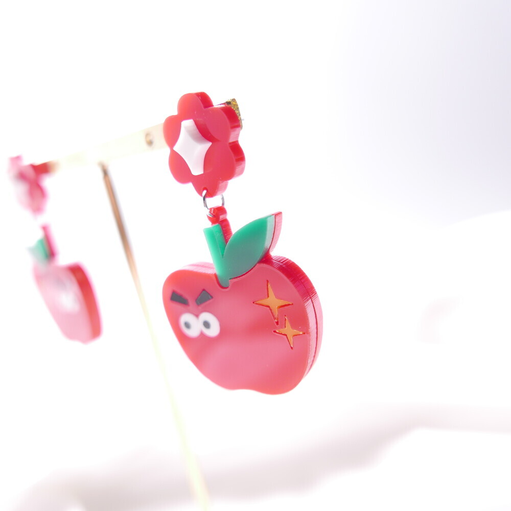 Finished with a red floral stud top and made using sturdy acrylic, this piece adds a bold and cheeky twist to your outfit.🍎
