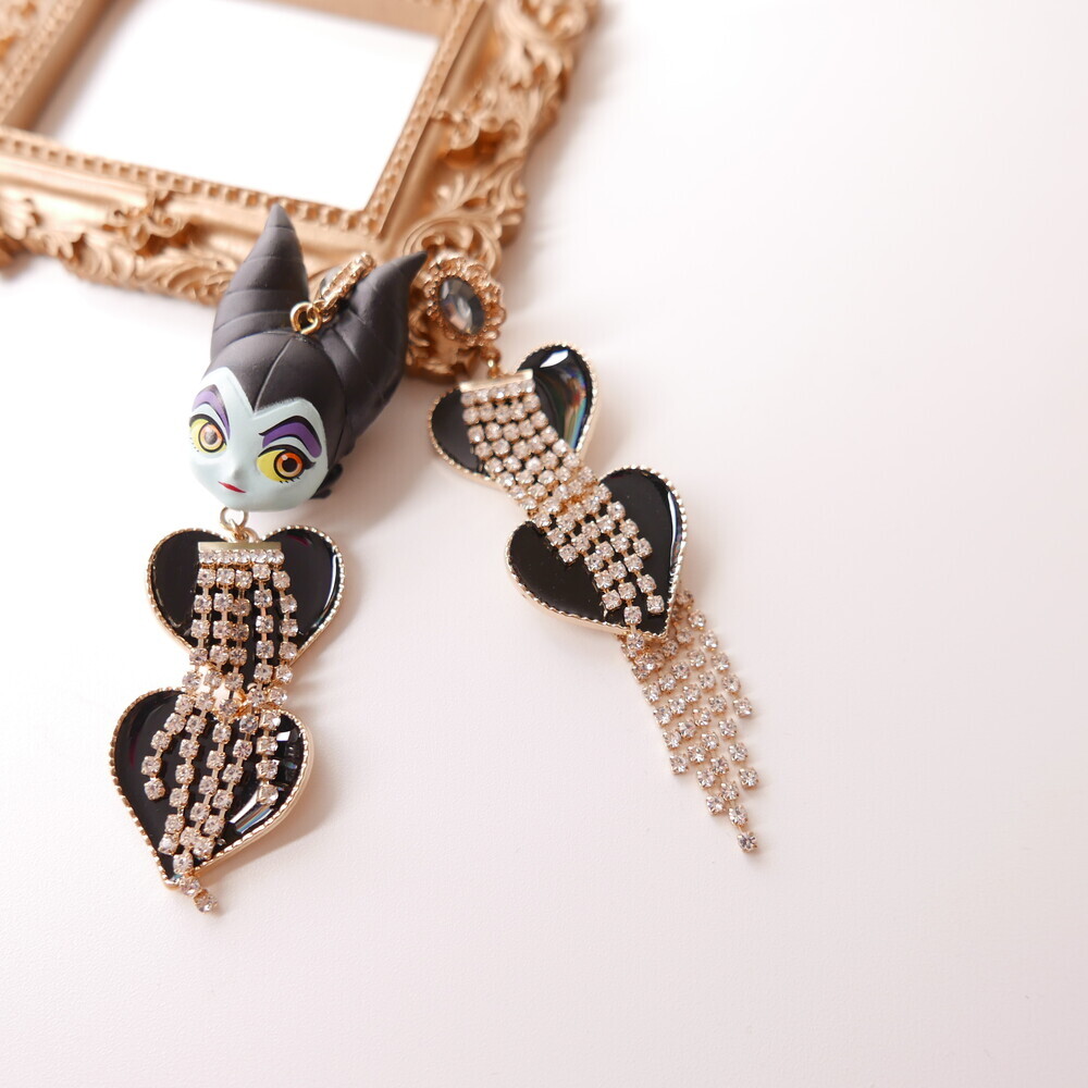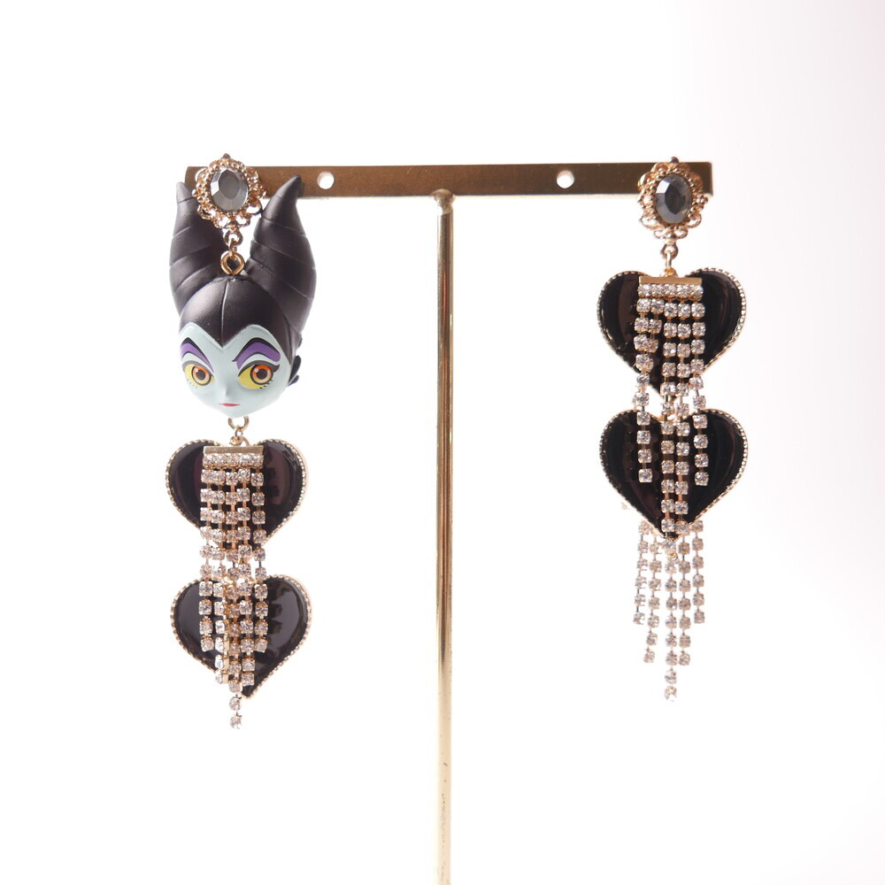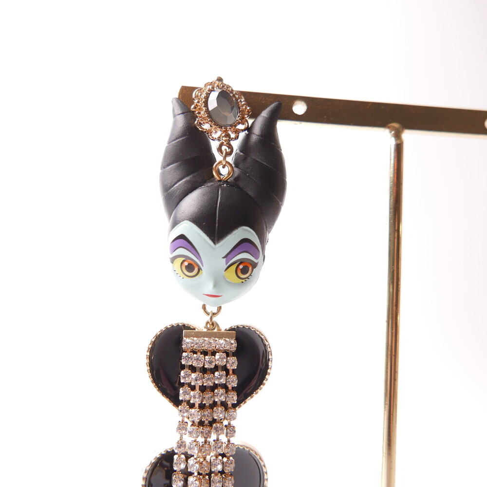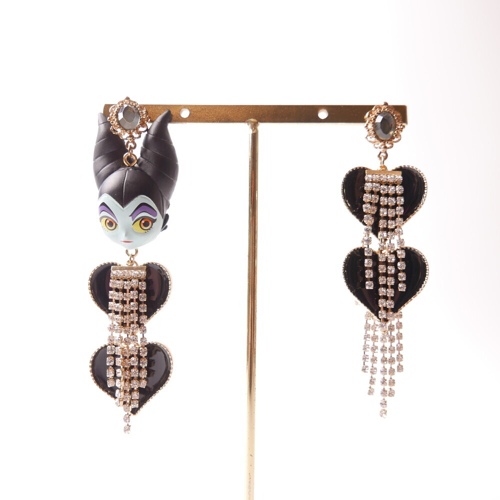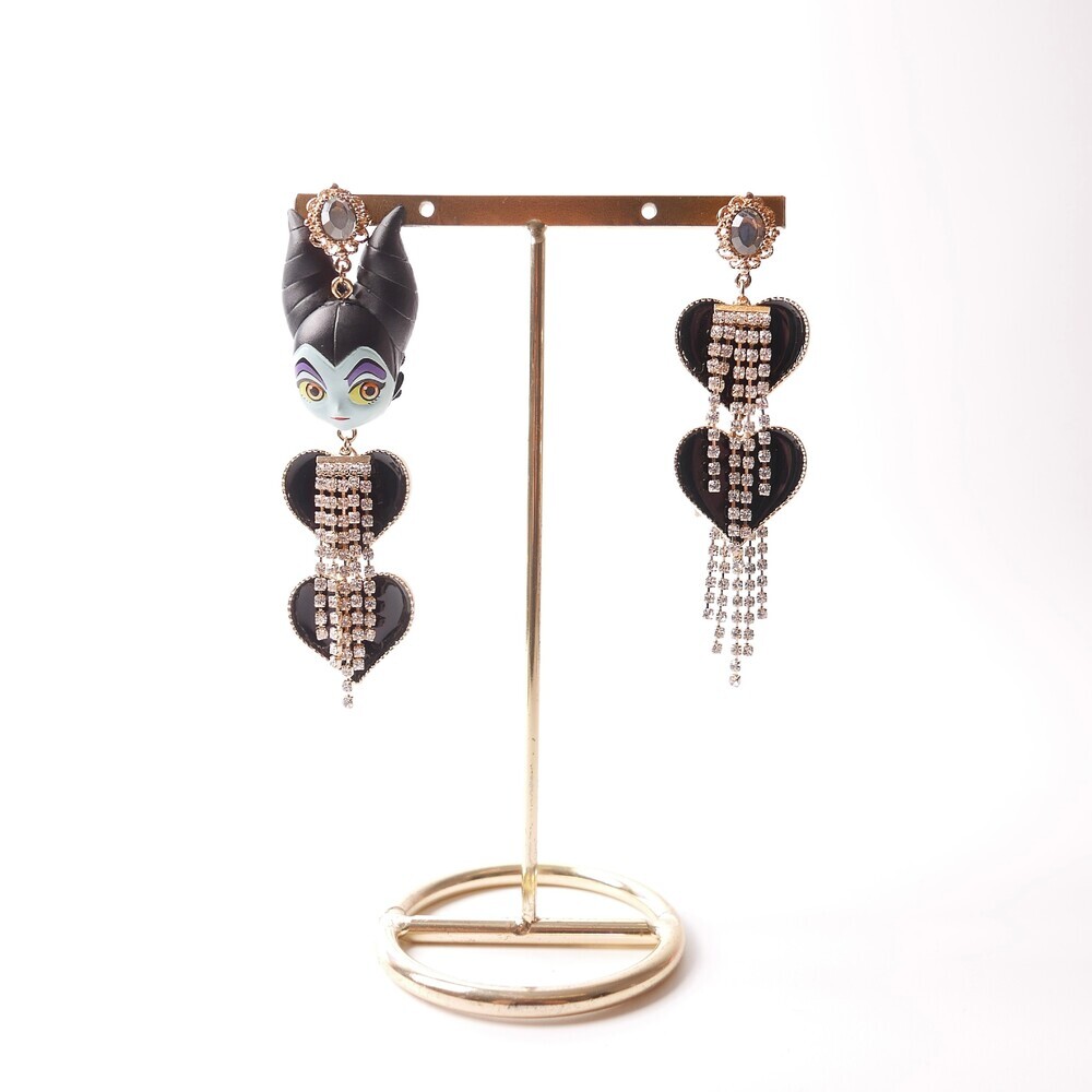 Meet Maleficent in her cutest form! This baby version of the iconic villain features a bold black and gold heart base with cascading cubic chain drops. The statement design brings playful elegance to your outfit with a touch of villainous glam.