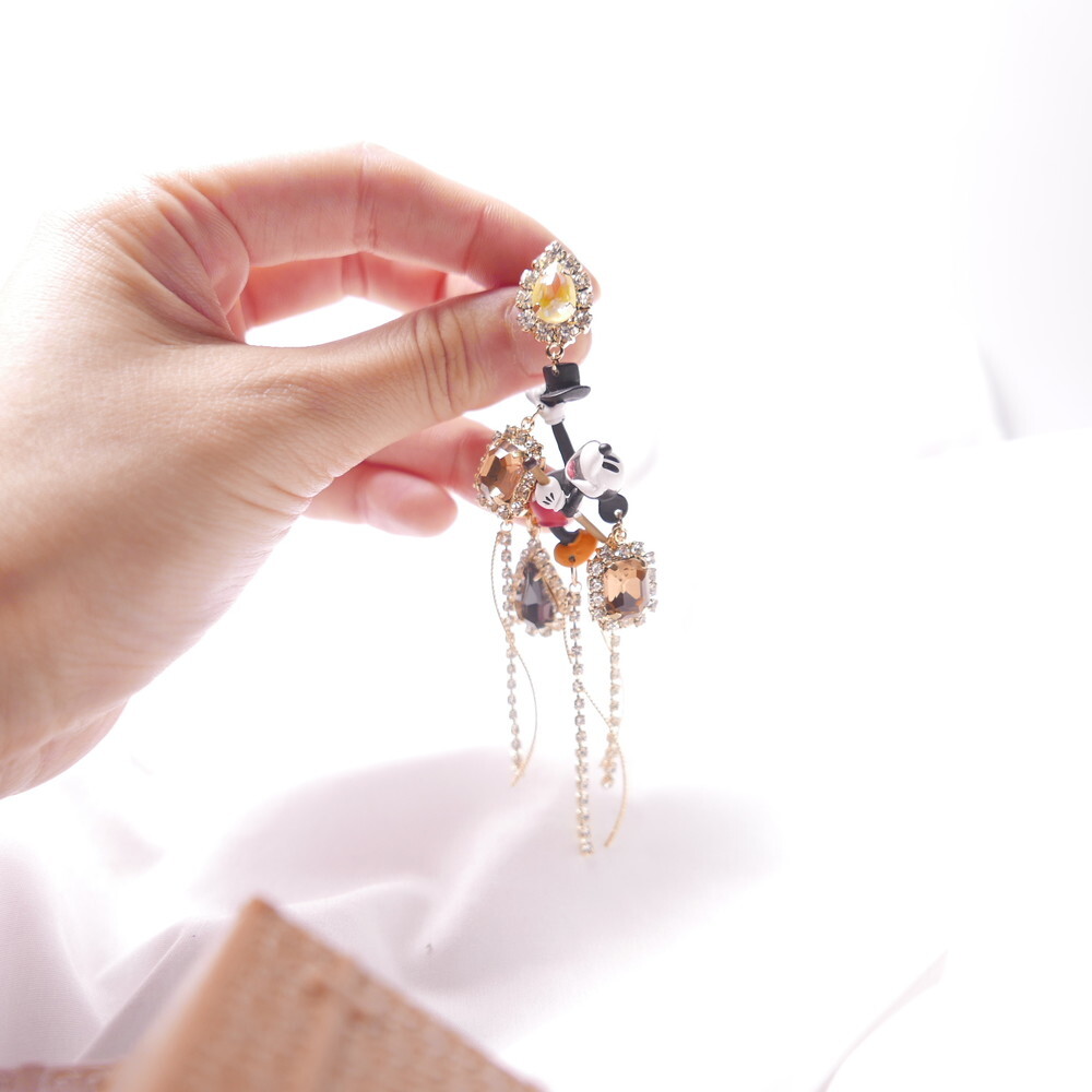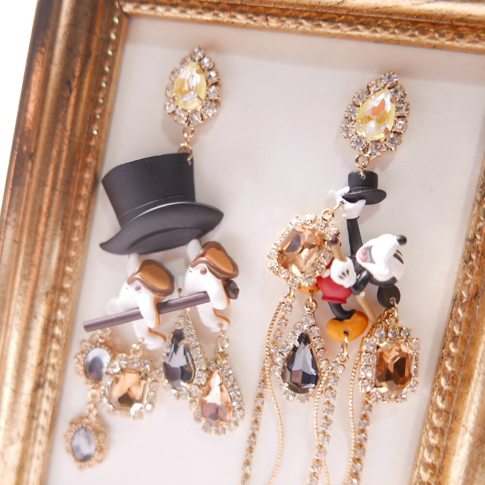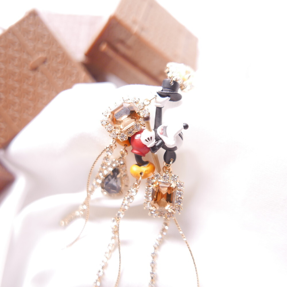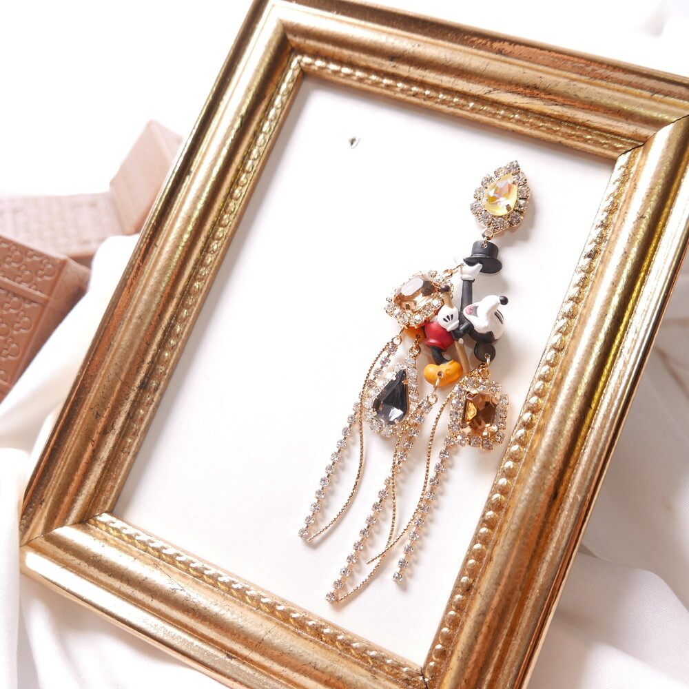 Featuring Mickey Mouse as a sorcerer with a bold top hat, detailed crystal embellishments, and playful cascading chains, this statement pair adds an elegant, whimsical flair to your outfit.