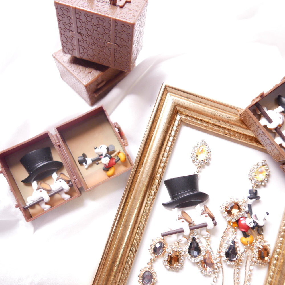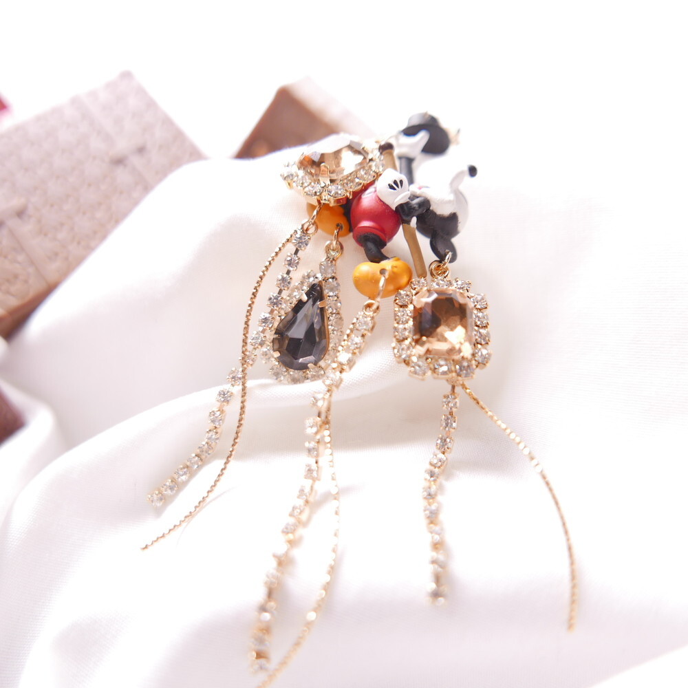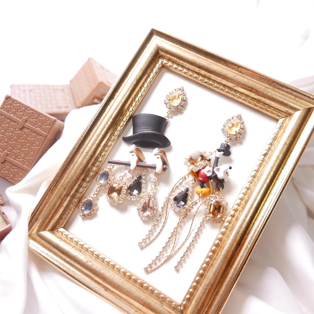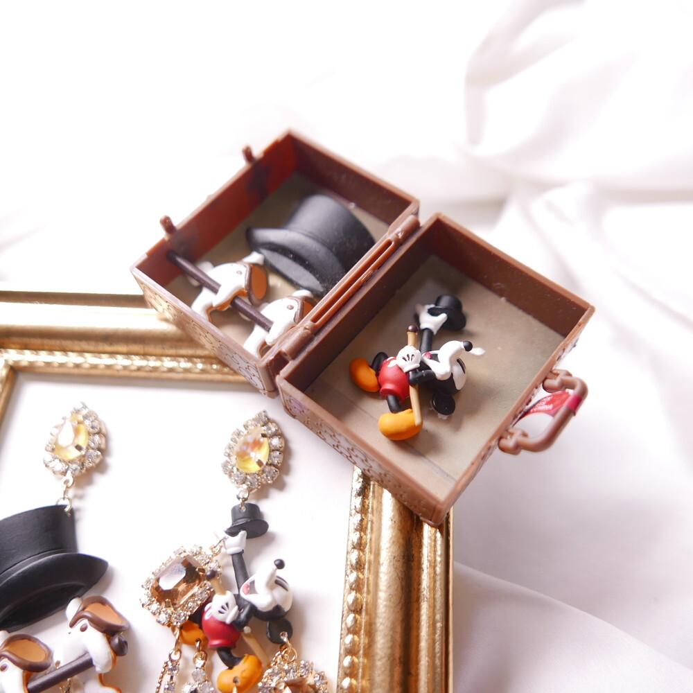 Featuring Mickey Mouse as a sorcerer with a bold top hat, detailed crystal embellishments, and playful cascading chains, this statement pair adds an elegant, whimsical flair to your outfit.