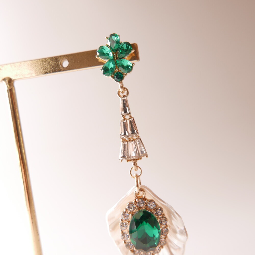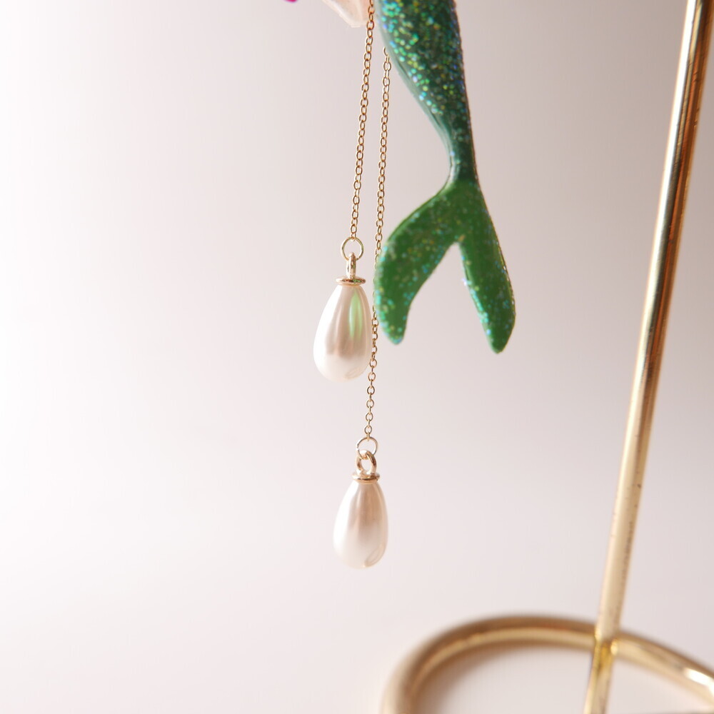 The contrasting lengths and intricate details give this set a whimsical, storybook-like charm. Light-catching glitter, pearls, and playful movement make this an unforgettable accessory.