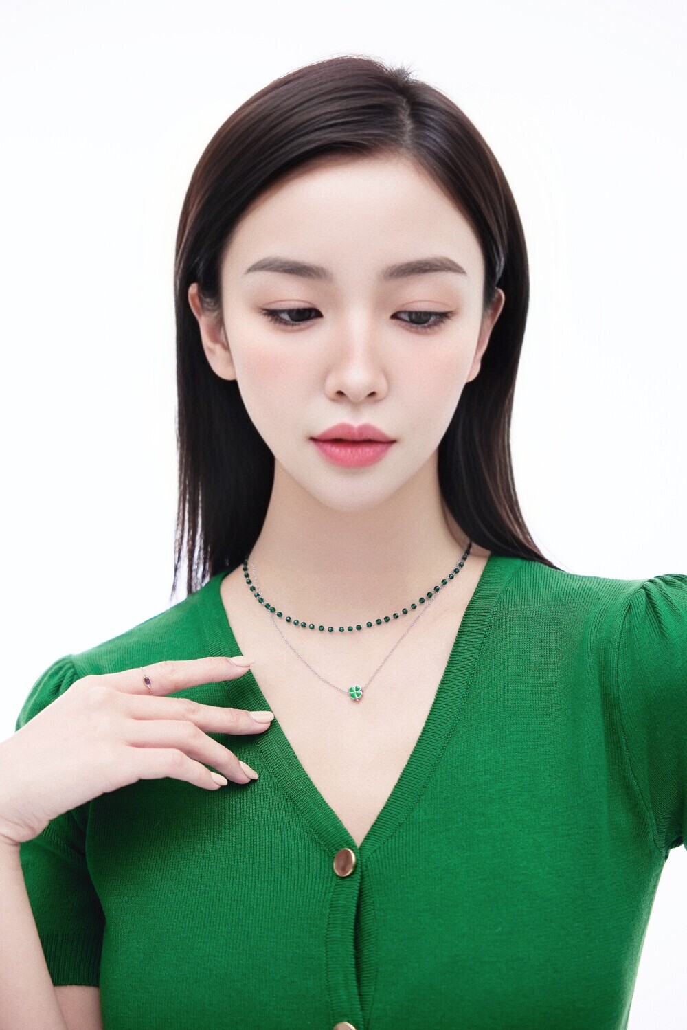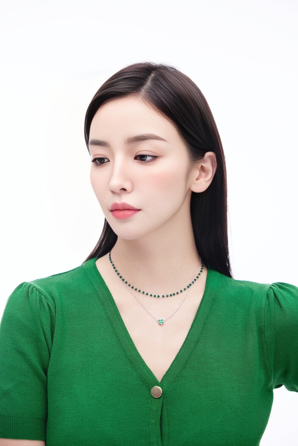 Chain : Green Crystal / Surgical Steel
