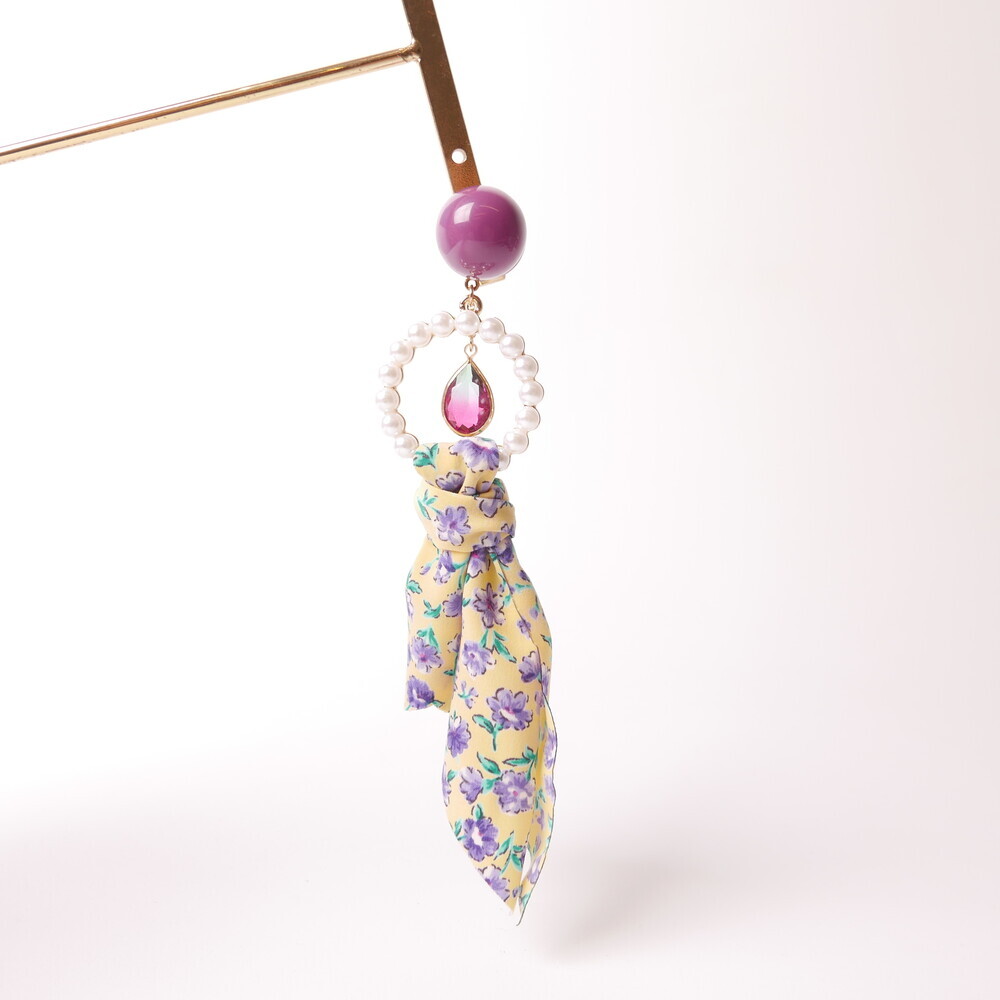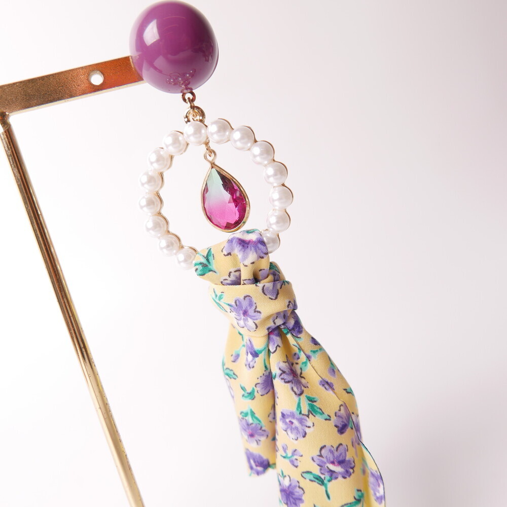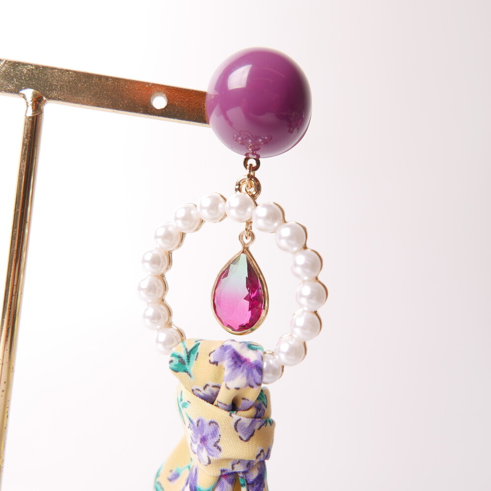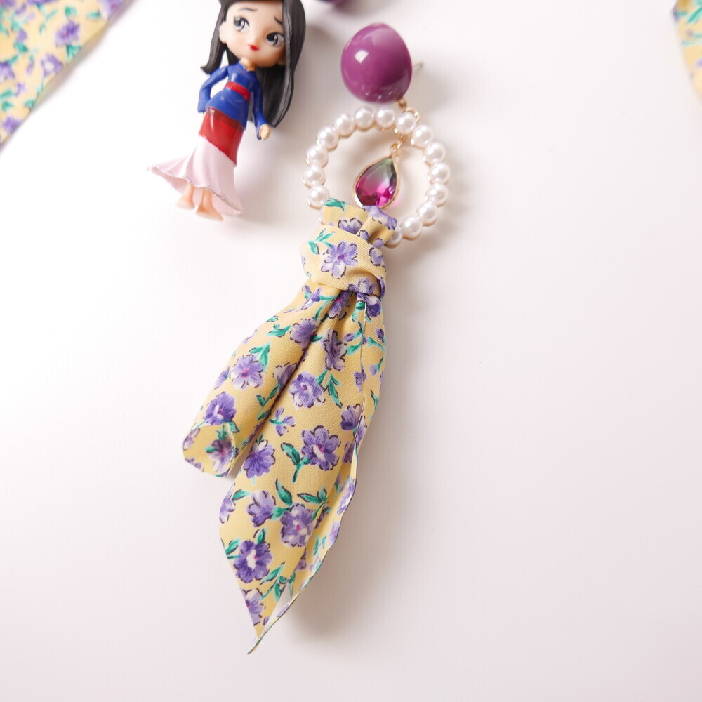 Celebrate bold elegance with our Mulan Bebe earrings! One side features a charming figure of Mulan in her iconic outfit, while the other boasts a floral-patterned scarf drop from a pearl loop with a pink gem accent. Lightweight yet statement-making, this asymmetrical pair blends whimsy with tradition for a uniquely stylish look.