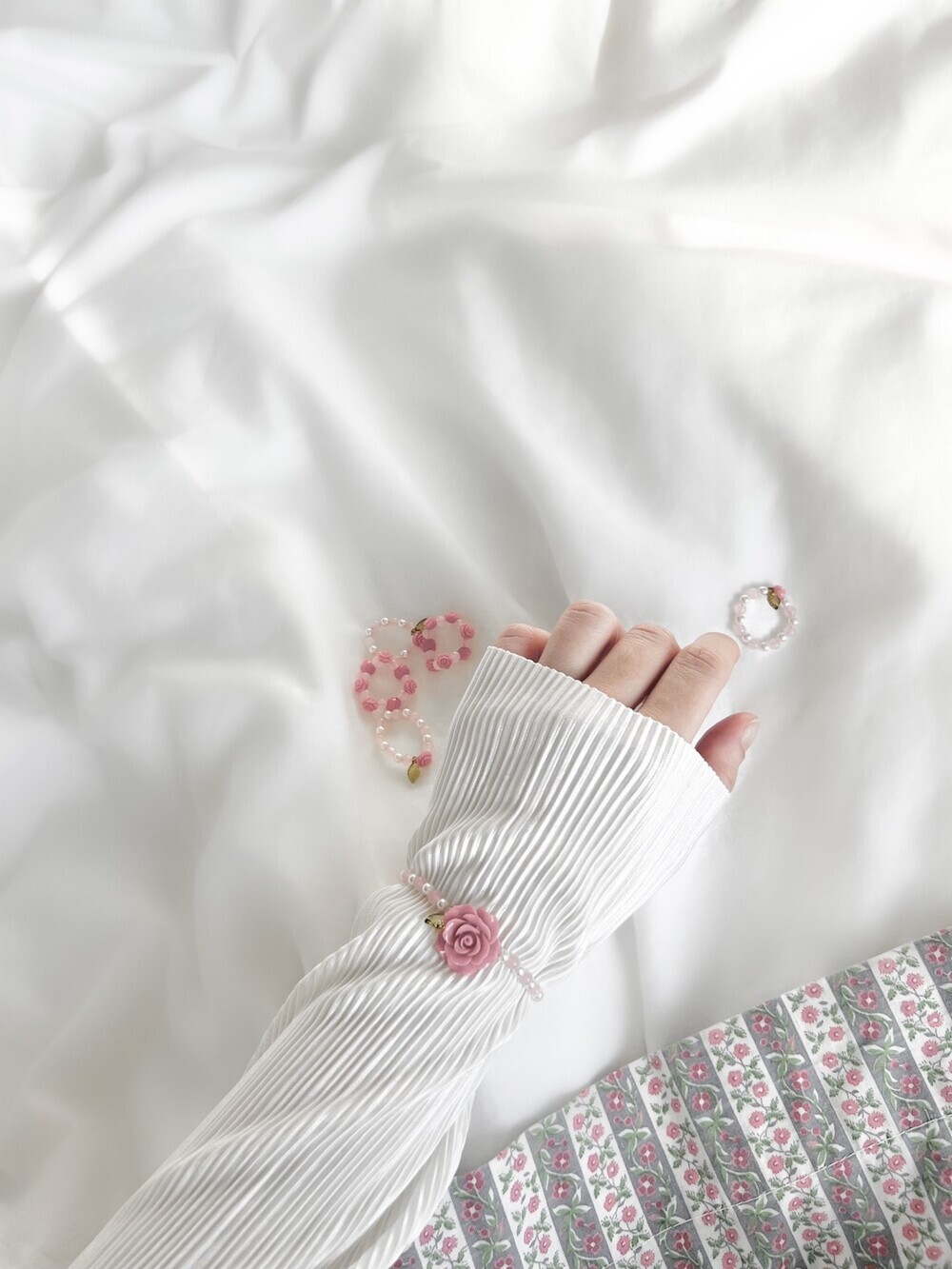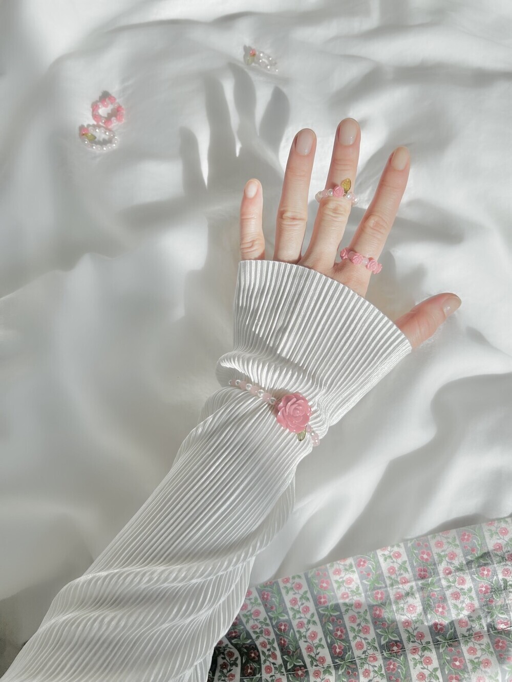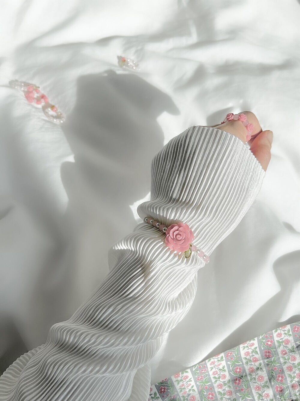 The Single Rose Bracelet is crafted with soft pink rose quartz, natural pearls, and a delicate rose charm made from Songseok (serpentine stone). Known as the “stone of love,” rose quartz adds a romantic touch with its subtle strawberry-milk tone. The bracelet is made from a stretchy band that adjusts comfortably to your wrist for a perfect fit.