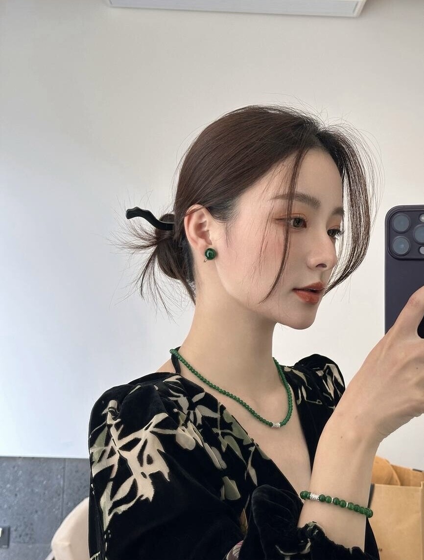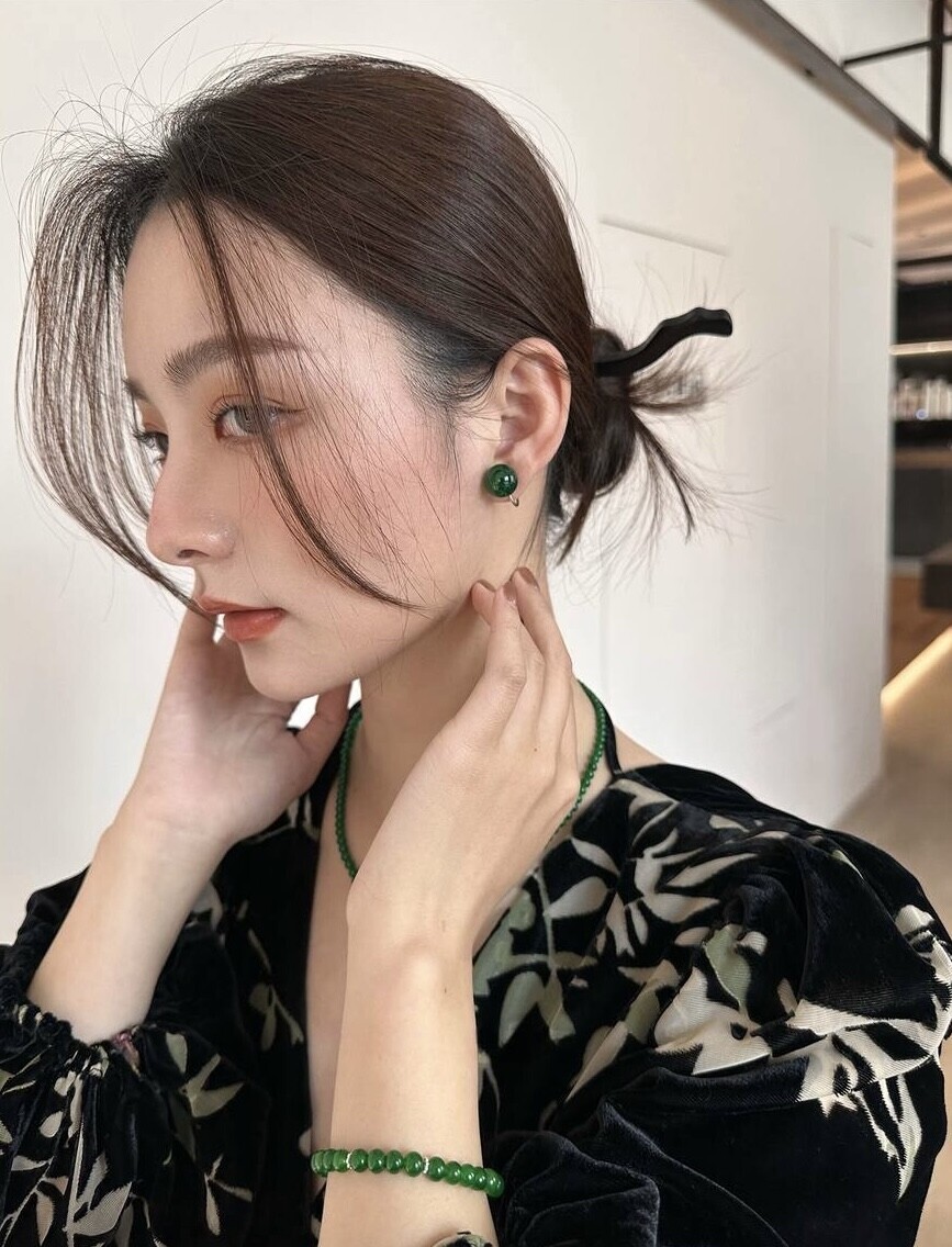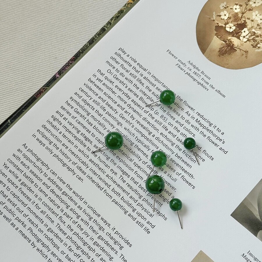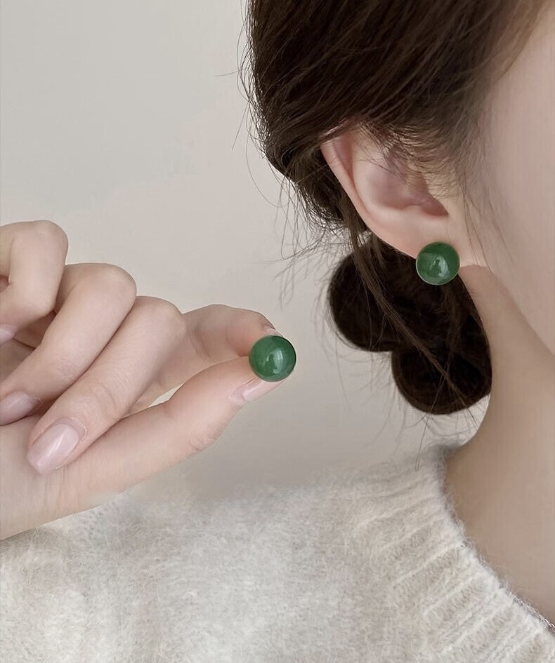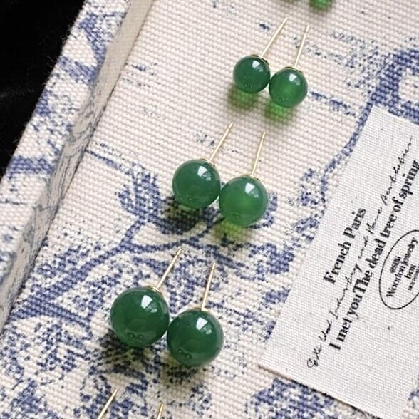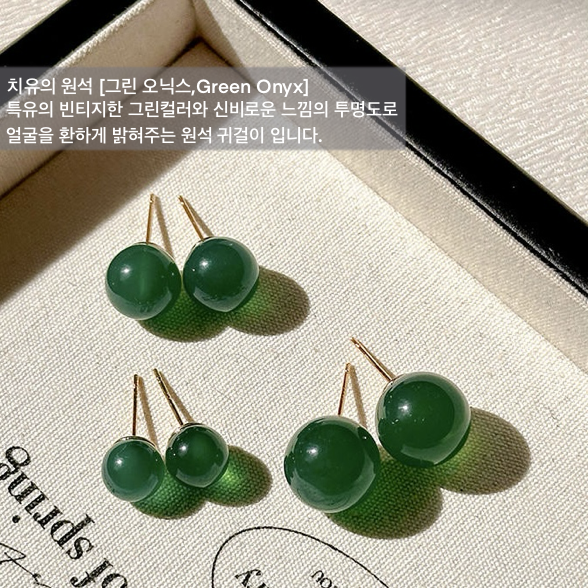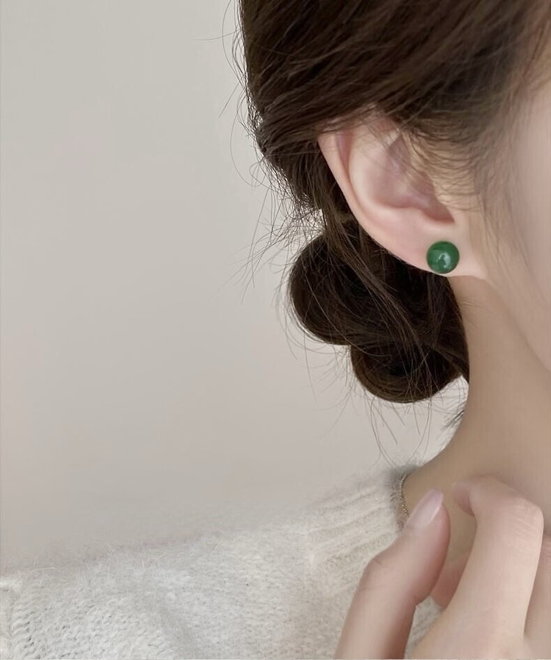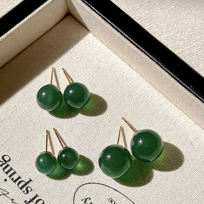 Timeless and luminous –These round green onyx studs come in 3 sizes to match your look and mood.With their subtle translucence and vintage green tone, they brighten the face and exude quiet elegance.Pair them with matching bracelet or necklace to complete your own “Secret Garden” set.