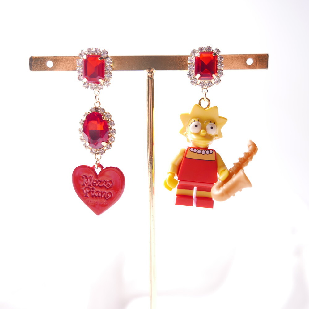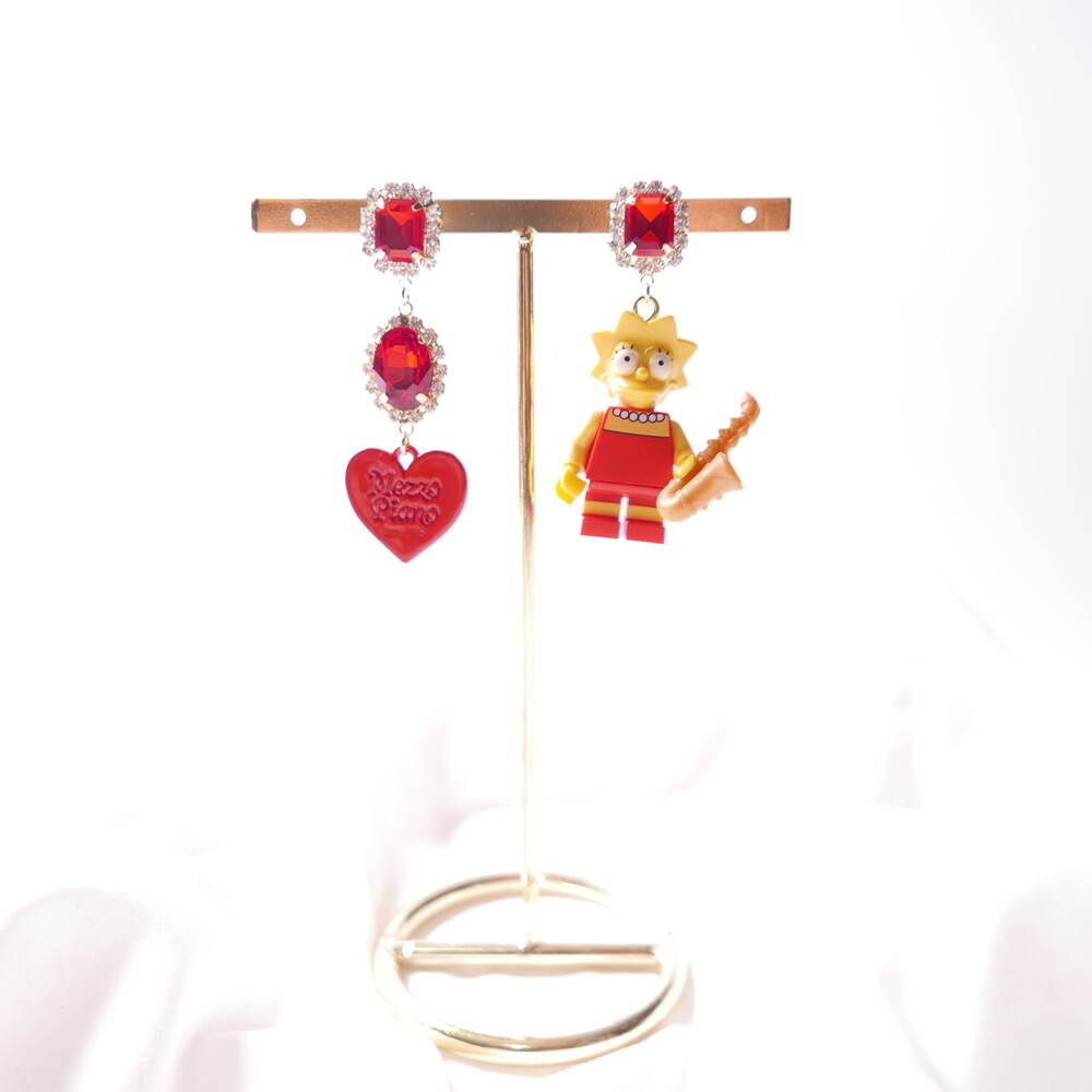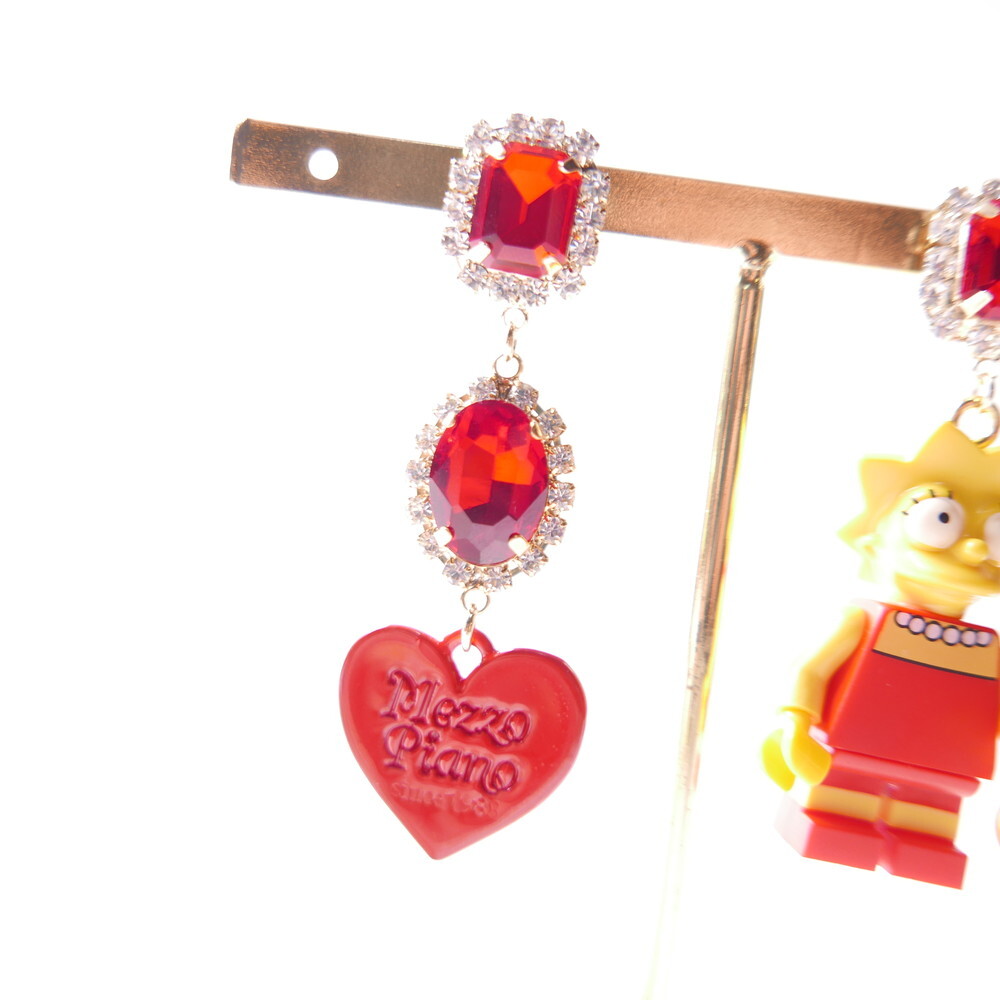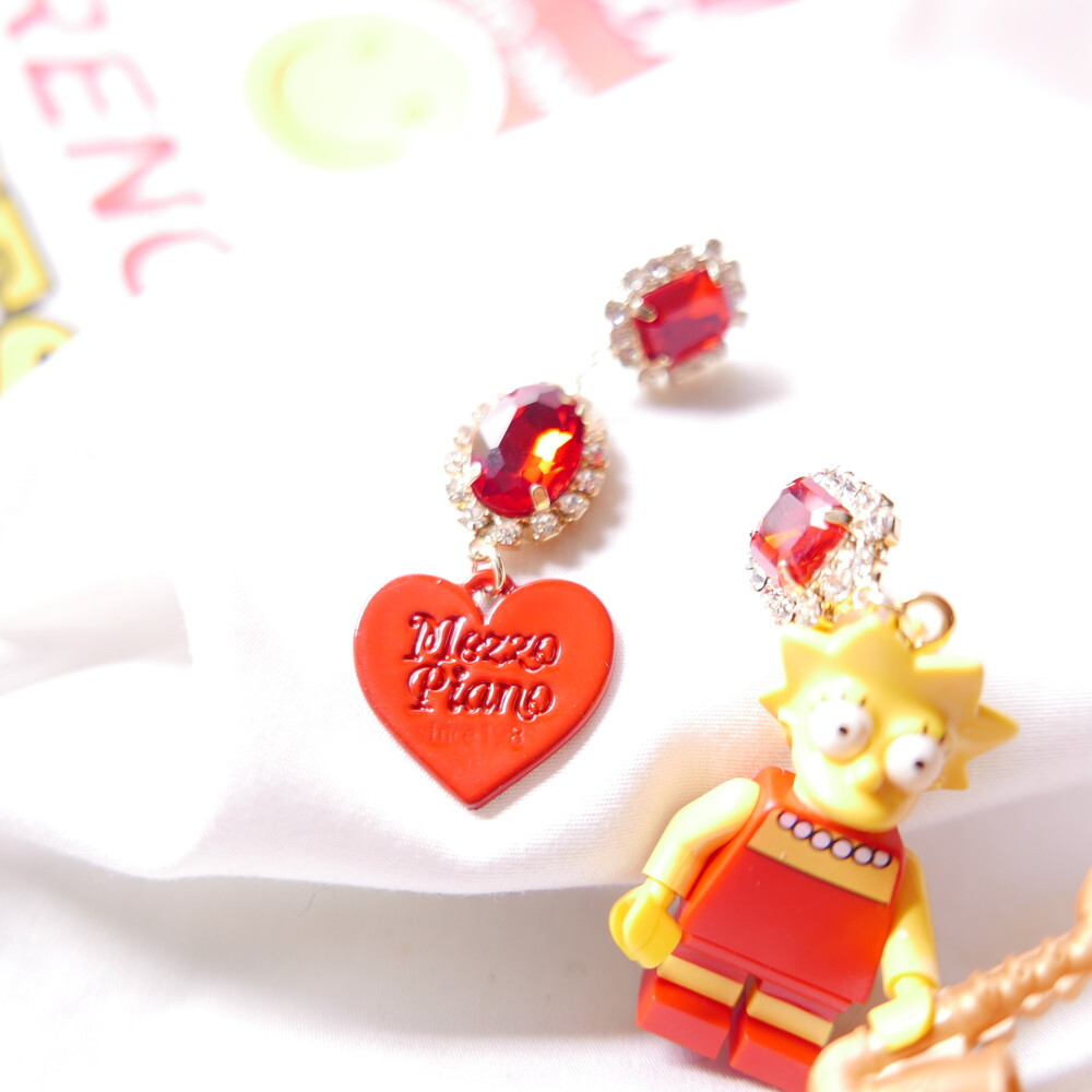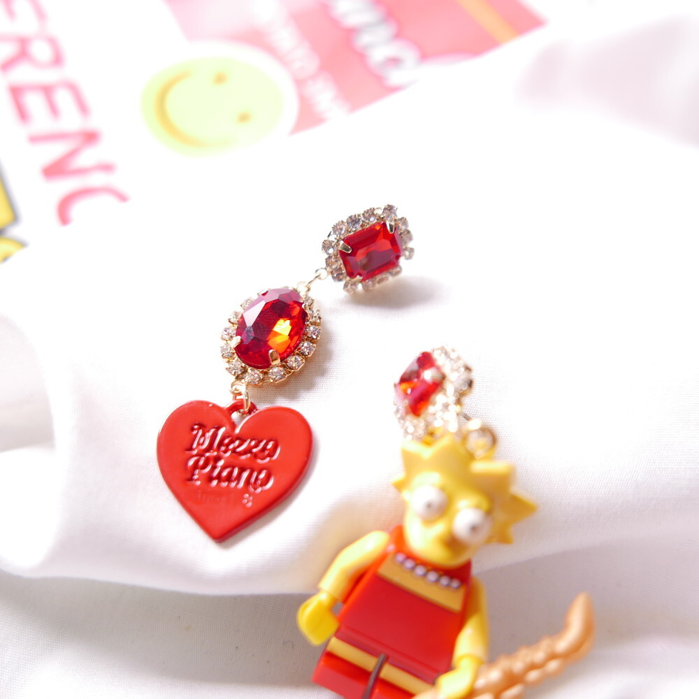 Paired with a bold red gemstone and heart charm on the other side, this mismatched set brings playful energy and nostalgic flair to your look.
