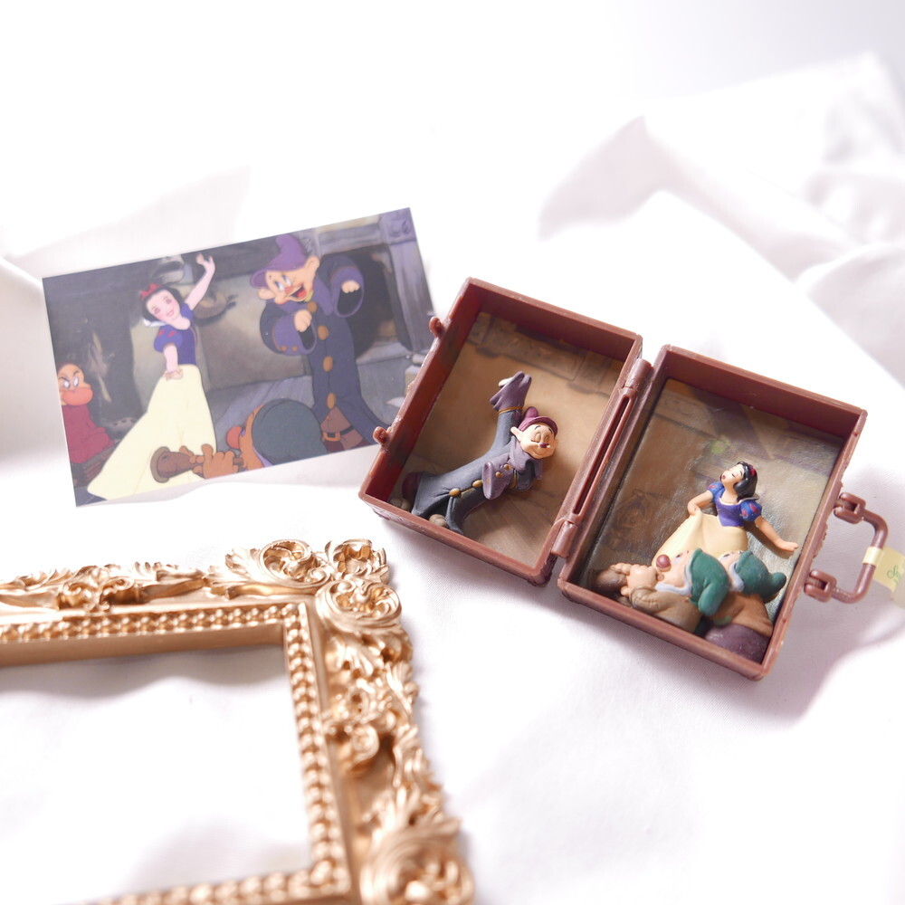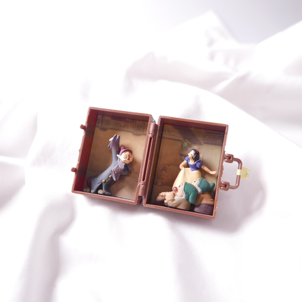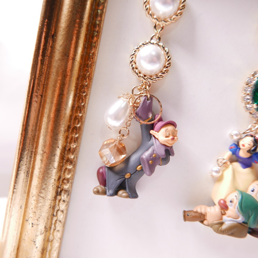 Featuring Snow White and her dwarfs, accented with pearls, sparkling crystals, and playful bead charms, this piece captures the wonder and sweetness of the beloved story. A whimsical design full of detailed, layered elements. Made with a limited edition unopened vintage toy.