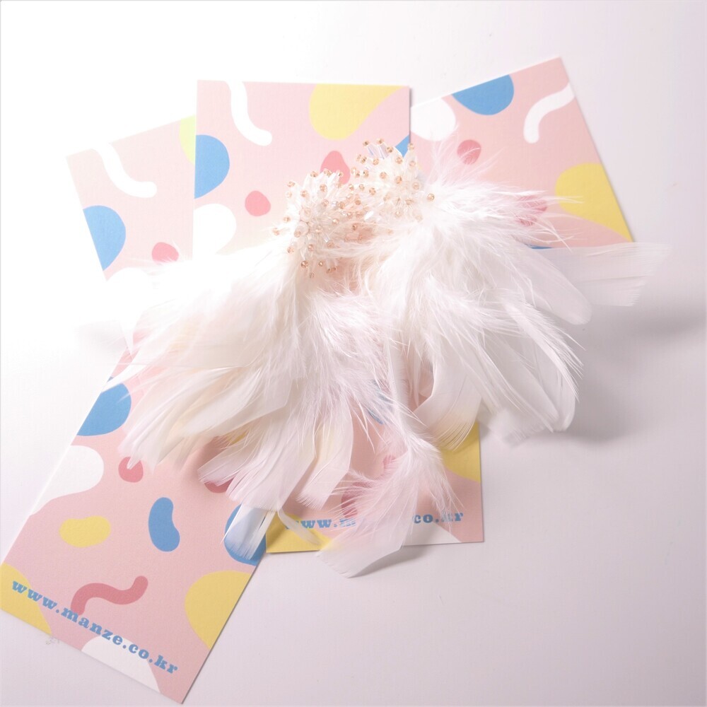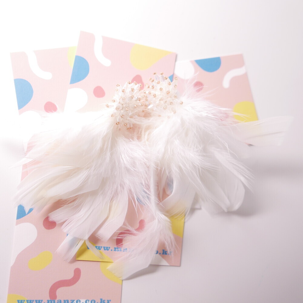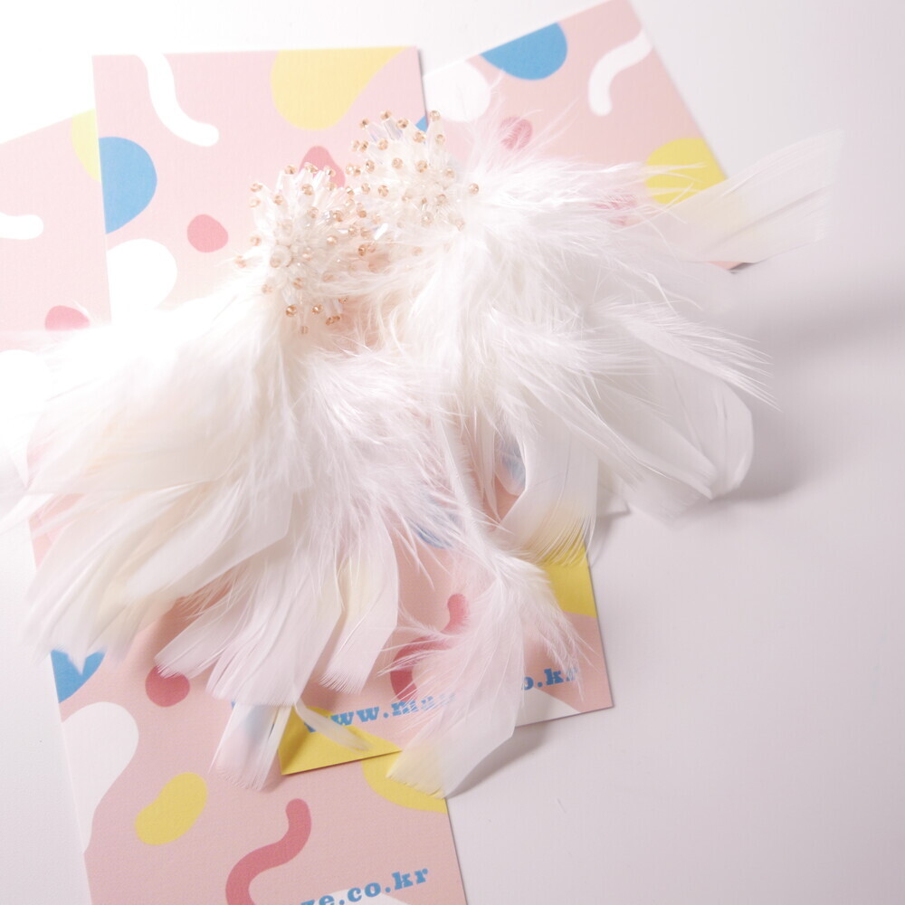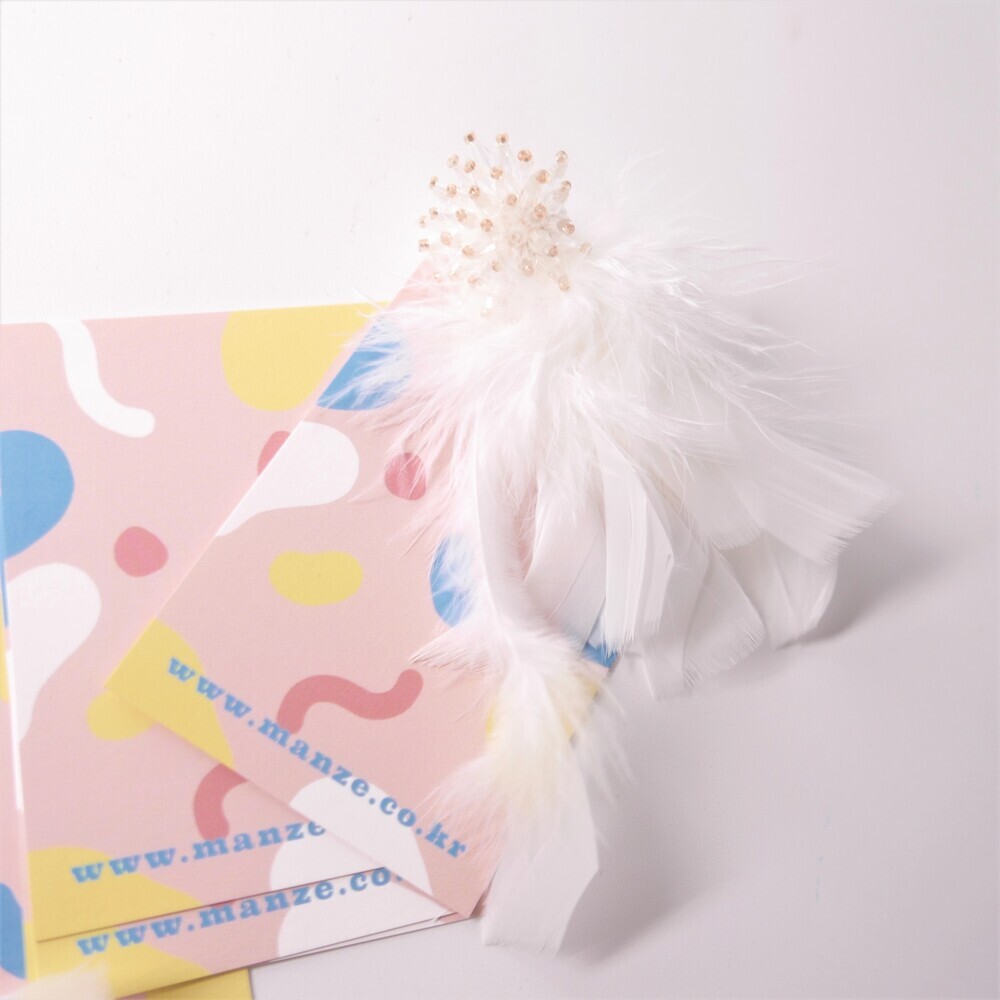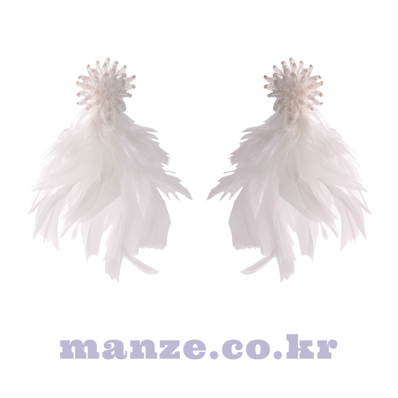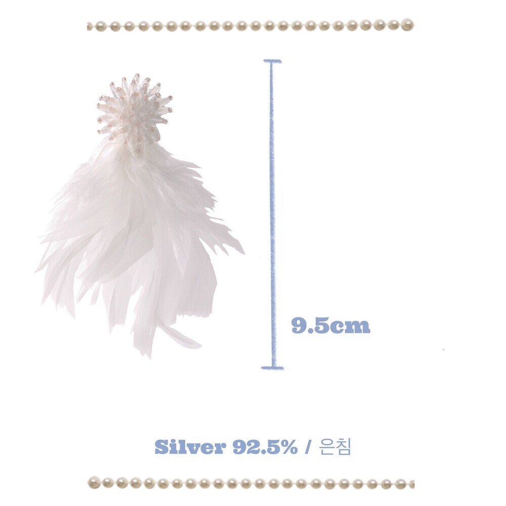 A soft and elegant statement earring crafted with layers of airy white feathers and a beaded cluster at the top. This piece floats gracefully with movement, creating a delicate and ethereal look. Handcrafted with silver 92.5% posts. Please note: this item is made to order and takes 3–4 days for production.