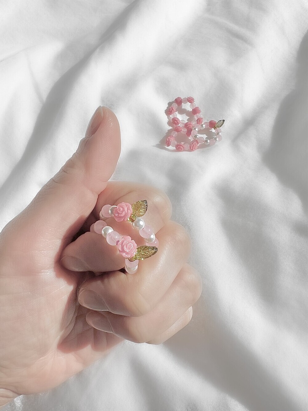 Crafted with soft pink rose quartz and delicate Songseok roses, this ring is the perfect symbol of love and gentleness. Whether you choose the subtle "Single Rose" or the lush "Full Bloom" version with clustered roses, both styles are designed with stretch bands for a comfortable and flexible fit. A romantic addition to your daily wear or a thoughtful gift to someone special.