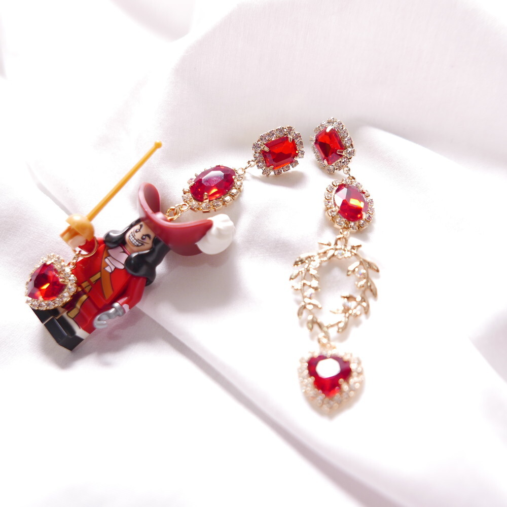 Paired with bold crimson crystal embellishments and a golden leaf heart, they deliver a theatrical and glamorous vibe.