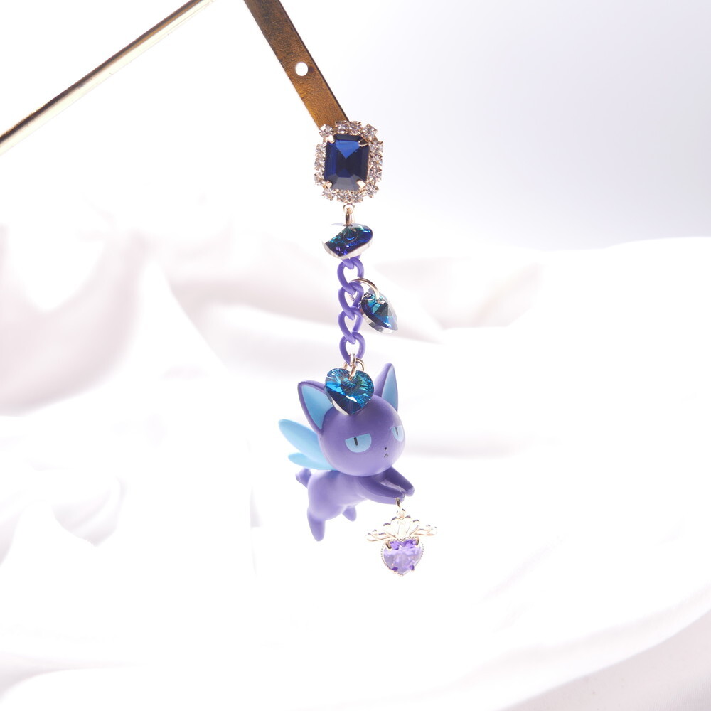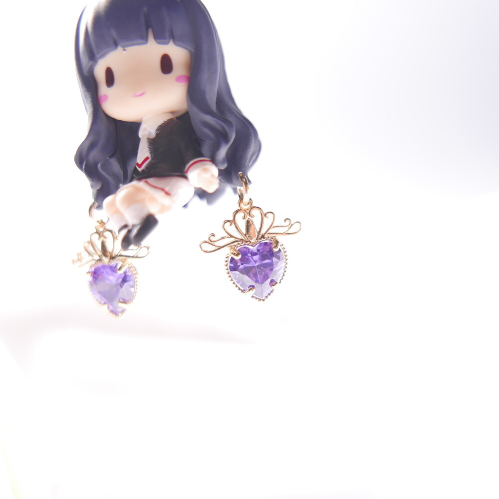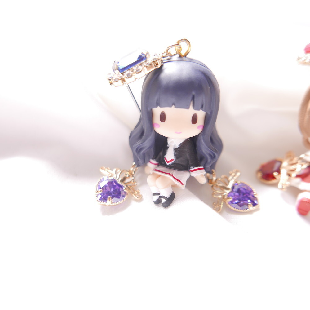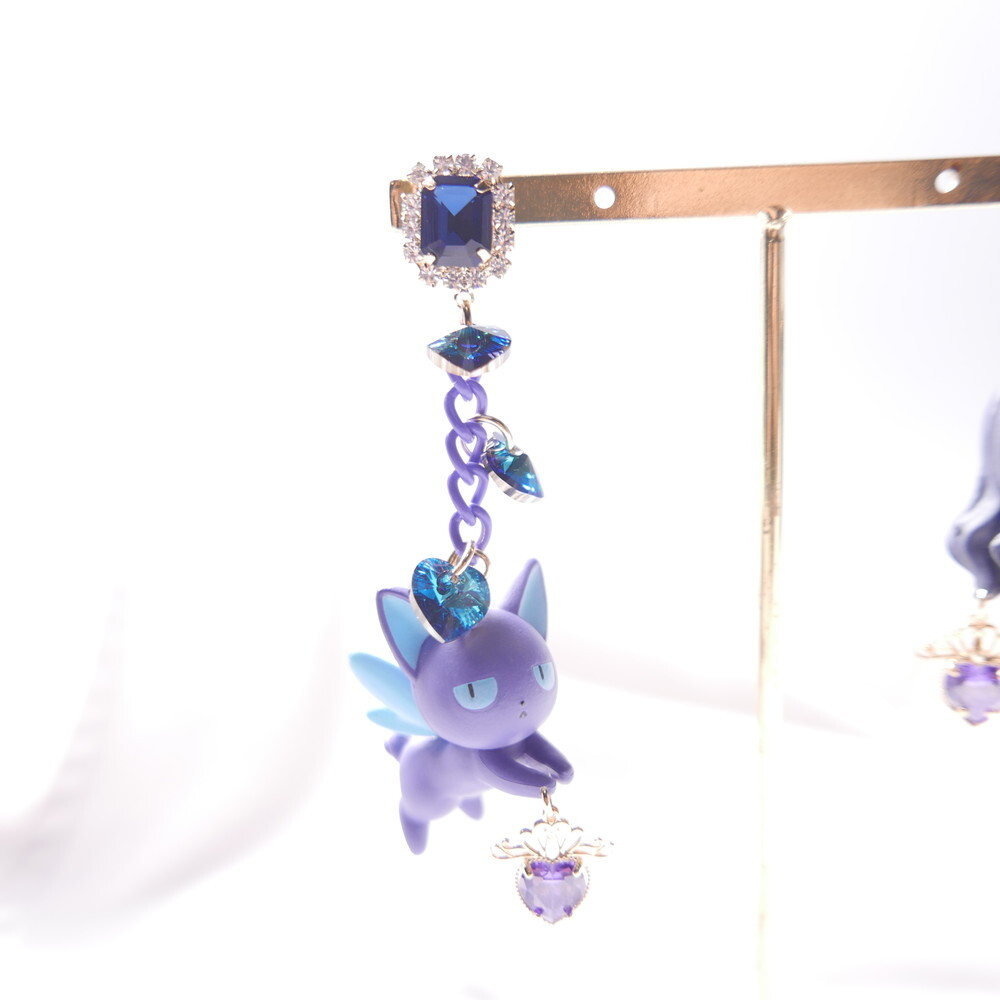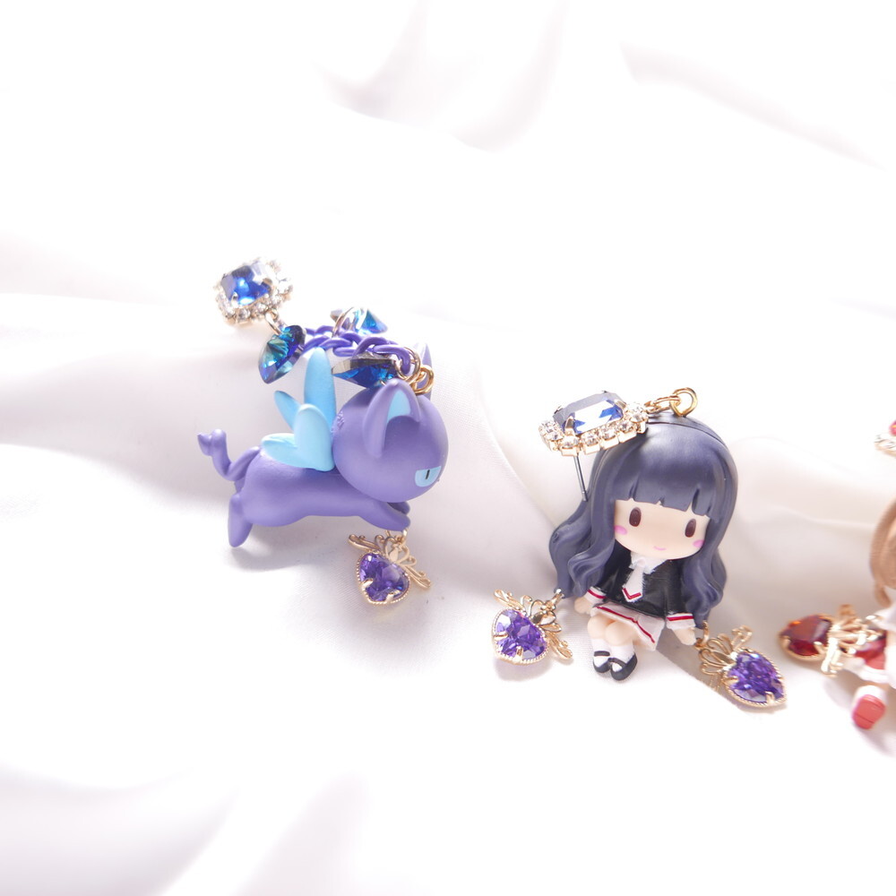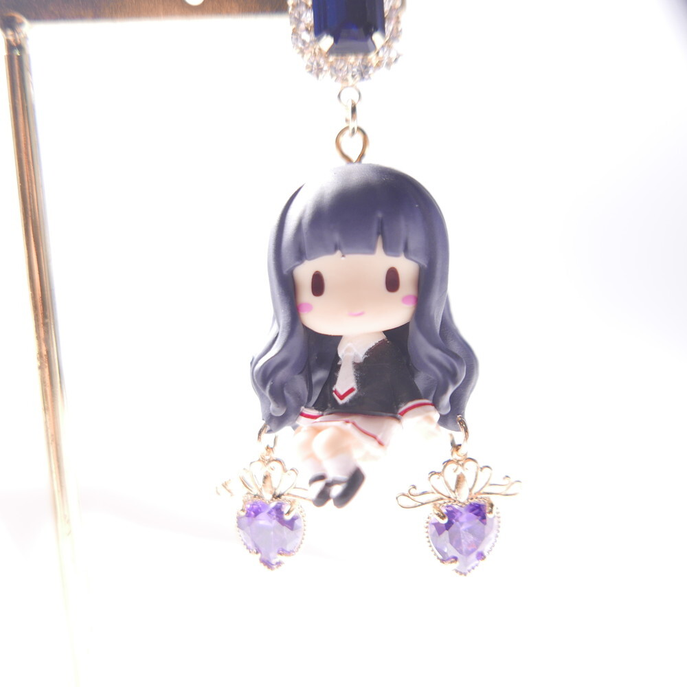 Inspired by Cardcaptor Sakura, these mismatched earrings feature a chibi-style Tomoyo and the cool and calm Spinel. A perfect match in navy and lavender hues, enhanced with sparkling Swarovski crystals and royal blue gem tops. For fans of anime aesthetics and character-based jewelry, these earrings add a touch of magic to any look.