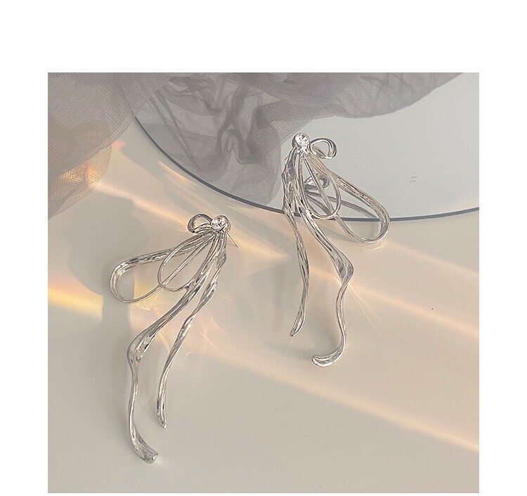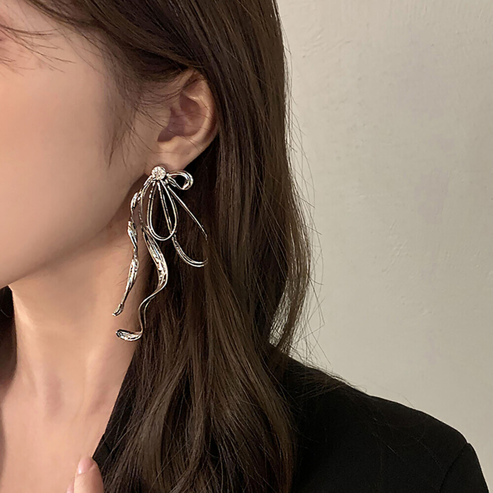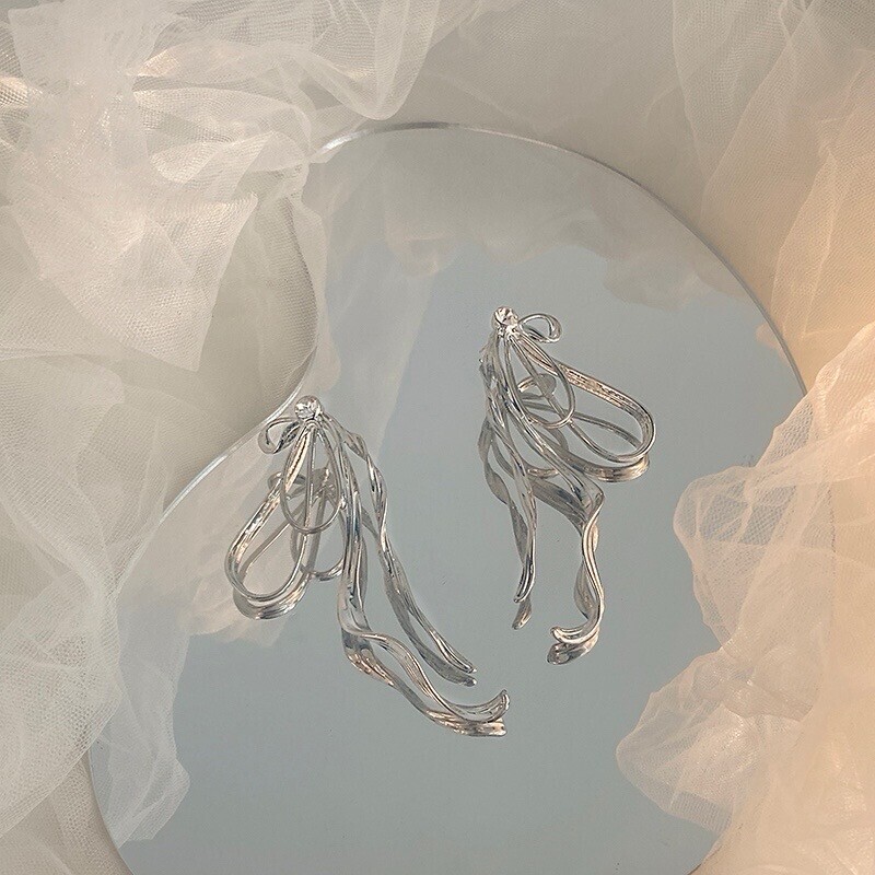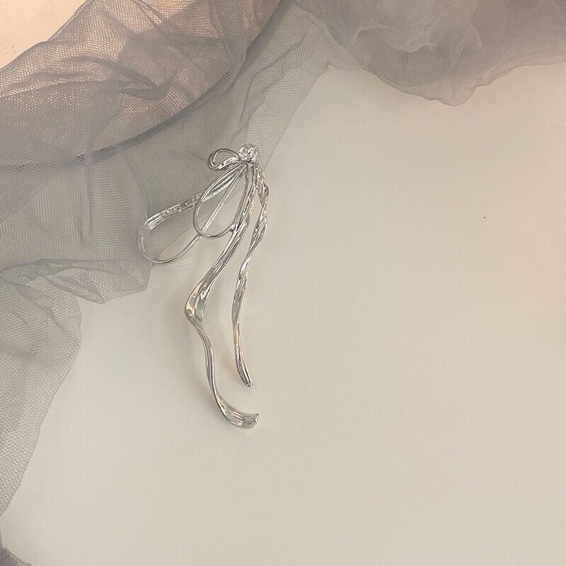 These Wave Ribbon Earrings feature a flowing, sculptural bow design. With a dimensional and elegant silhouette, they offer a sense of movement and modern femininity. Worn by celebrities including IVE’s Rei, Kep1er’s Xiaoting, and influencer Lim Bora in a music video, these earrings are the definition of a stylish statement.