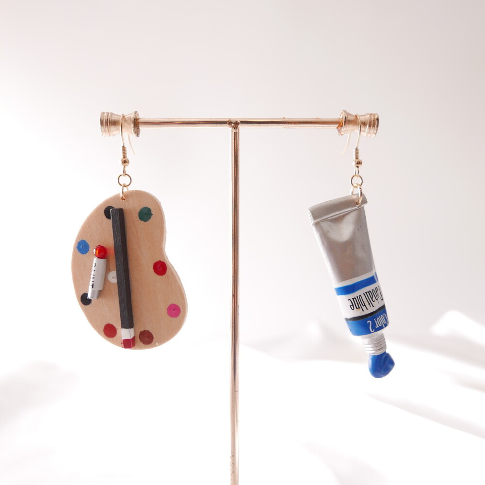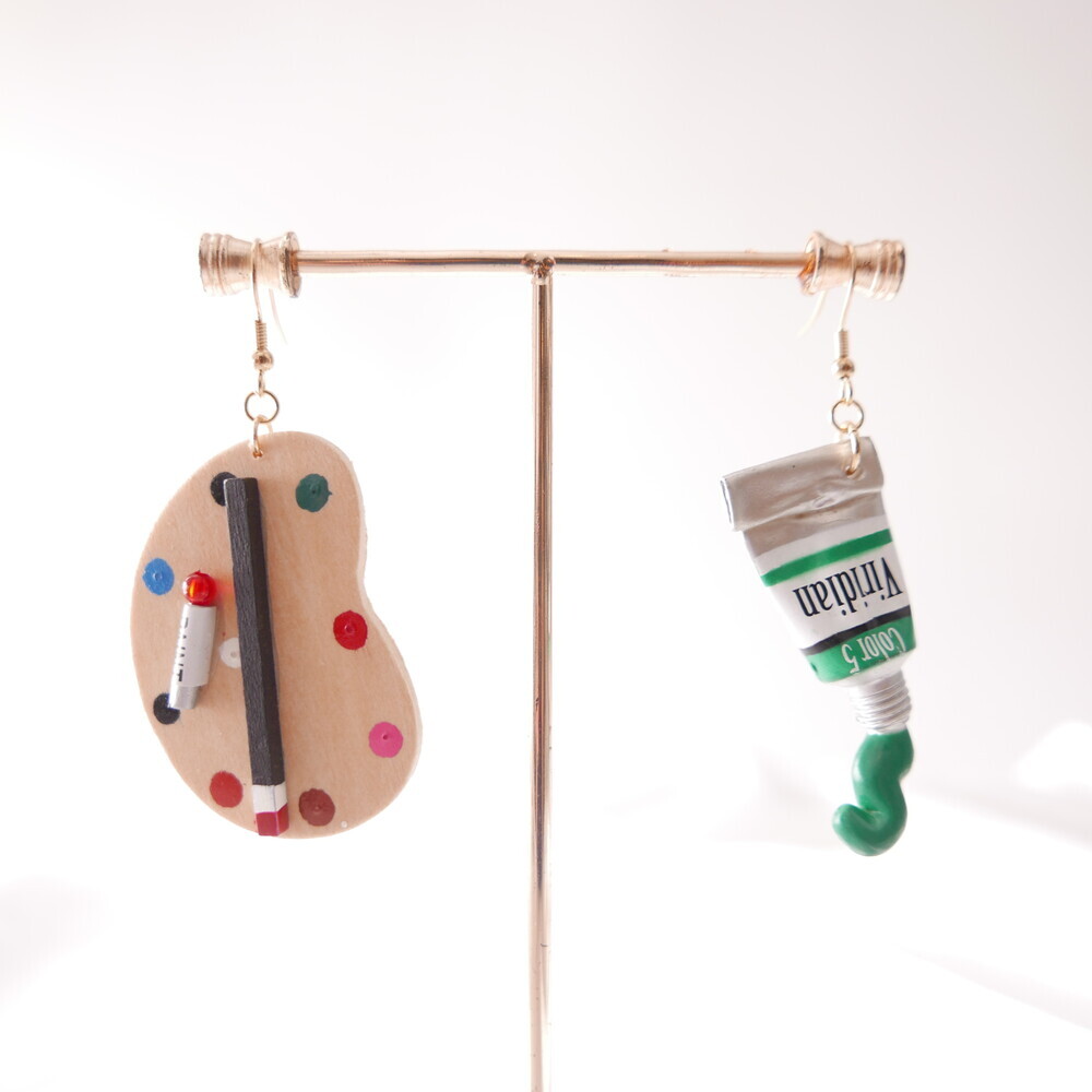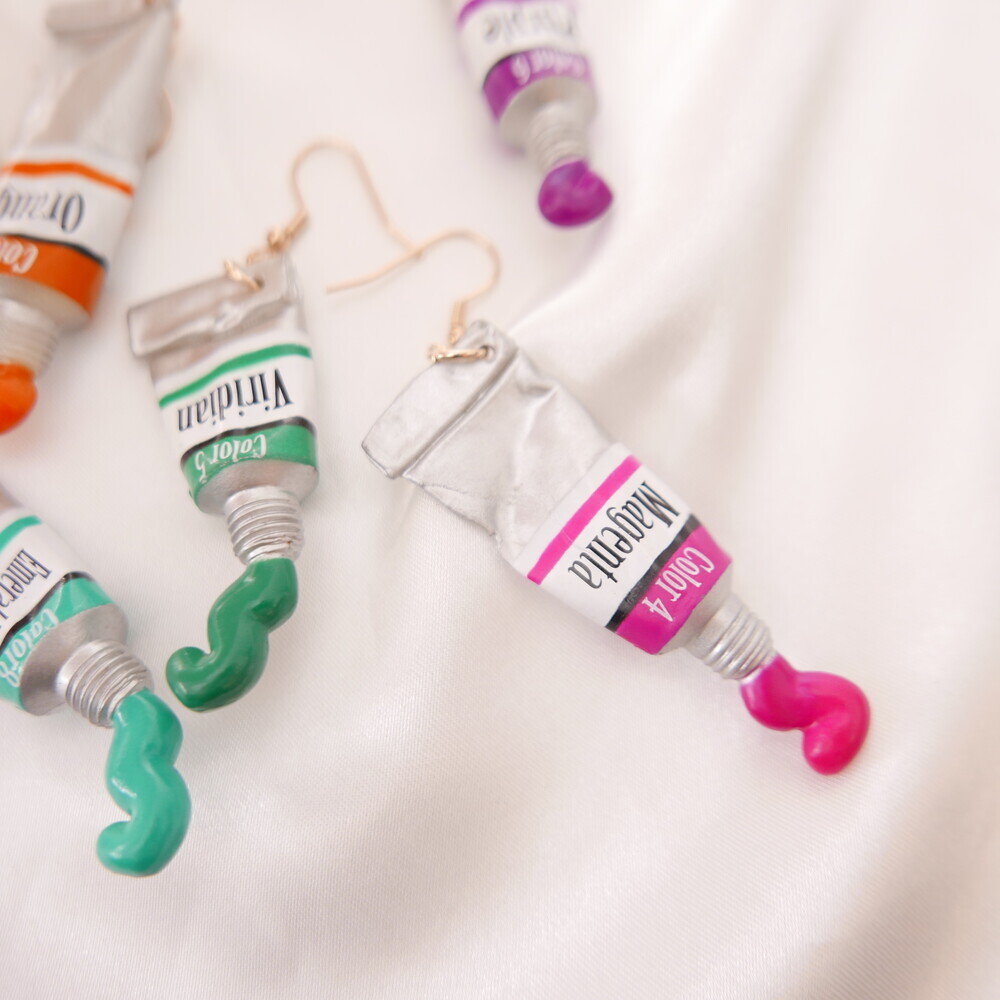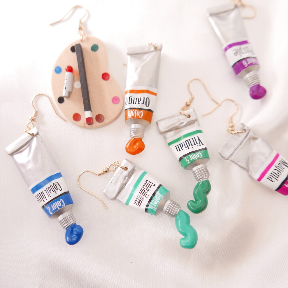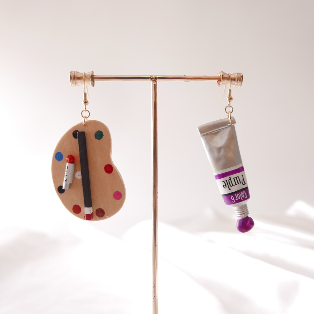 ๐จ Calling all creatives – express your inner artist with these whimsical Painting Time Earrings. Each mismatched pair features a colorful 3D paint tube and a miniature painter's palette, perfect for adding a bold, playful statement to your outfit.