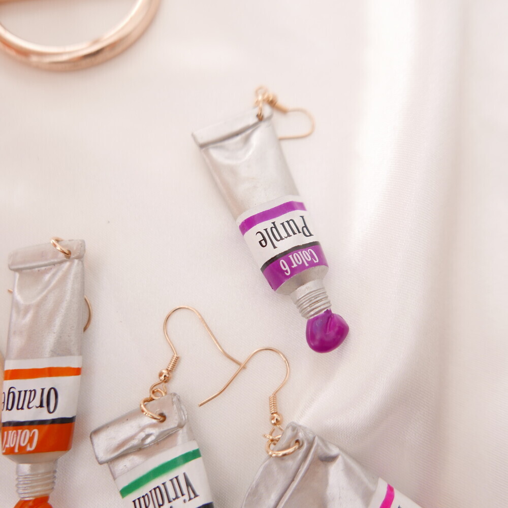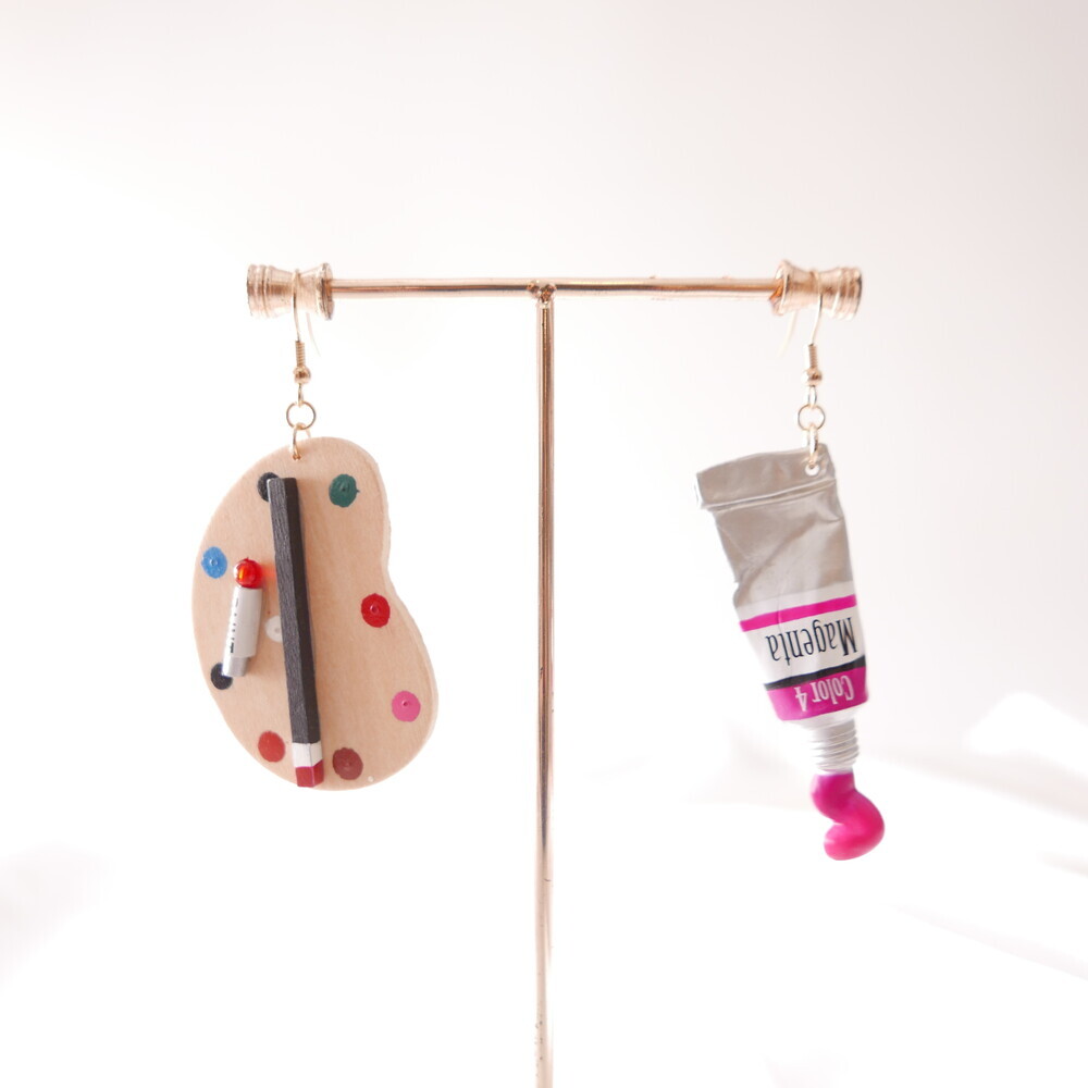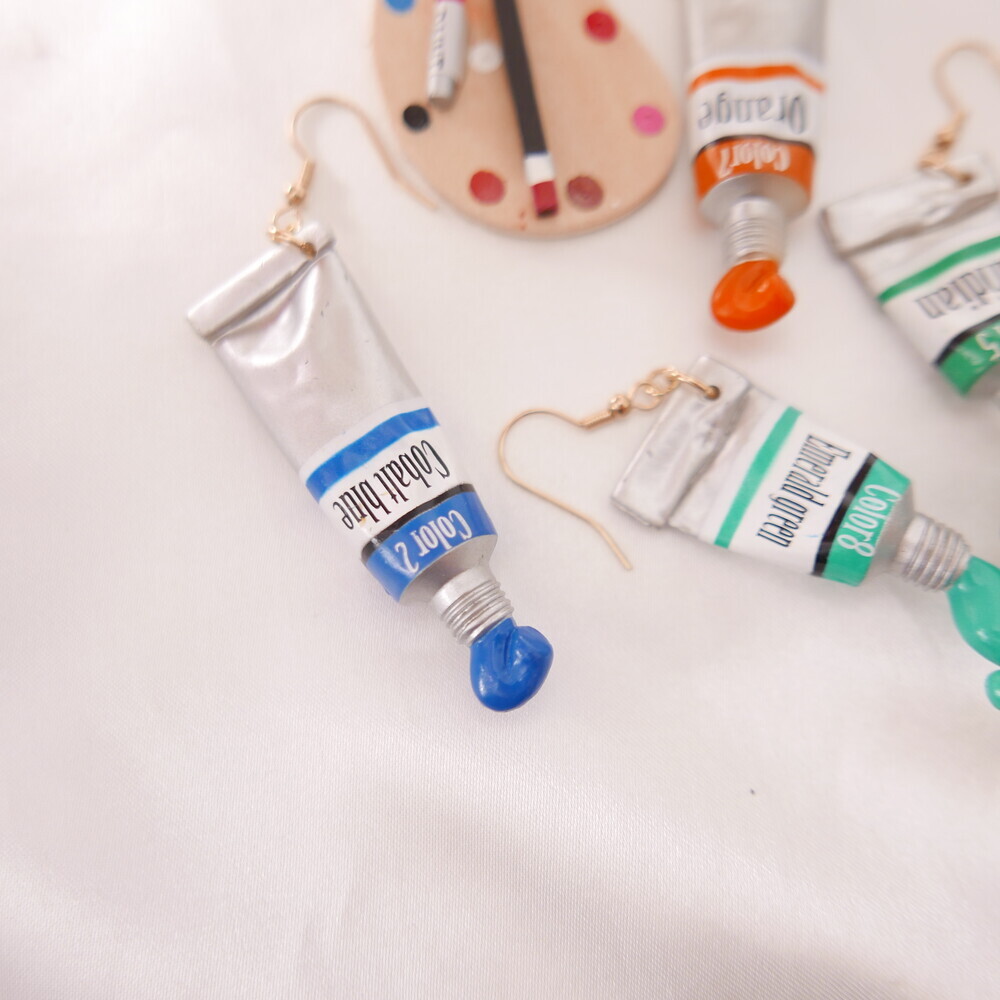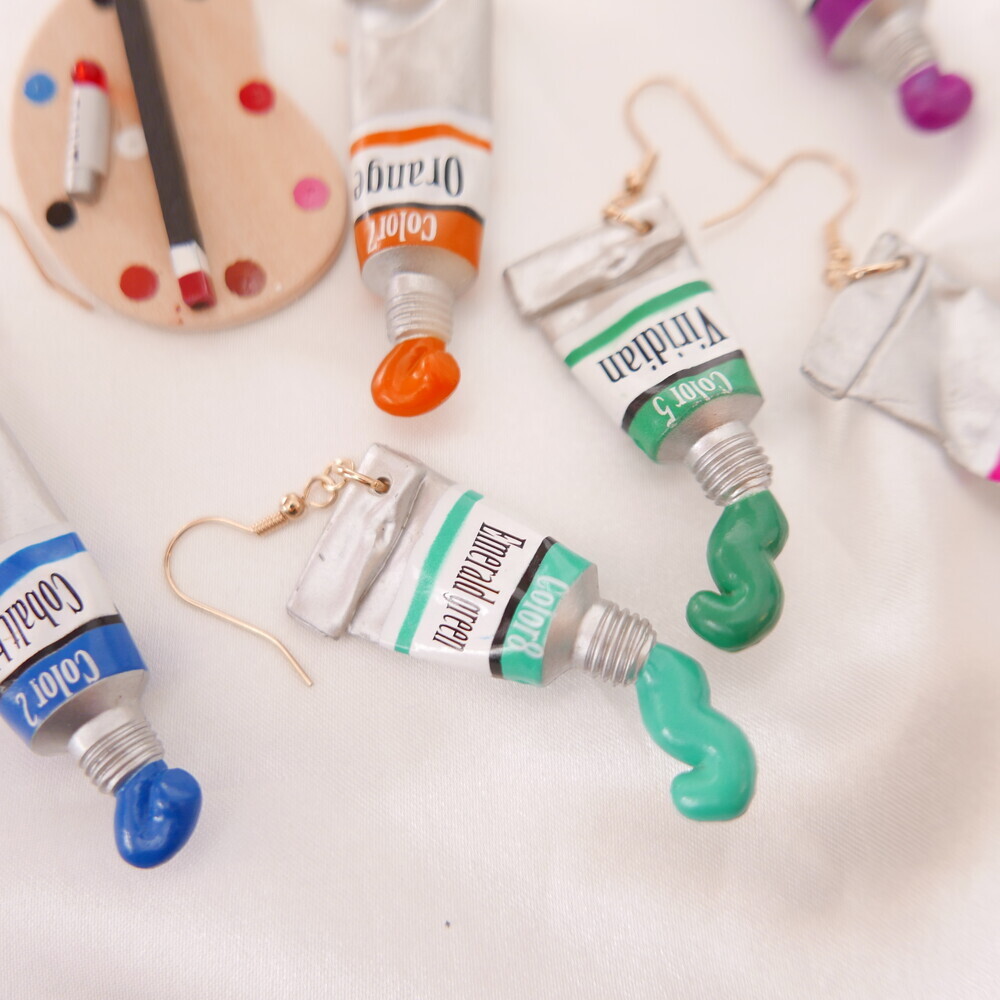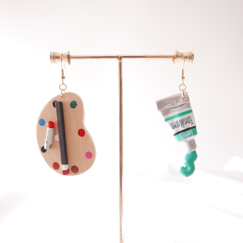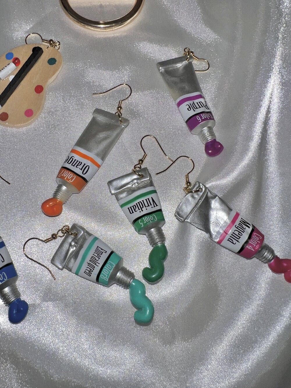 ๐จ Calling all creatives – express your inner artist with these whimsical Painting Time Earrings. Each mismatched pair features a colorful 3D paint tube and a miniature painter's palette, perfect for adding a bold, playful statement to your outfit.