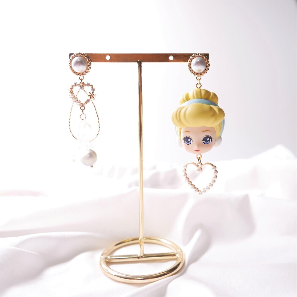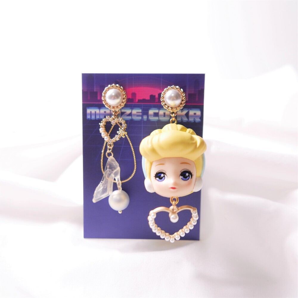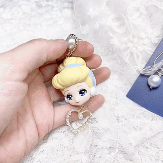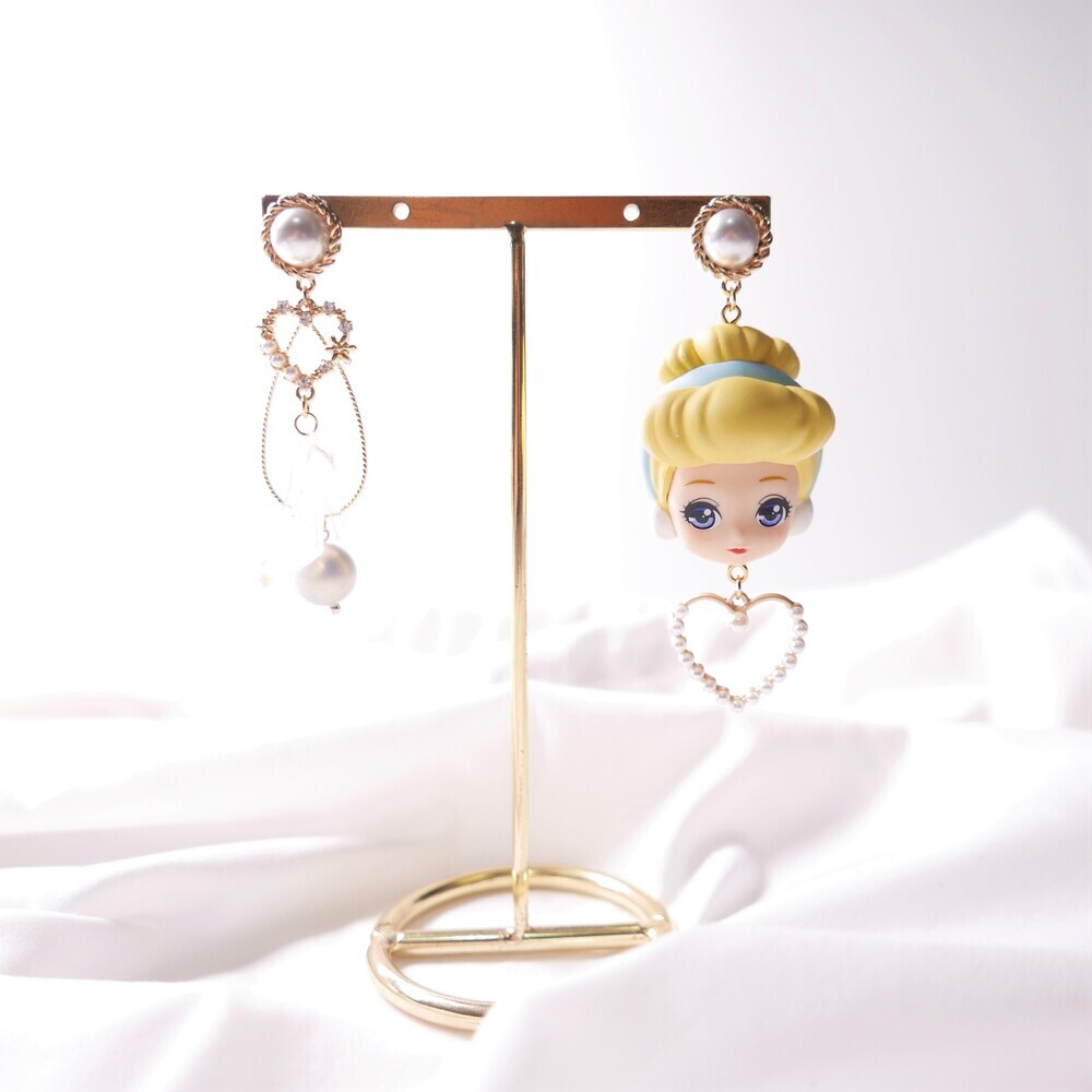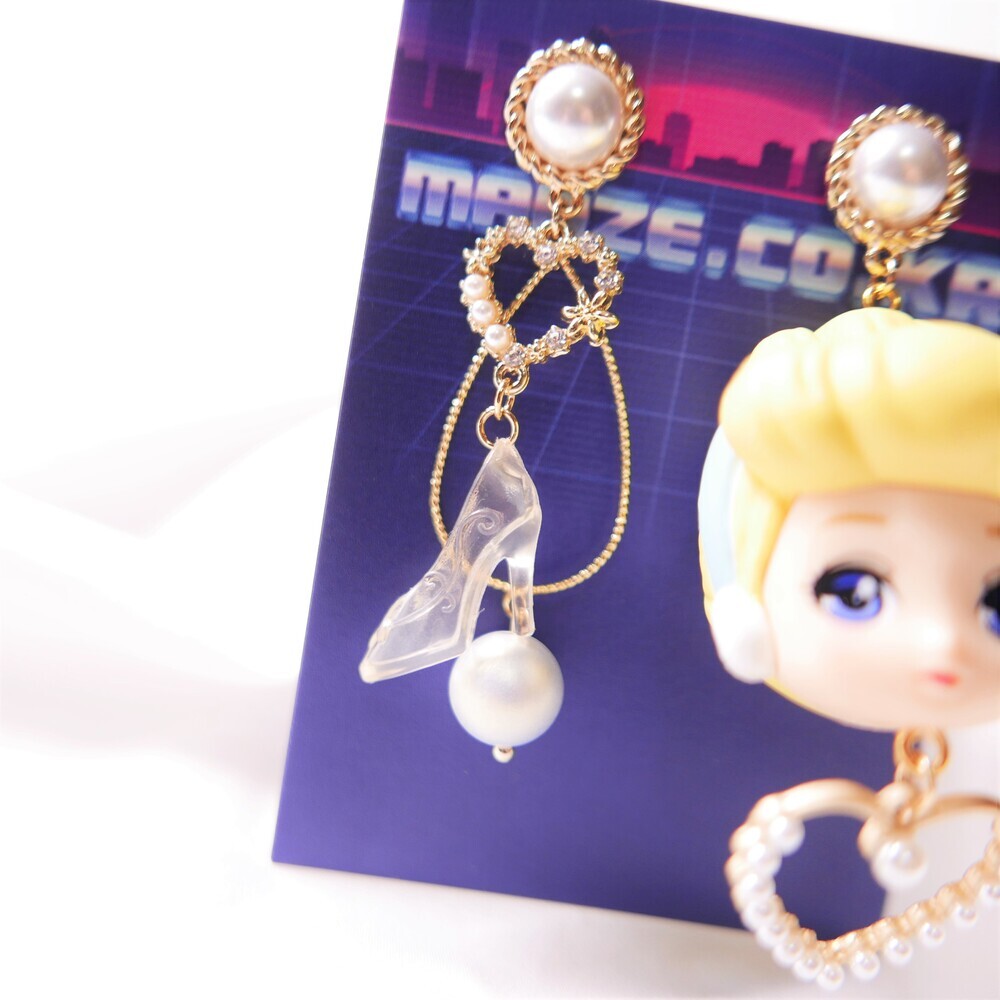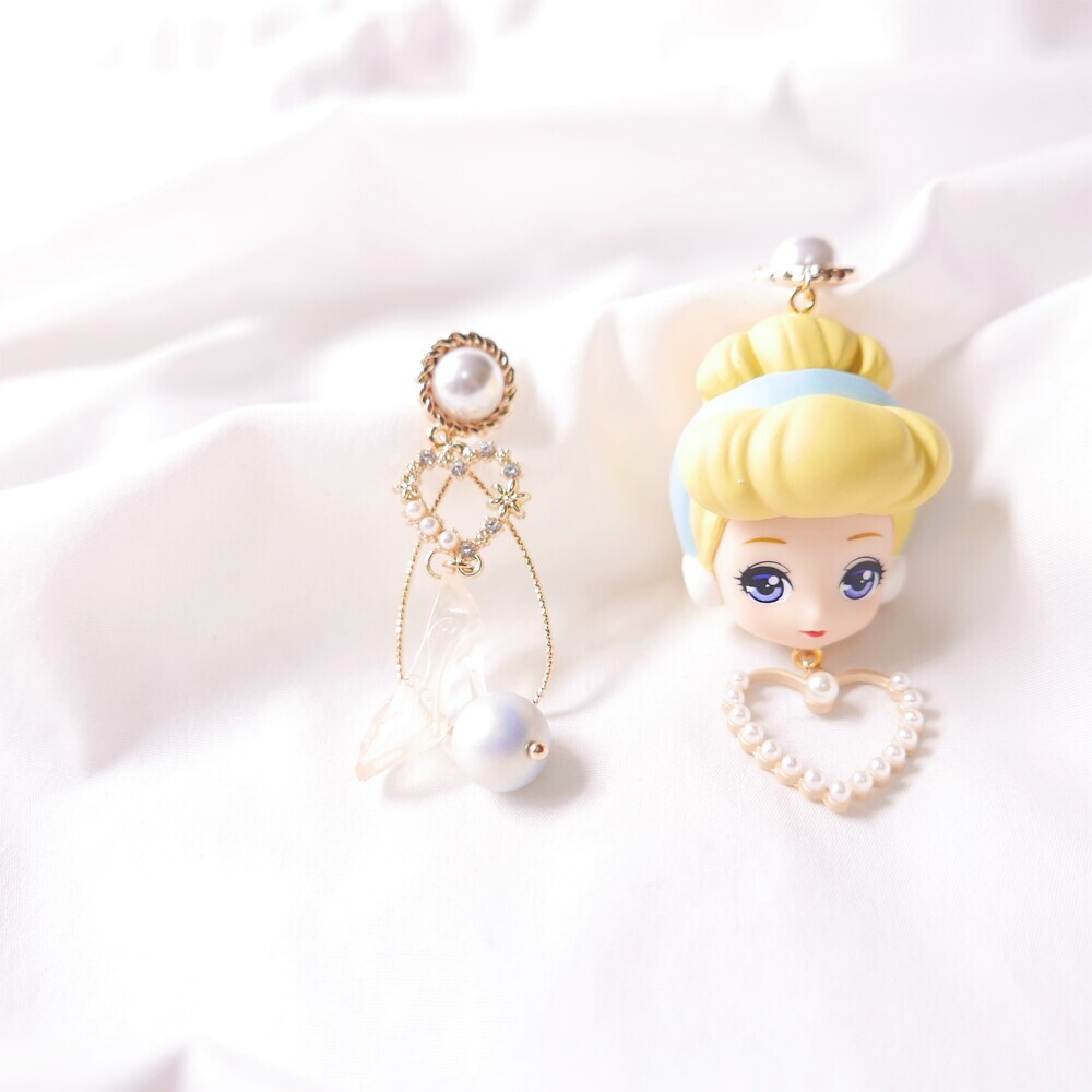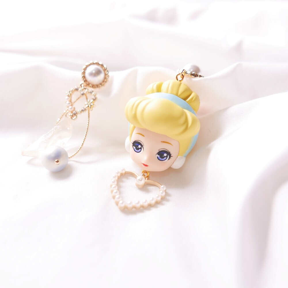 Step into a fairytale with our Cinderella Bebe Earrings. Featuring an adorable chibi-style Cinderella with her iconic blonde updo, paired with a shimmering glass slipper and elegant pearl accents. This asymmetrical set is a dreamy tribute to the classic princess, perfect for fans of storybook magic and whimsical elegance.
