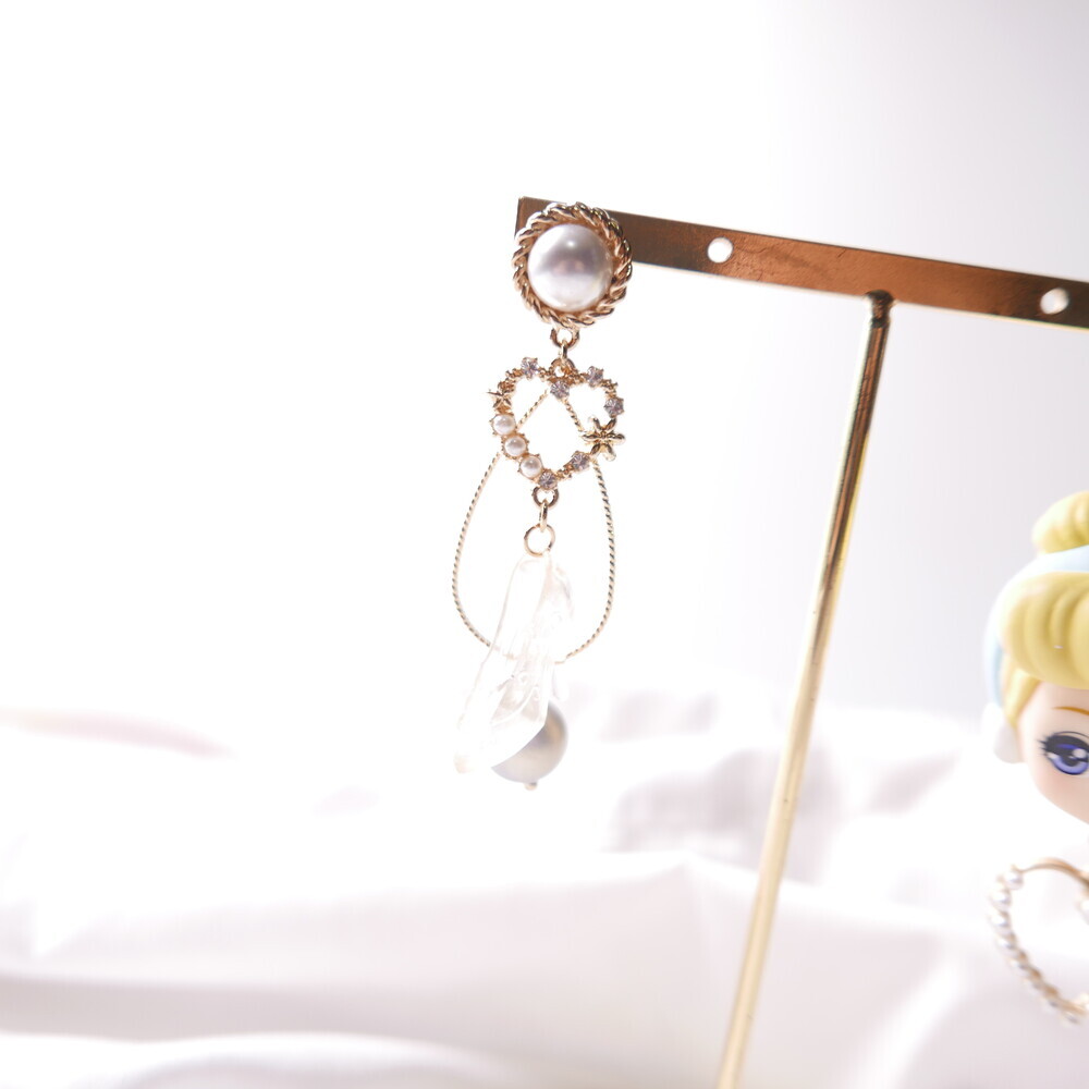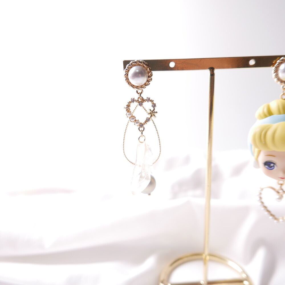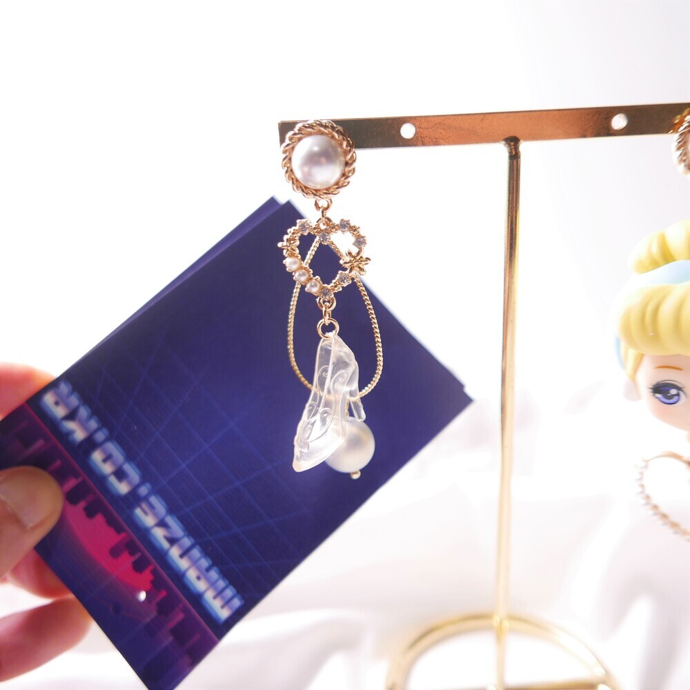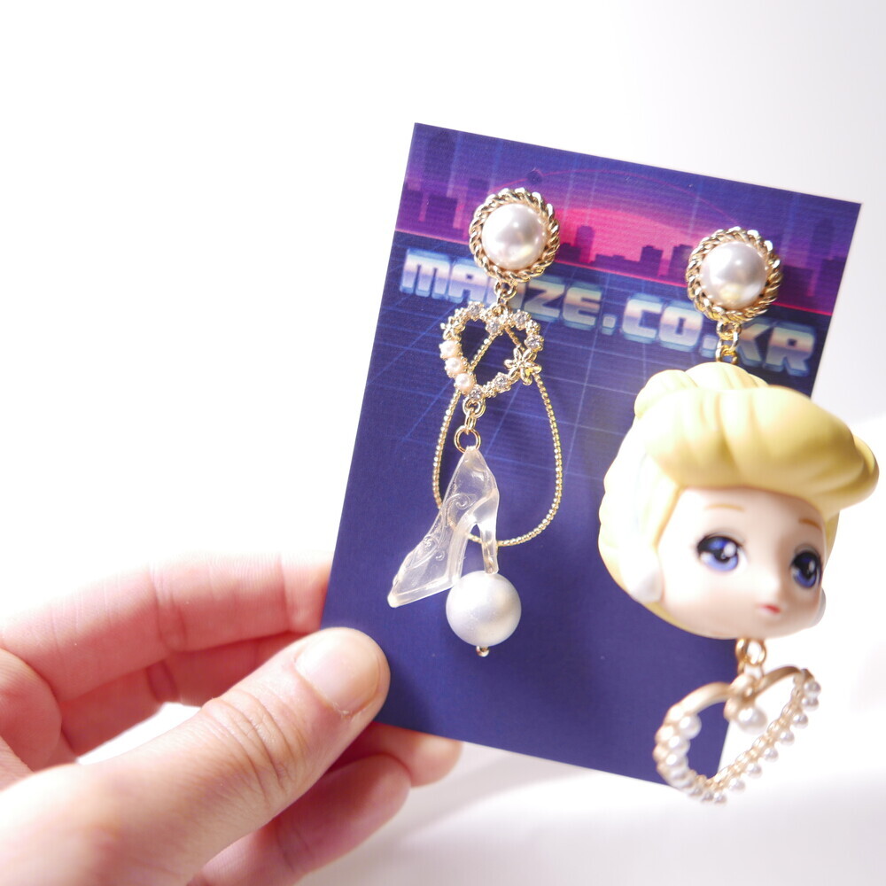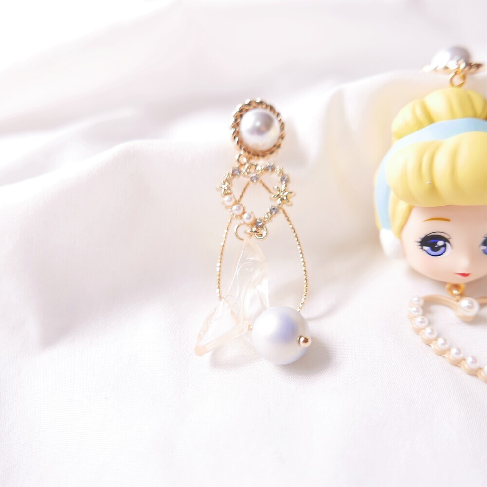 Step into a fairytale with our Cinderella Bebe Earrings. Featuring an adorable chibi-style Cinderella with her iconic blonde updo, paired with a shimmering glass slipper and elegant pearl accents. This asymmetrical set is a dreamy tribute to the classic princess, perfect for fans of storybook magic and whimsical elegance.