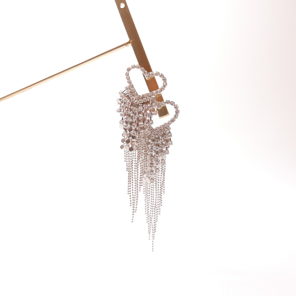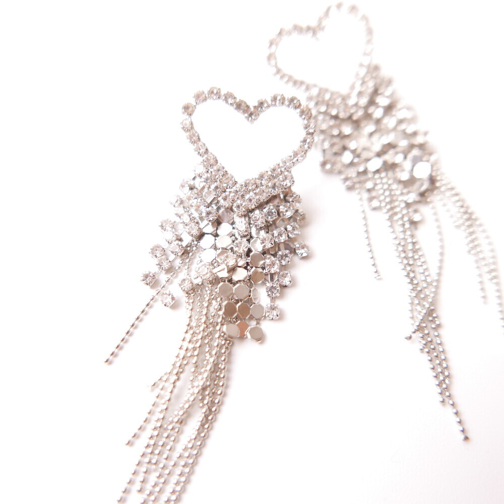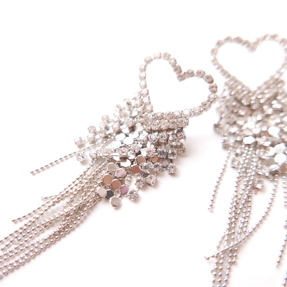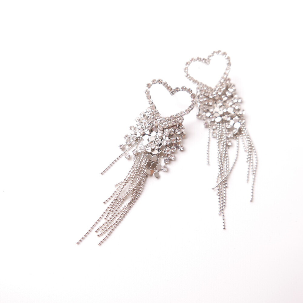 These dazzling earrings are crafted to capture attention. Featuring a sparkling heart-shaped top and cascading chains, this glamorous pair was worn by LIGHTSUM’s Nayoung and Miss Korea Global Park Naun. Made with 92.5% silver posts, they're perfect for adding flair to any look.