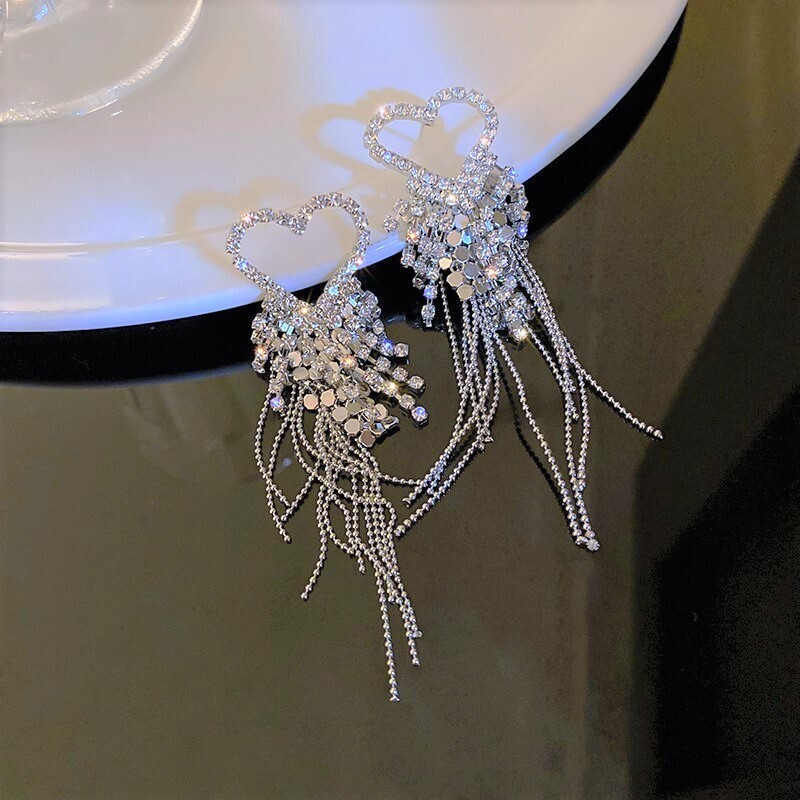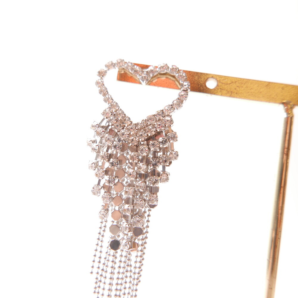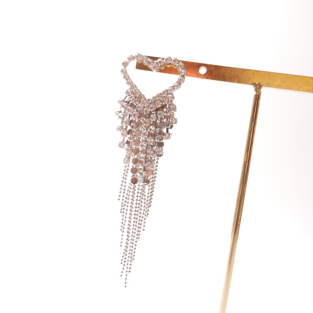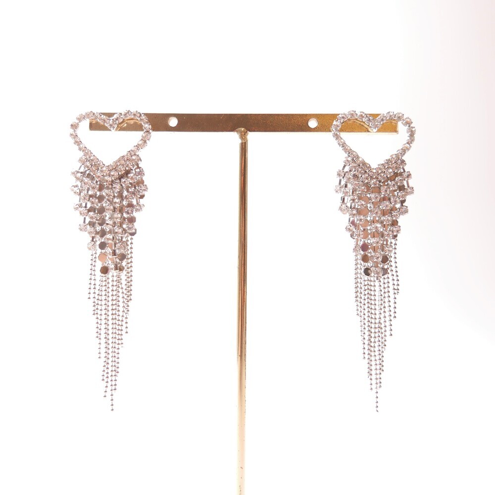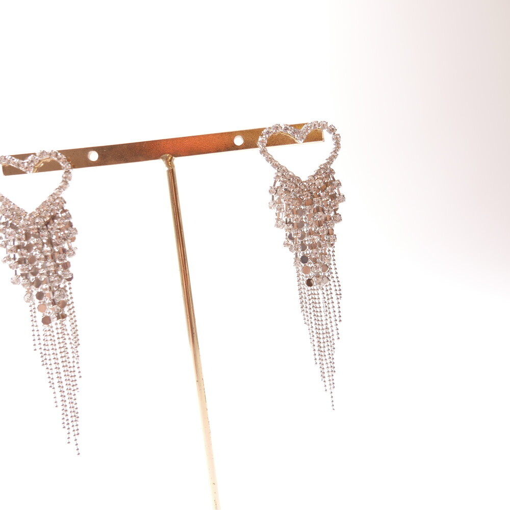 These dazzling earrings are crafted to capture attention. Featuring a sparkling heart-shaped top and cascading chains, this glamorous pair was worn by LIGHTSUM’s Nayoung and Miss Korea Global Park Naun. Made with 92.5% silver posts, they're perfect for adding flair to any look.
