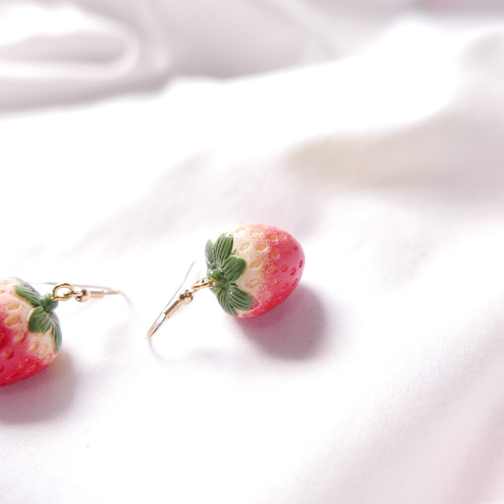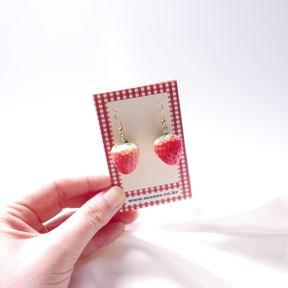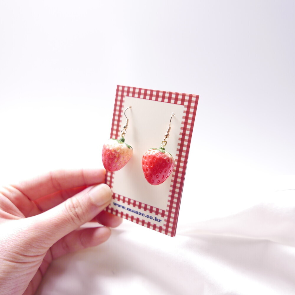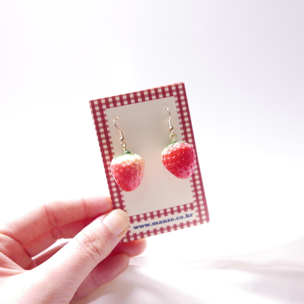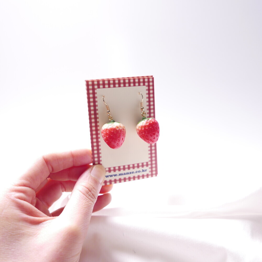 Bring a juicy pop of color to your outfit with these Real Strawberry earrings. Available in two styles: a bold gingham bow version or a clean single strawberry dangle. The glossy finish and 3D realism of the strawberries make them truly stand out. Loved by idols including Rocket Punch's Sohee and aespa's Karina, these earrings are perfect for adding a cute, standout touch to your everyday or special occasion looks.