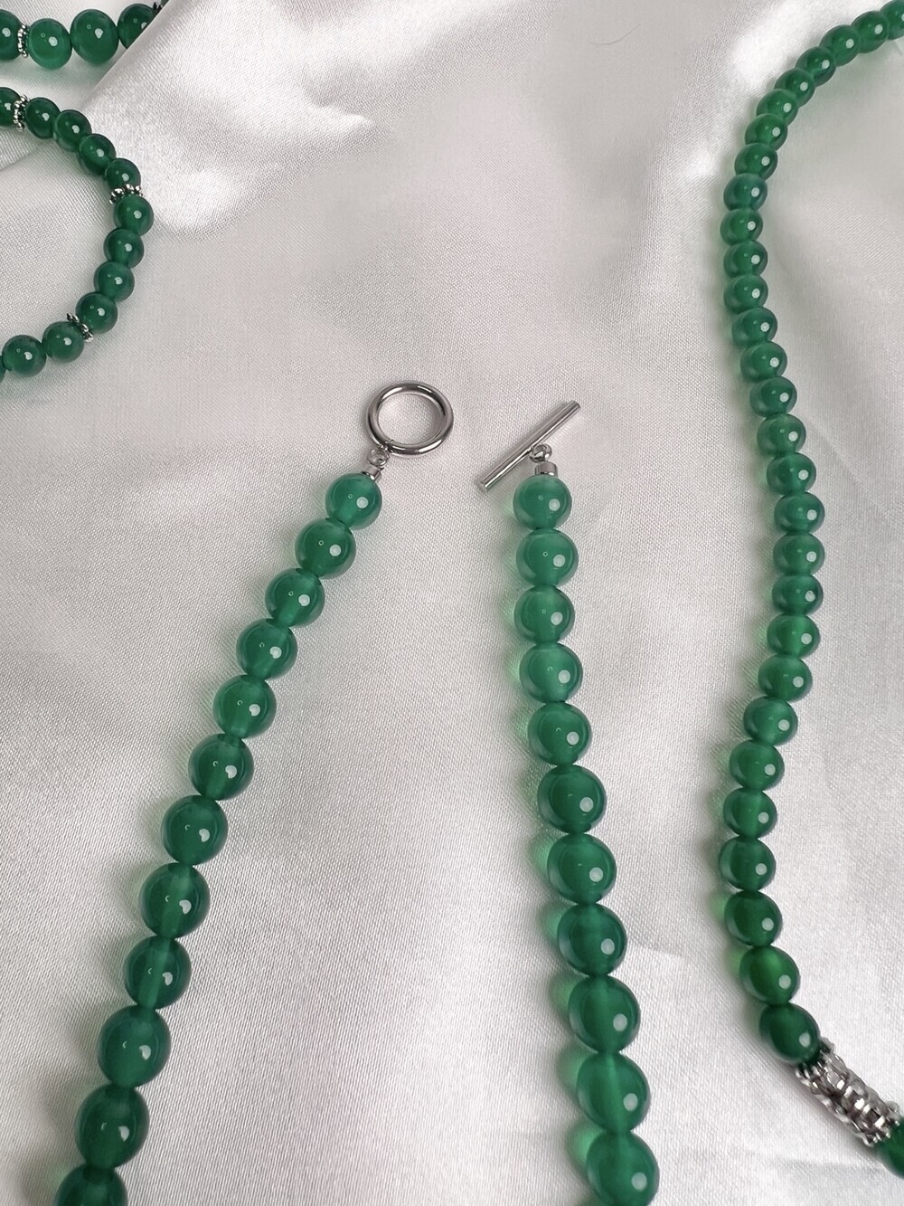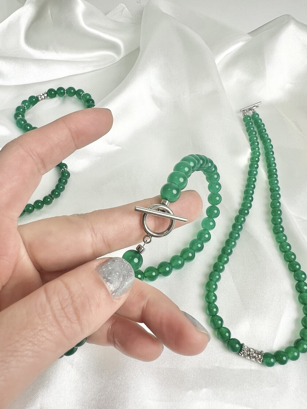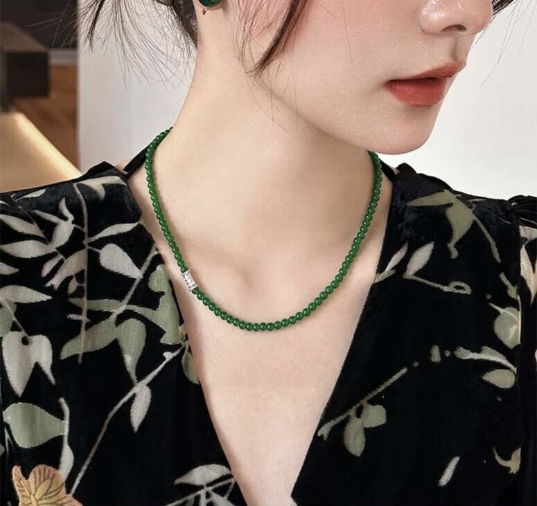 With its vintage green tone and mystical translucency, this gemstone necklace brightens your skin and adds a unique touch to any outfit.