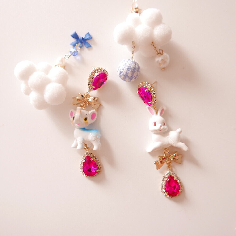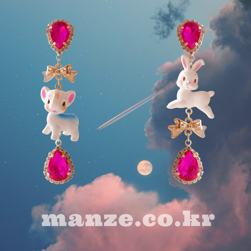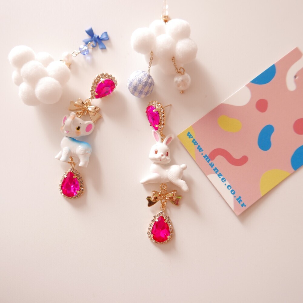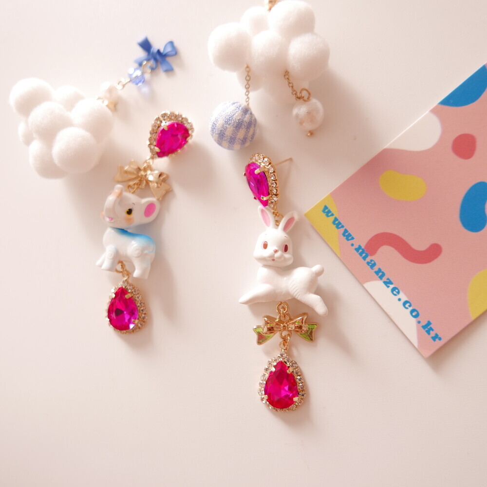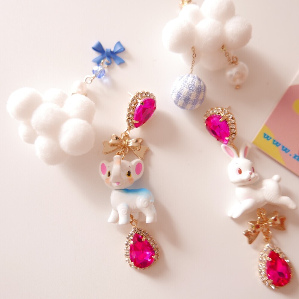 These charming Cocory & Toto earrings feature a playful bunny and puppy duo, paired with sparkly teardrop crystals and mini gold bows for extra sweetness. The vibrant pink tones and whimsical characters make this pair a statement piece for lovers of dreamy, fairytale fashion. Made with hypoallergenic silver 92.5% posts, these are perfect for sensitive ears too!
