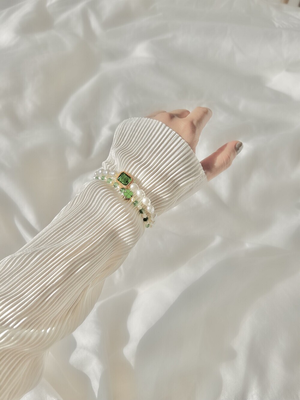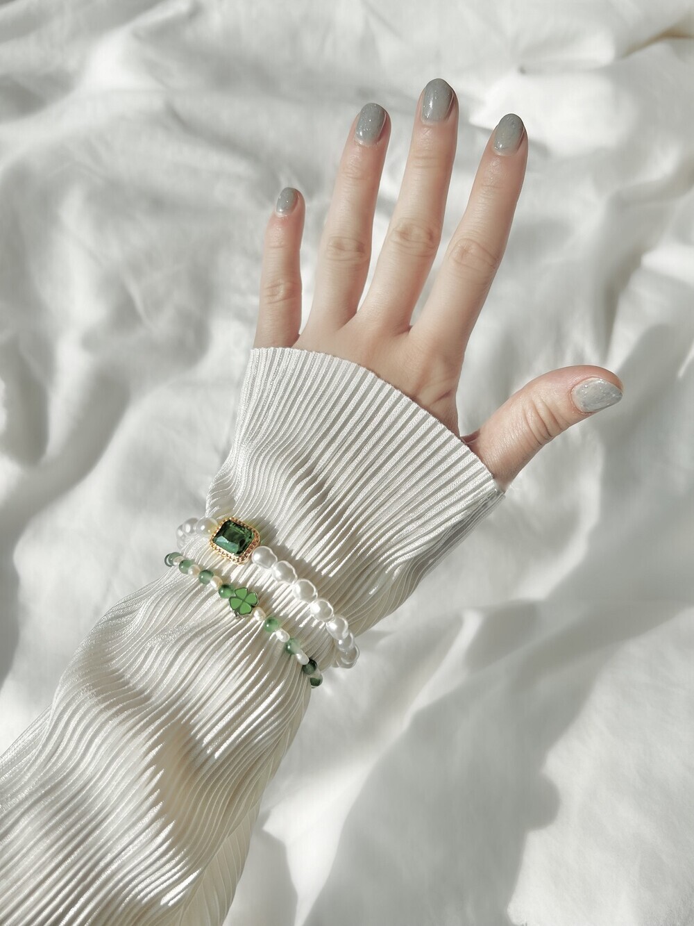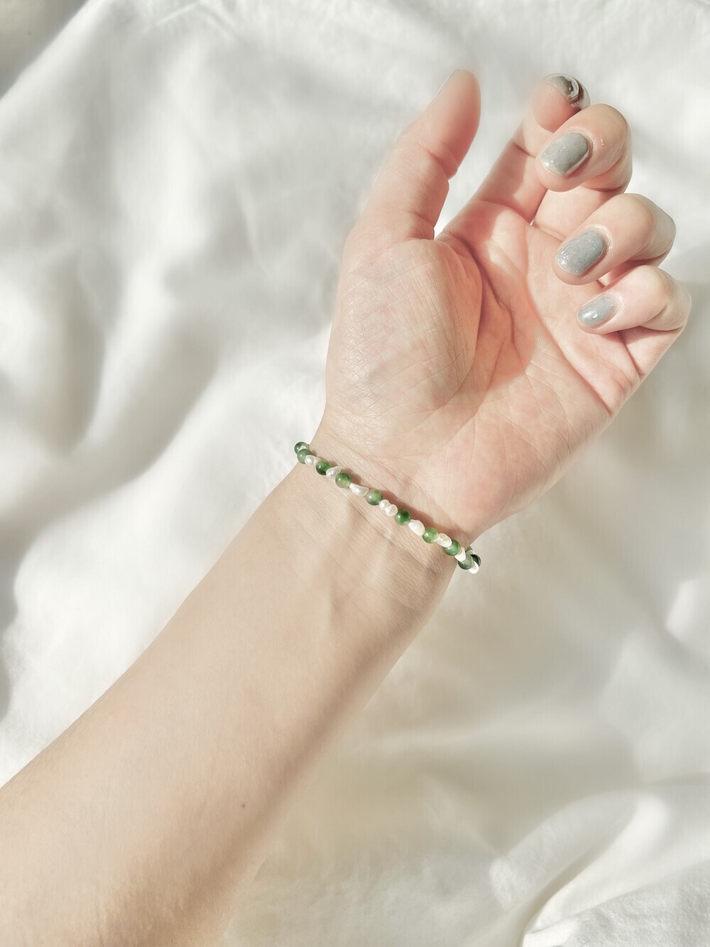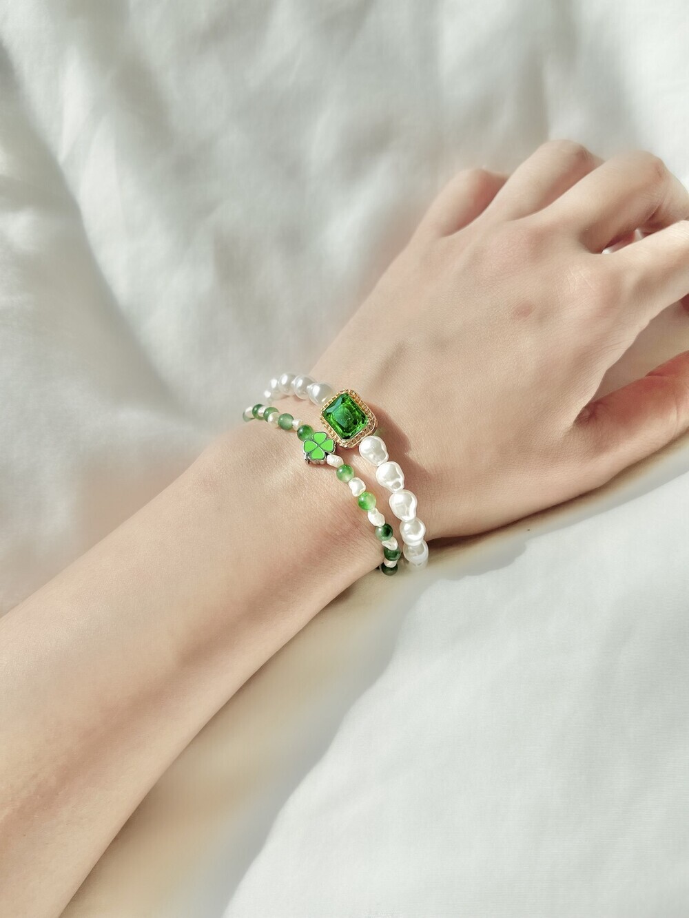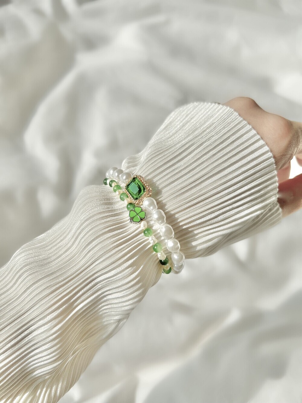 The Oh! Lucky! Bracelet combines luminous freshwater pearls with soft natural jade beads in a soothing palette. At the center sits a four-leaf clover for a charming, lucky finish. Comfortable and elastic, this piece is easy to wear and comes in multiple sizes. Ideal for stacking or wearing on its own for a subtle pop of color.