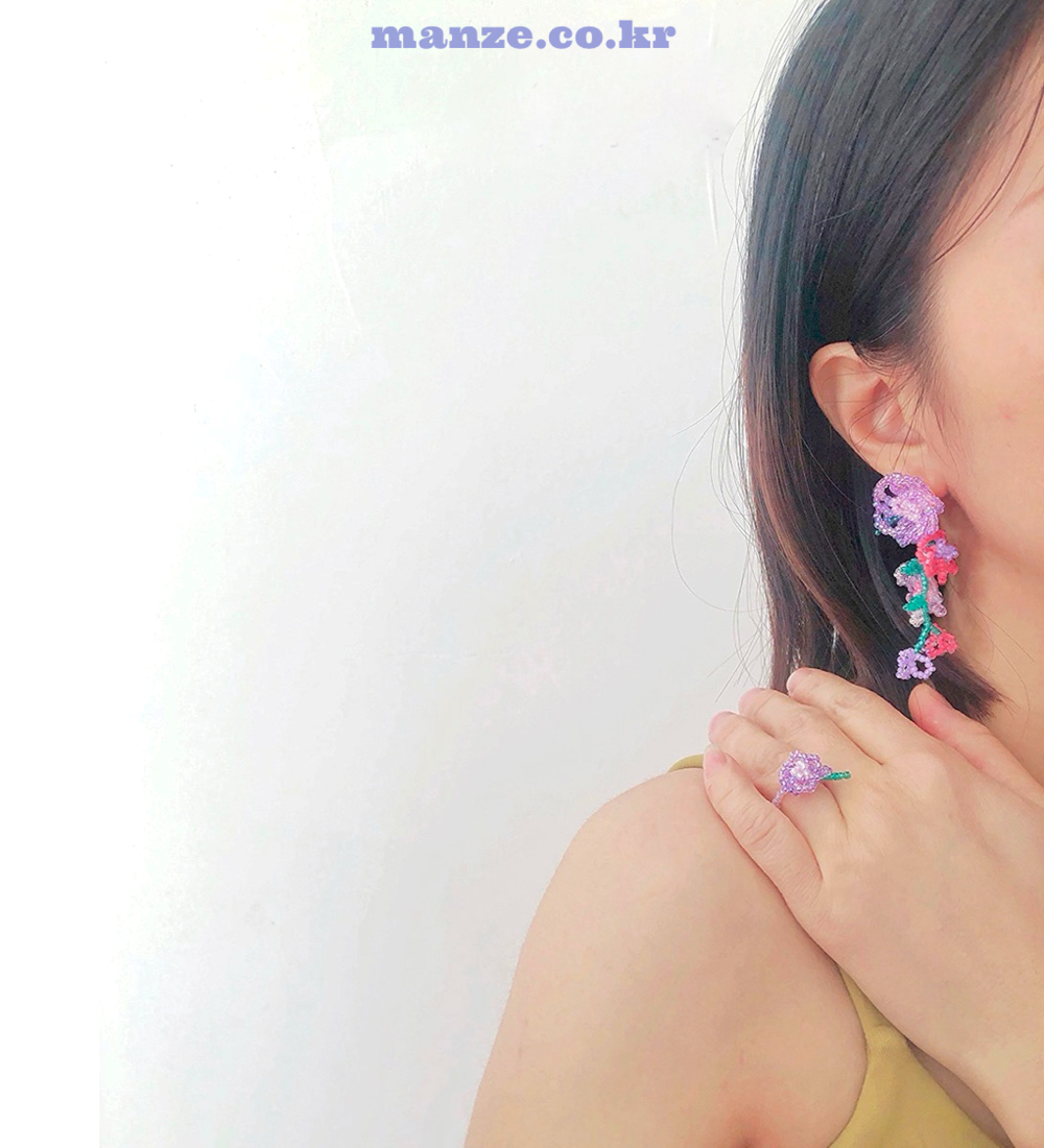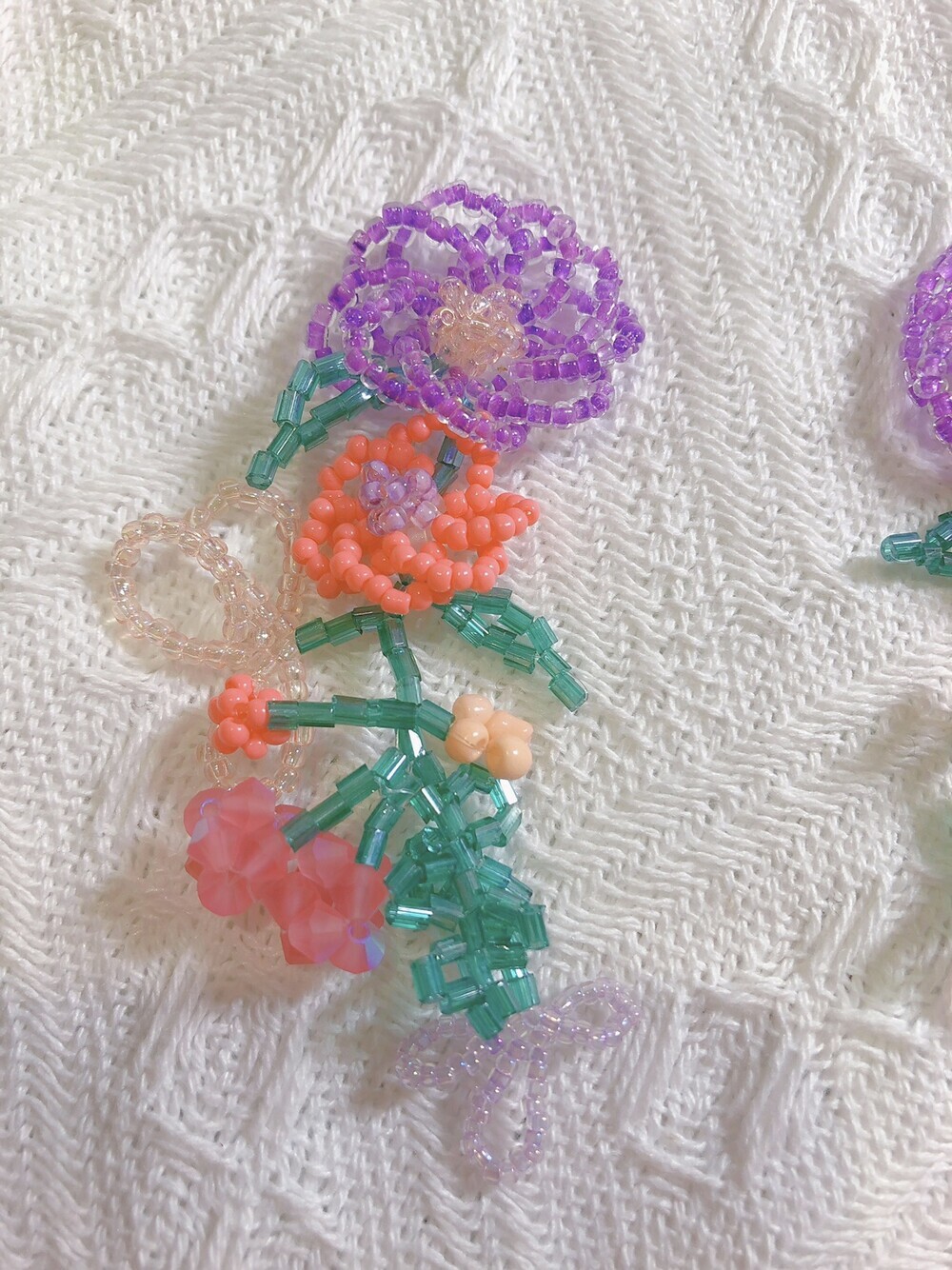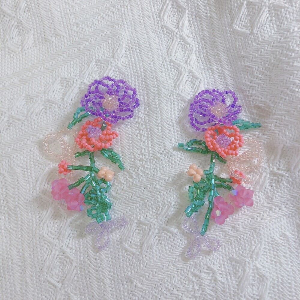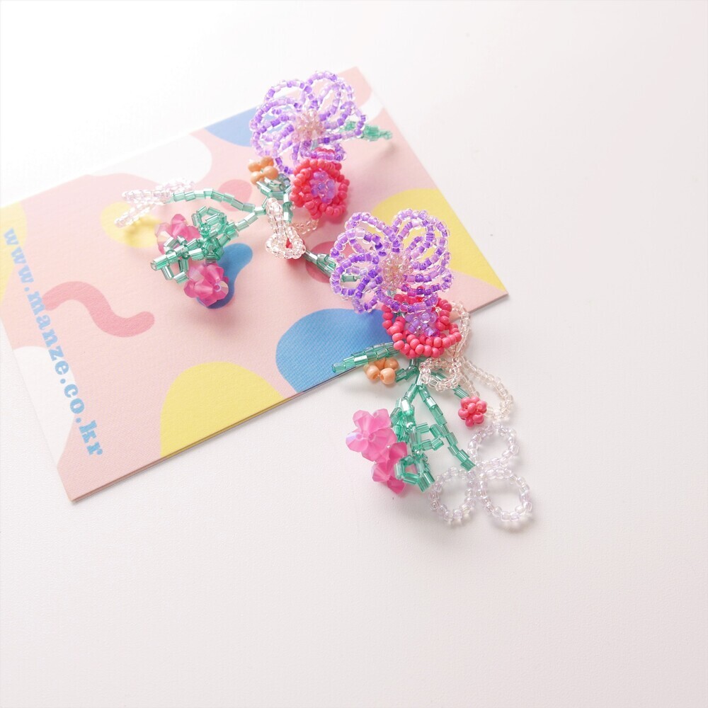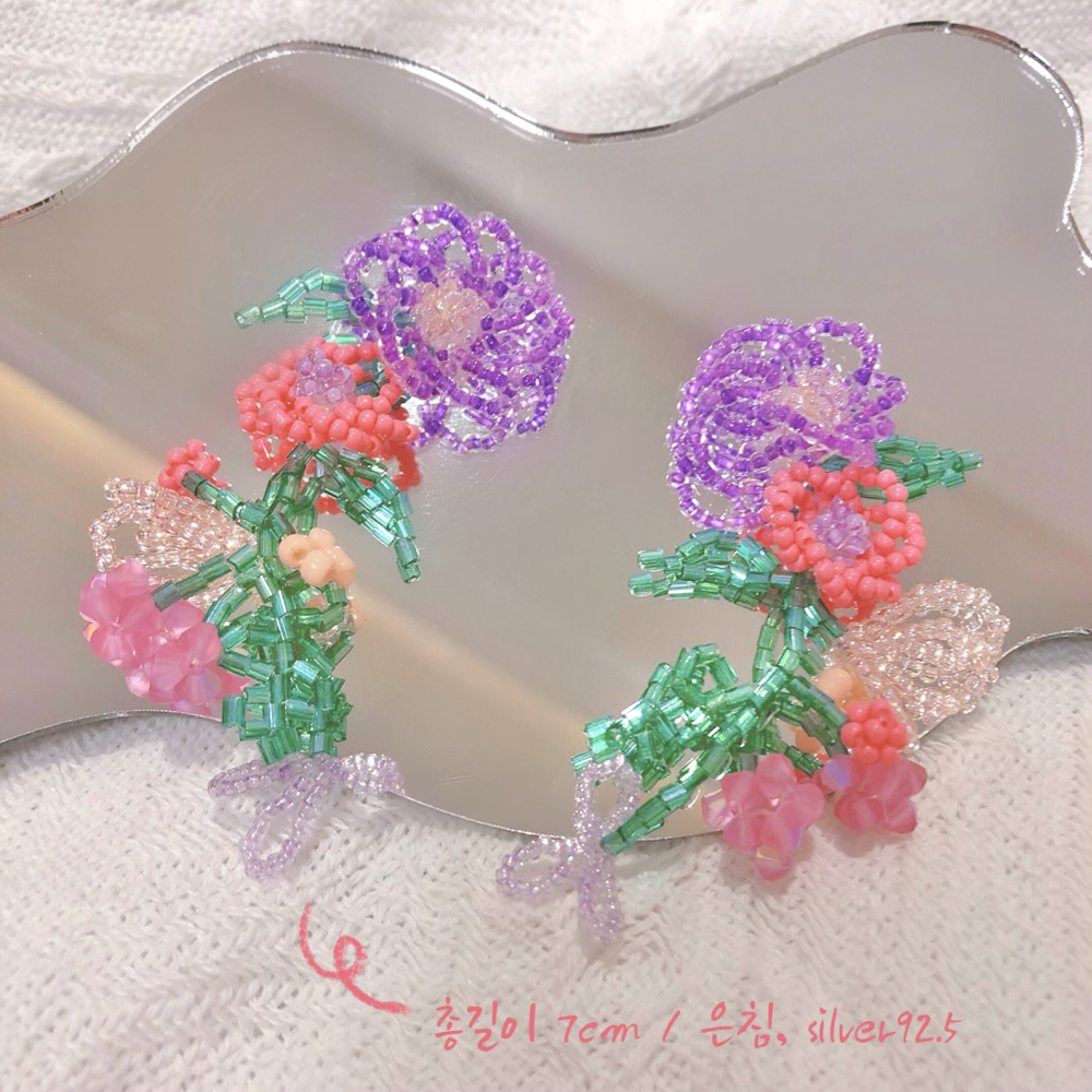 A vibrant celebration of spring in full bloom. These floral earrings are delicately handcrafted using neon-colored seed beads and crystal-like elements. Featuring violet, coral, and blush blossoms with glistening green stems, each earring is a miniature garden. Light, colorful, and eye-catching — ideal for artistic, playful styles. Made with silver 92.5% posts.
