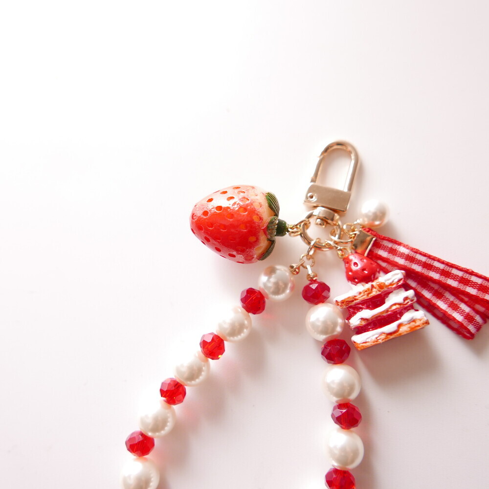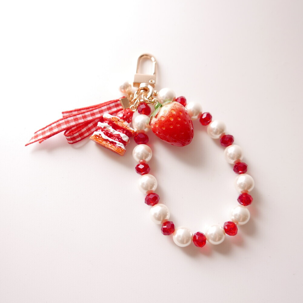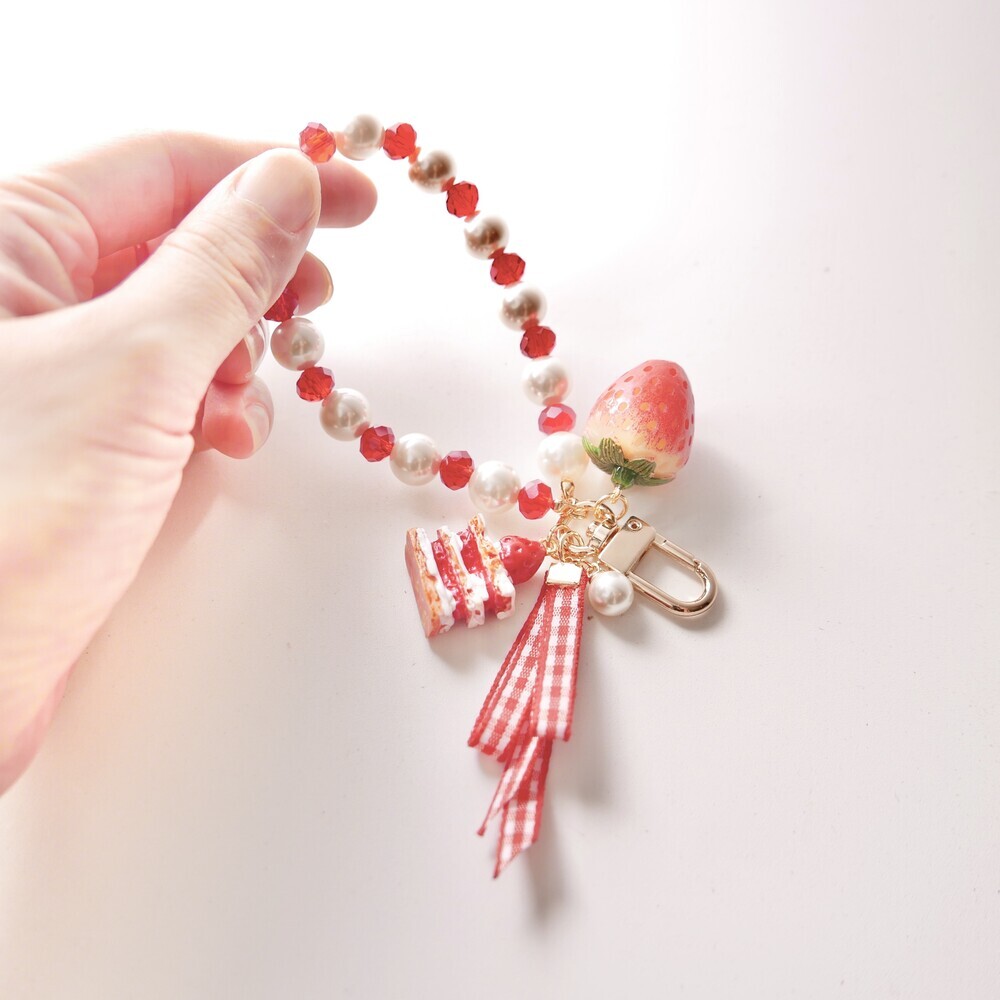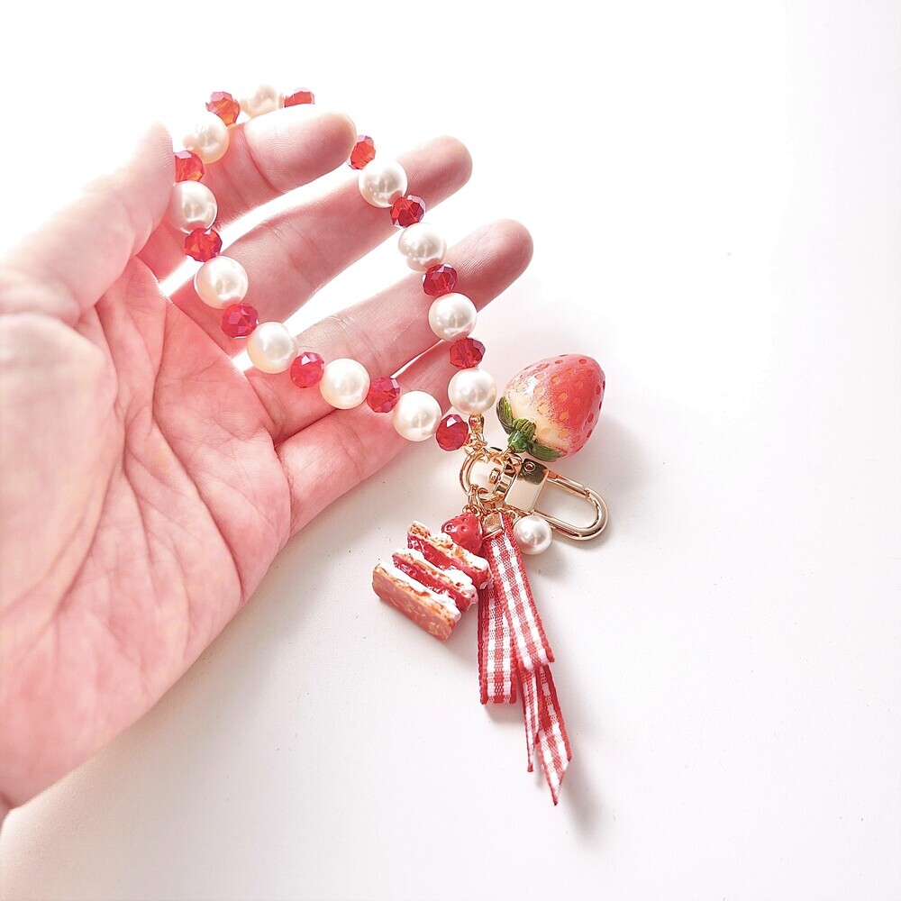 This Strawberry Buffet keyring is both cute and versatile! Featuring a delightful strawberry and strawberry cake charm, this piece shines with premium A-grade crystals and elegant pearls. The stretchable strap can be used as a keyring, bag charm, or even as a bracelet, making it perfect for accessorizing your purse, tote, or backpack. A sweet and practical piece you’ll love to carry.