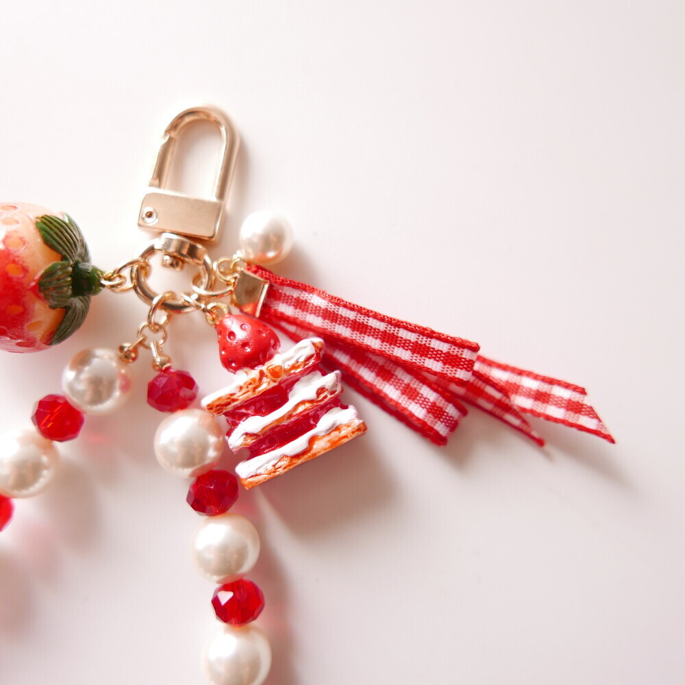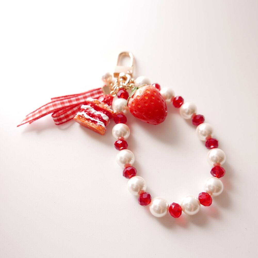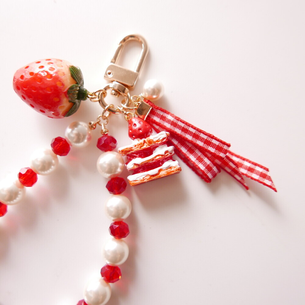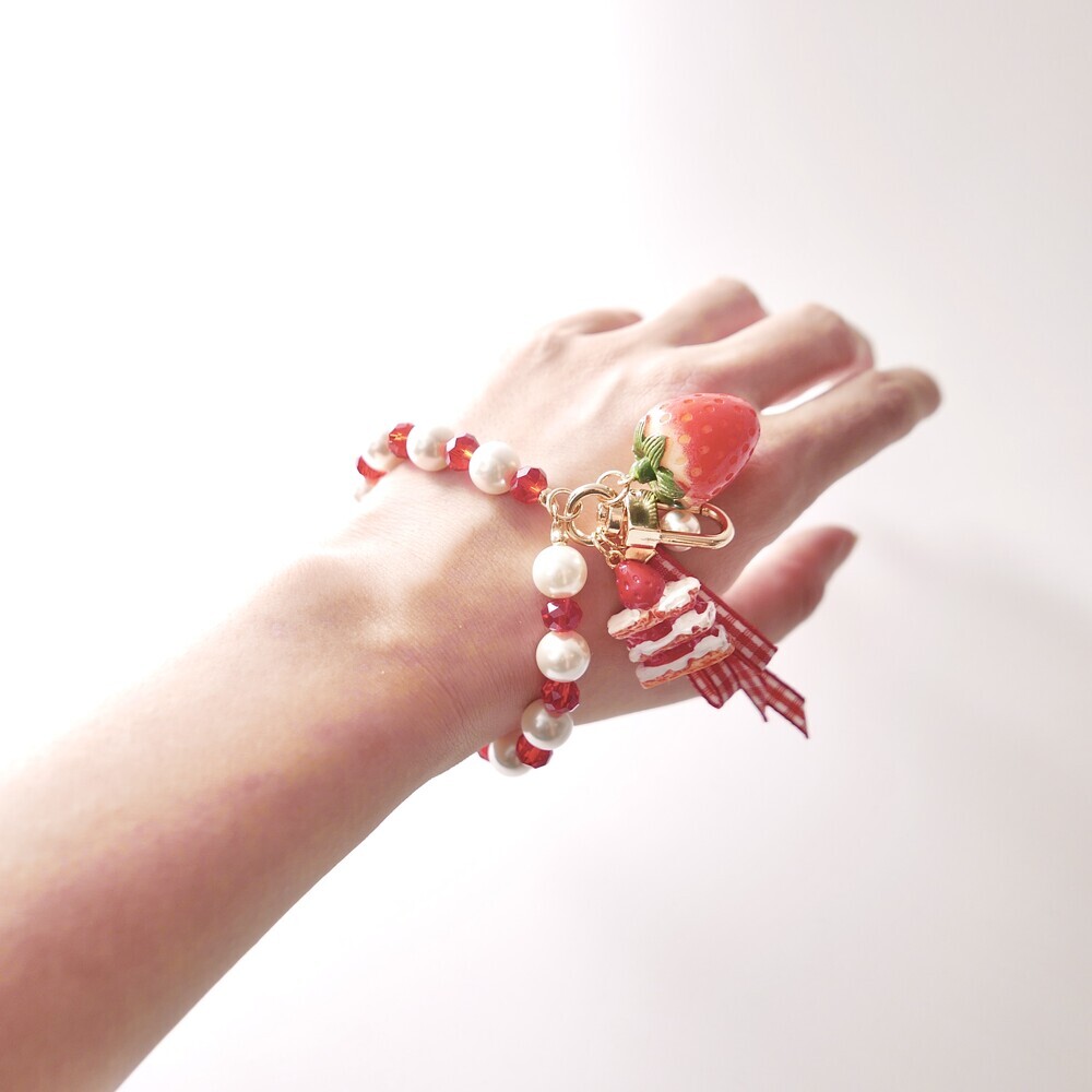 This Strawberry Buffet keyring is both cute and versatile! Featuring a delightful strawberry and strawberry cake charm, this piece shines with premium A-grade crystals and elegant pearls. The stretchable strap can be used as a keyring, bag charm, or even as a bracelet, making it perfect for accessorizing your purse, tote, or backpack. A sweet and practical piece you’ll love to carry.