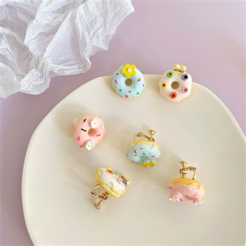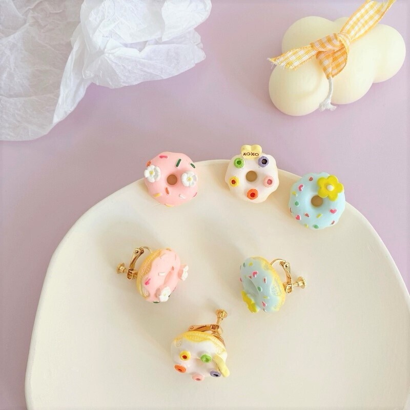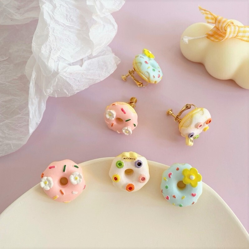 Add a sprinkle of fun to your outfit with these irresistibly cute donut earrings! Available in three delicious designs, Froot Loops, Strawberry, and Melon, each piece features colorful toppings, flower or heart accents, and a pastel color base that screams sweet style. Playful yet wearable, they’re the perfect accessory for dessert lovers and fans of kawaii fashion.