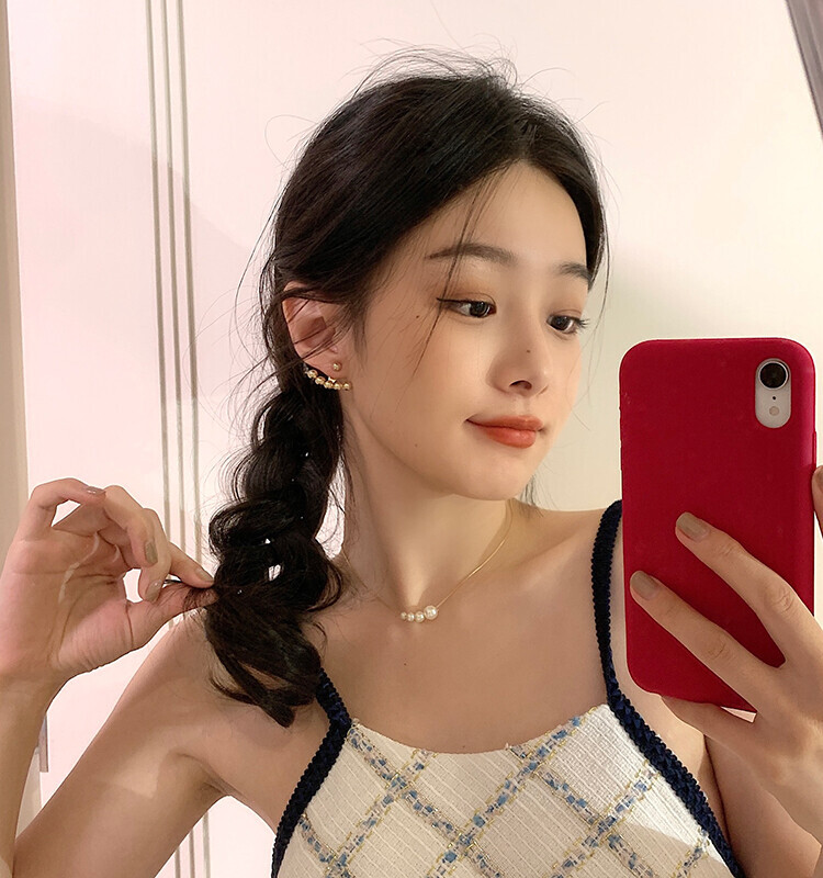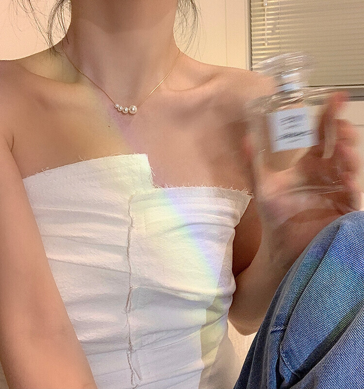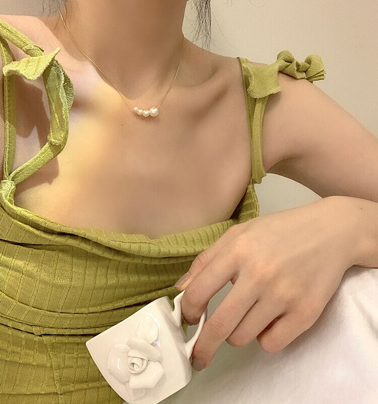A delicate necklace that highlights your neckline with a minimalist pearl arrangement. Featuring four lustrous pearls on a slim, flat silver chain, this piece offers everyday elegance with timeless appeal. Crafted entirely from silver 92.5% — from the chain to the clasp.