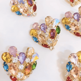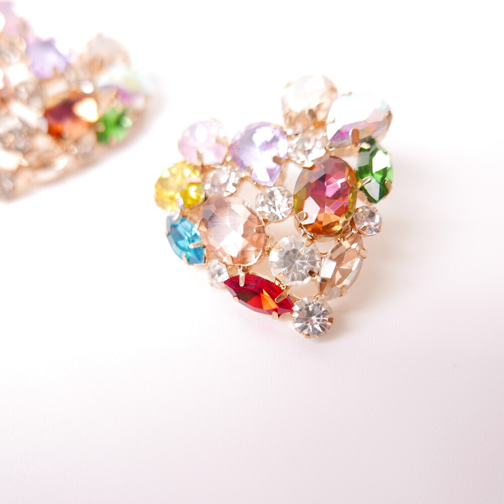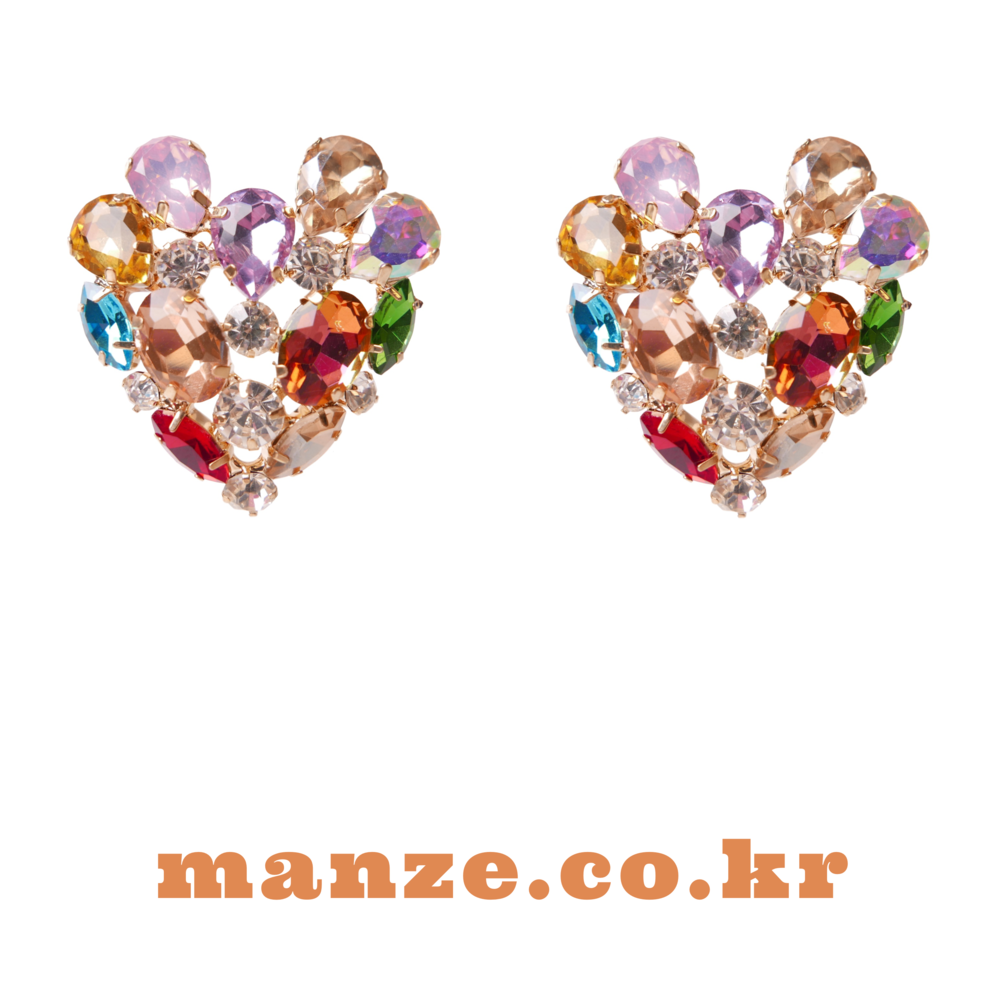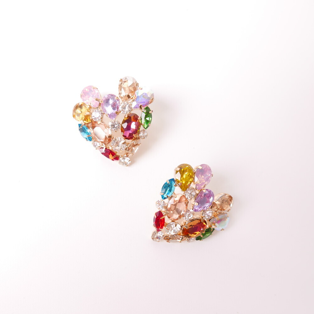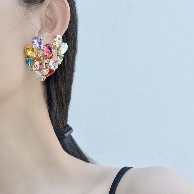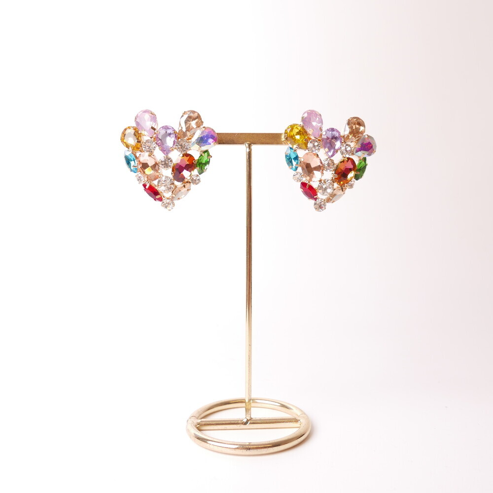 These vibrant earrings look like a treasure chest of sweets straight from Willy Wonka’s factory. Crafted in a striking clustered heart shape, each gem is uniquely colored and set in layers to catch the light from every angle.A playful and bold piece that adds instant magic and whimsy to your look.