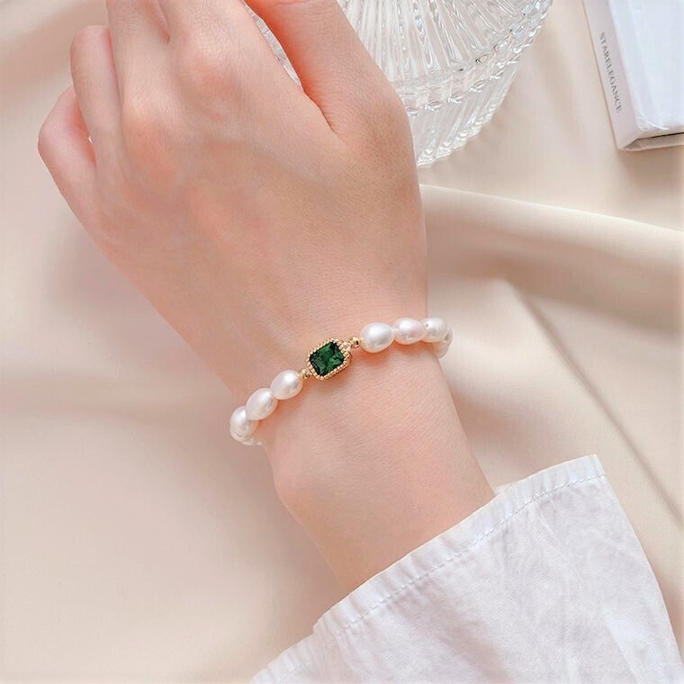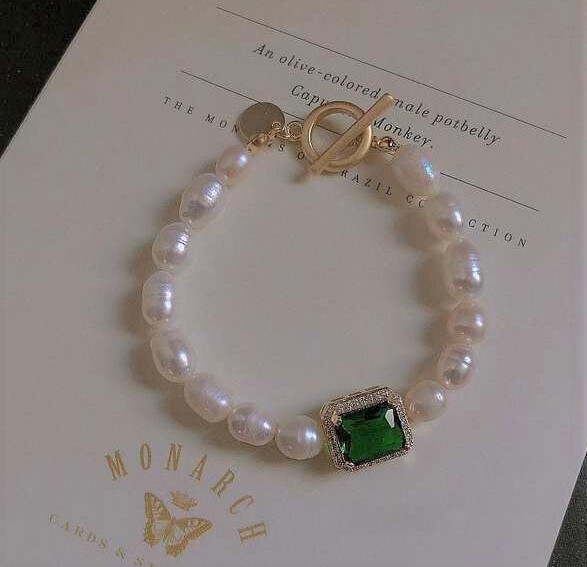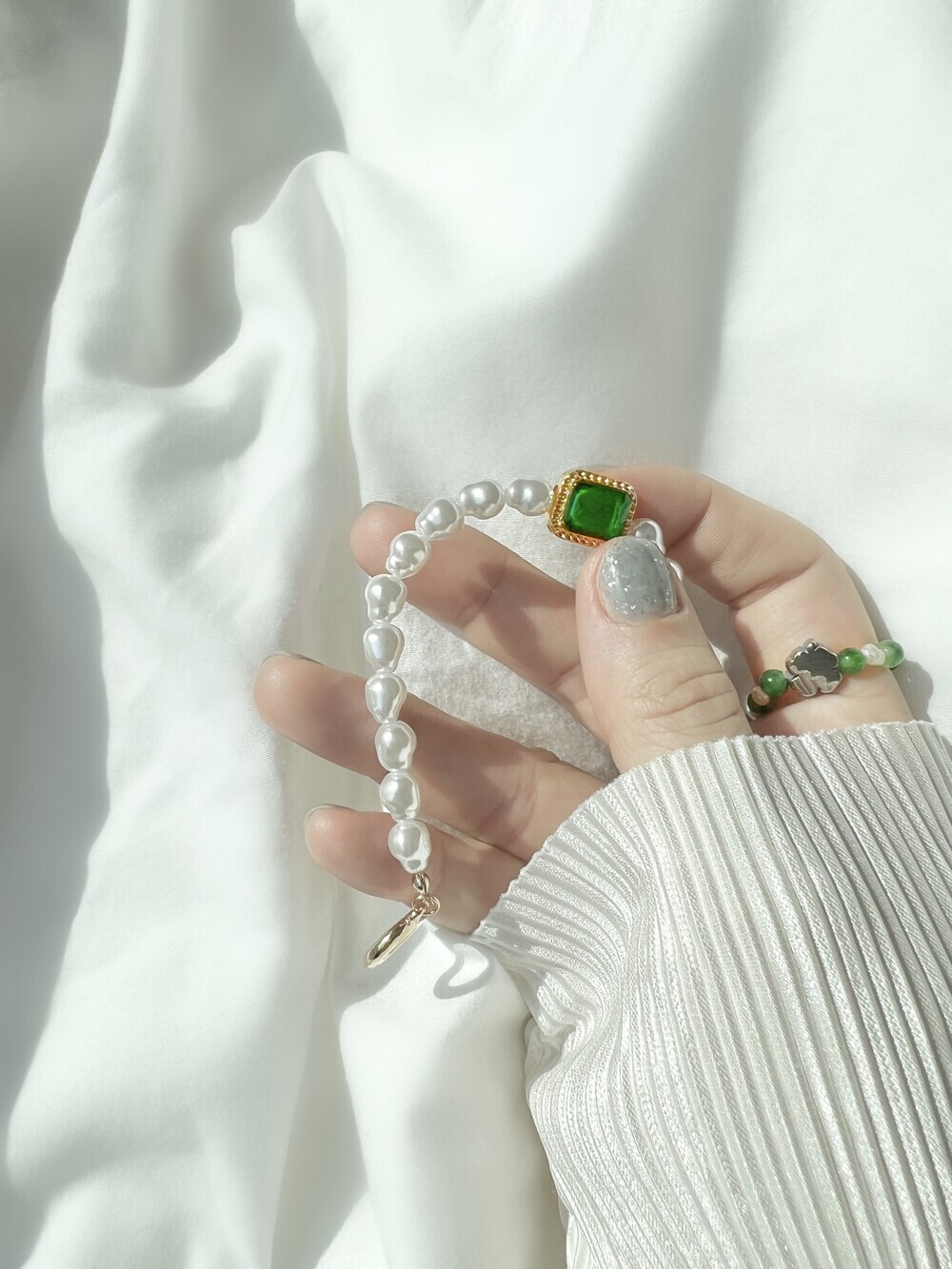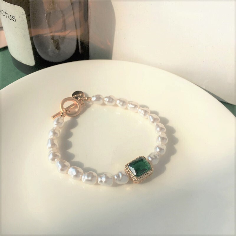 ๐Green Gem & Freshwater Pearl Bracelet๐