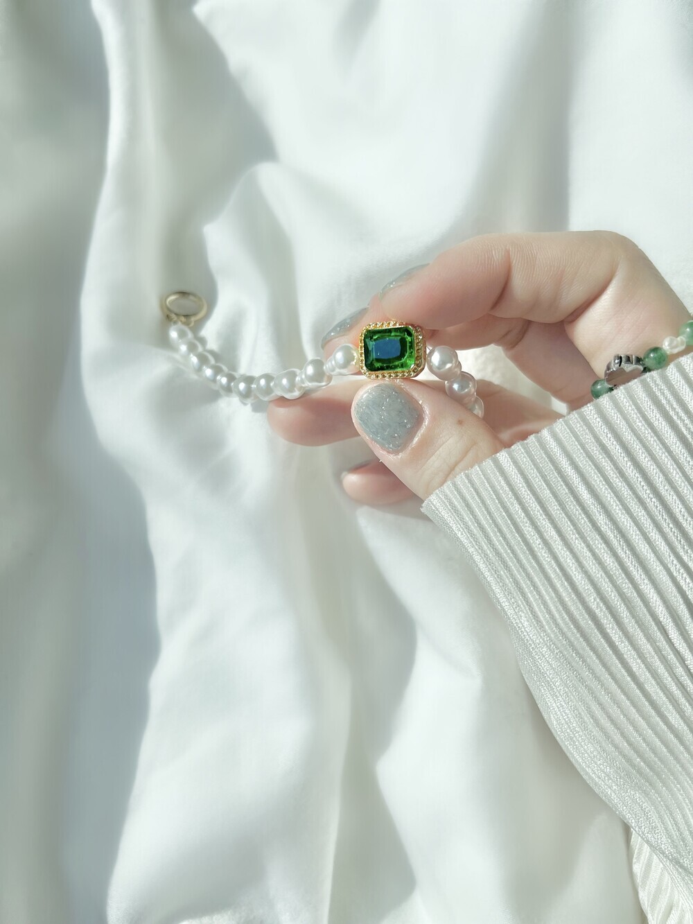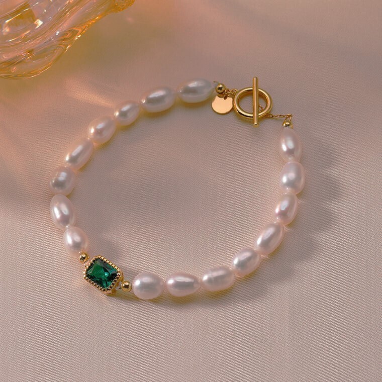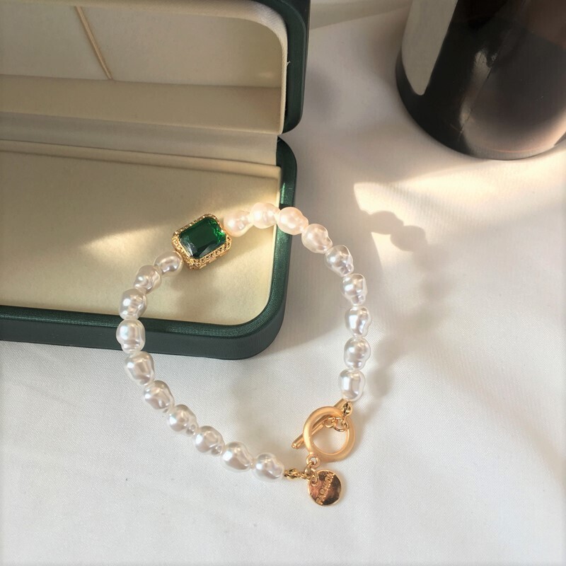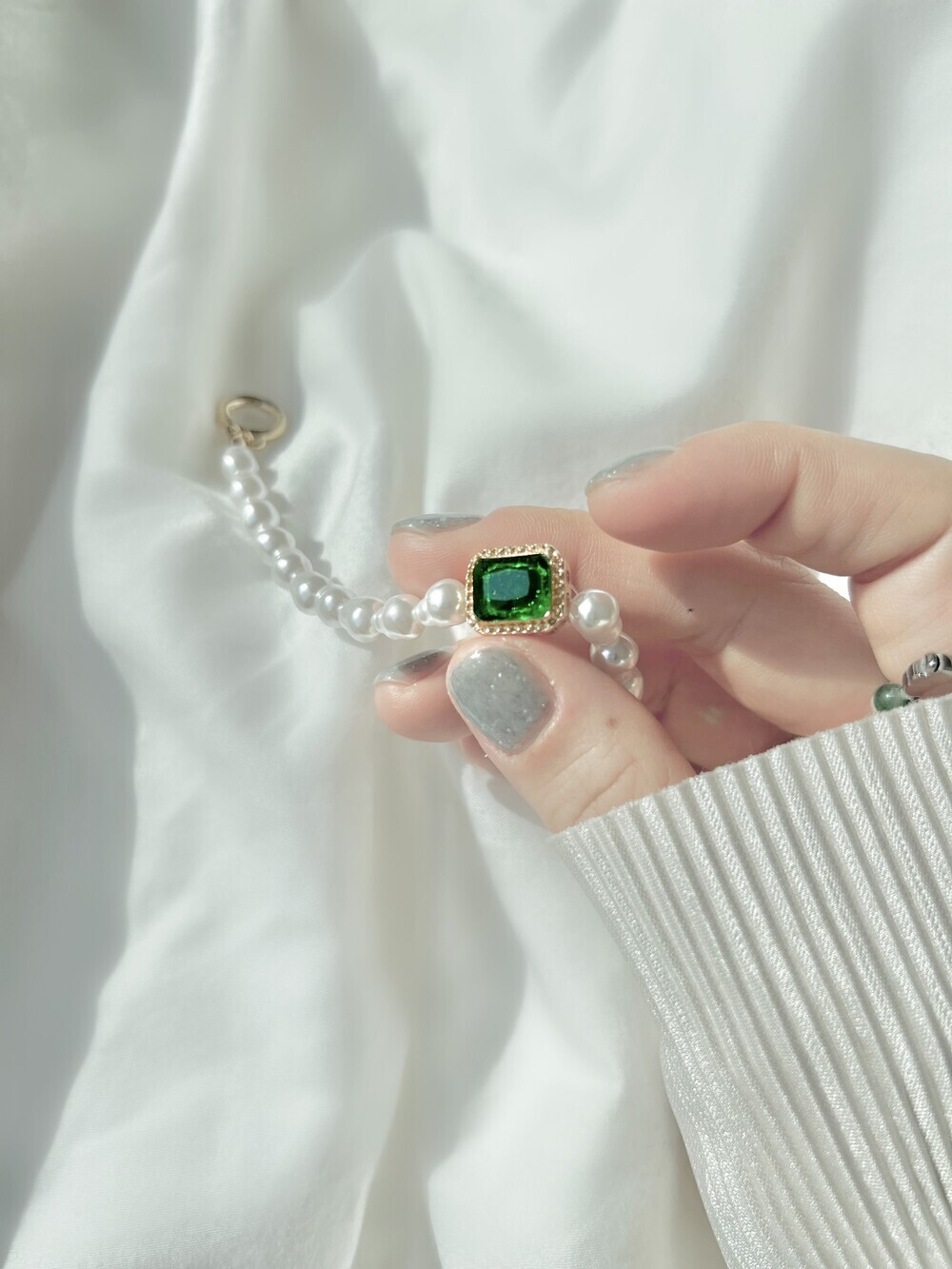 ๐Green Gem & Freshwater Pearl Bracelet๐